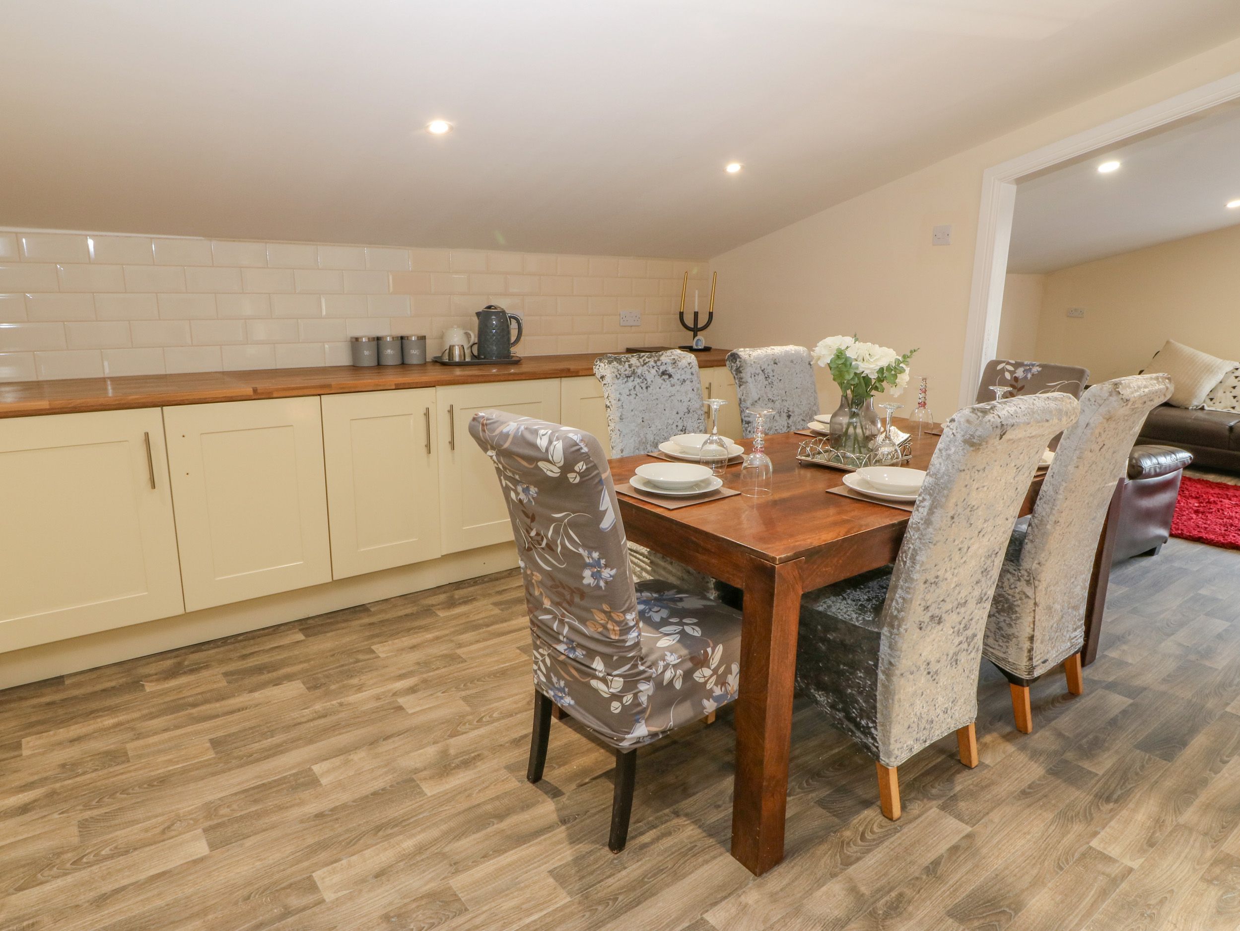 Accomodation Details Four bedrooms: 1 x ground-floor double, 2 x doubles with TV's, 1 x double. Shower room with walk-in shower, basin, heated towel rail and WC. Ground-floor shower room with walk-in shower, basin and WC. Open-plan living space with kitchen, dining area and sitting area. Utility