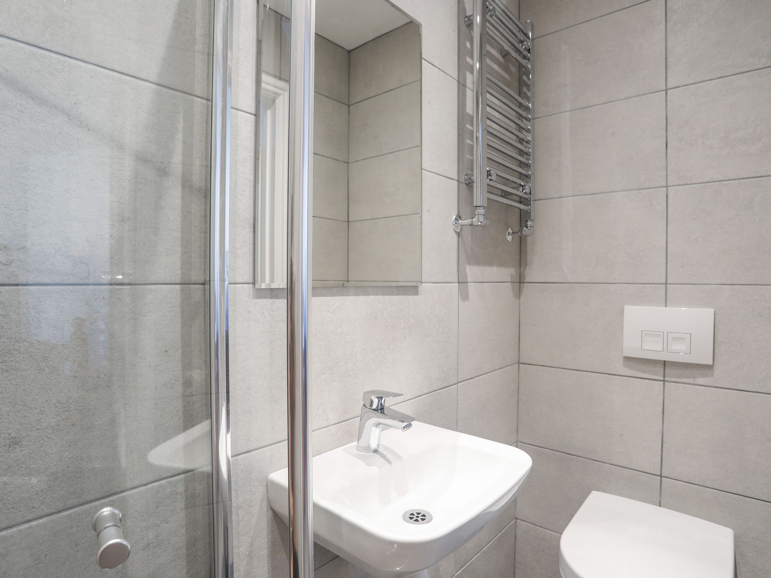 Single-storey. Three bedrooms: 2 x king-size with en-suite walk-in shower, basin, and WC, 1 x twin. Bathroom with bath, shower over, basin, and WC. Open-plan living space with kitchen, dining area and lounge area with woodburning stove.