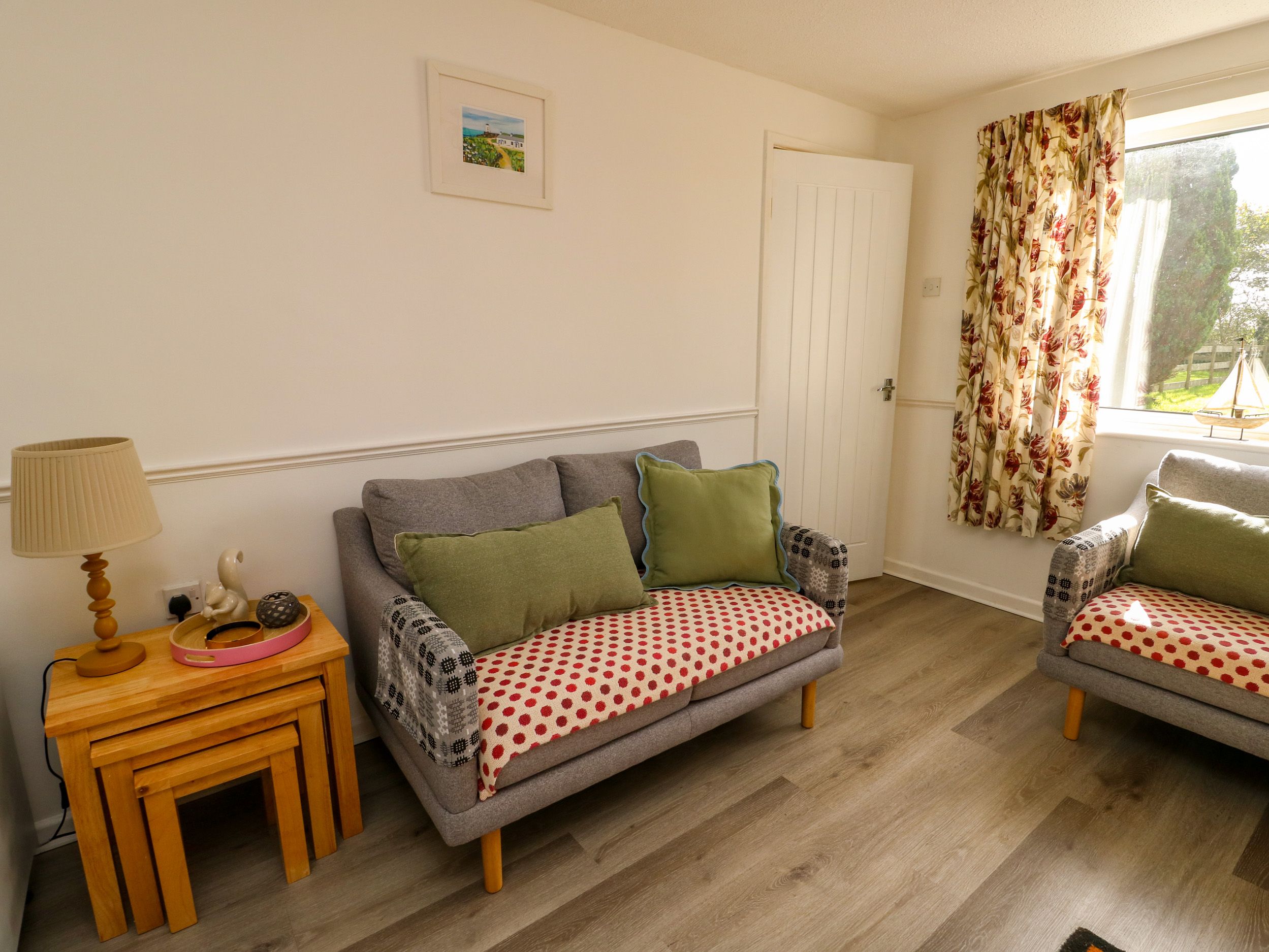 Two bedrooms: 1 x double, 1 x bunk. Shower room with shower over bath, basin, WC. Kitchen/diner. Sitting room with woodburning stove