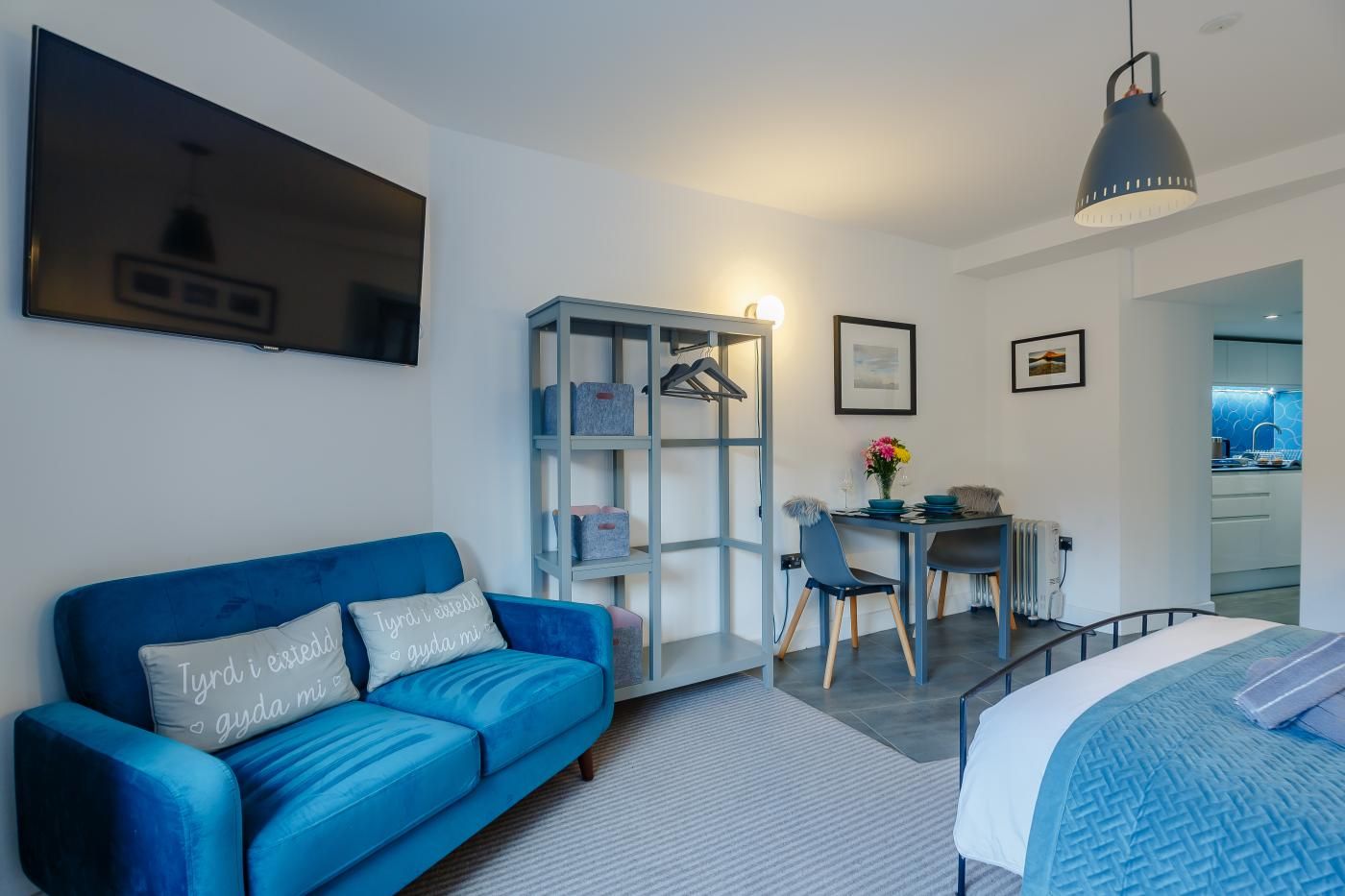 An architect designed compact ground floor studio apartment full of character, located to the rear of a family-run bookshop on the high street in the bustling coastal town of Menai Bridge.