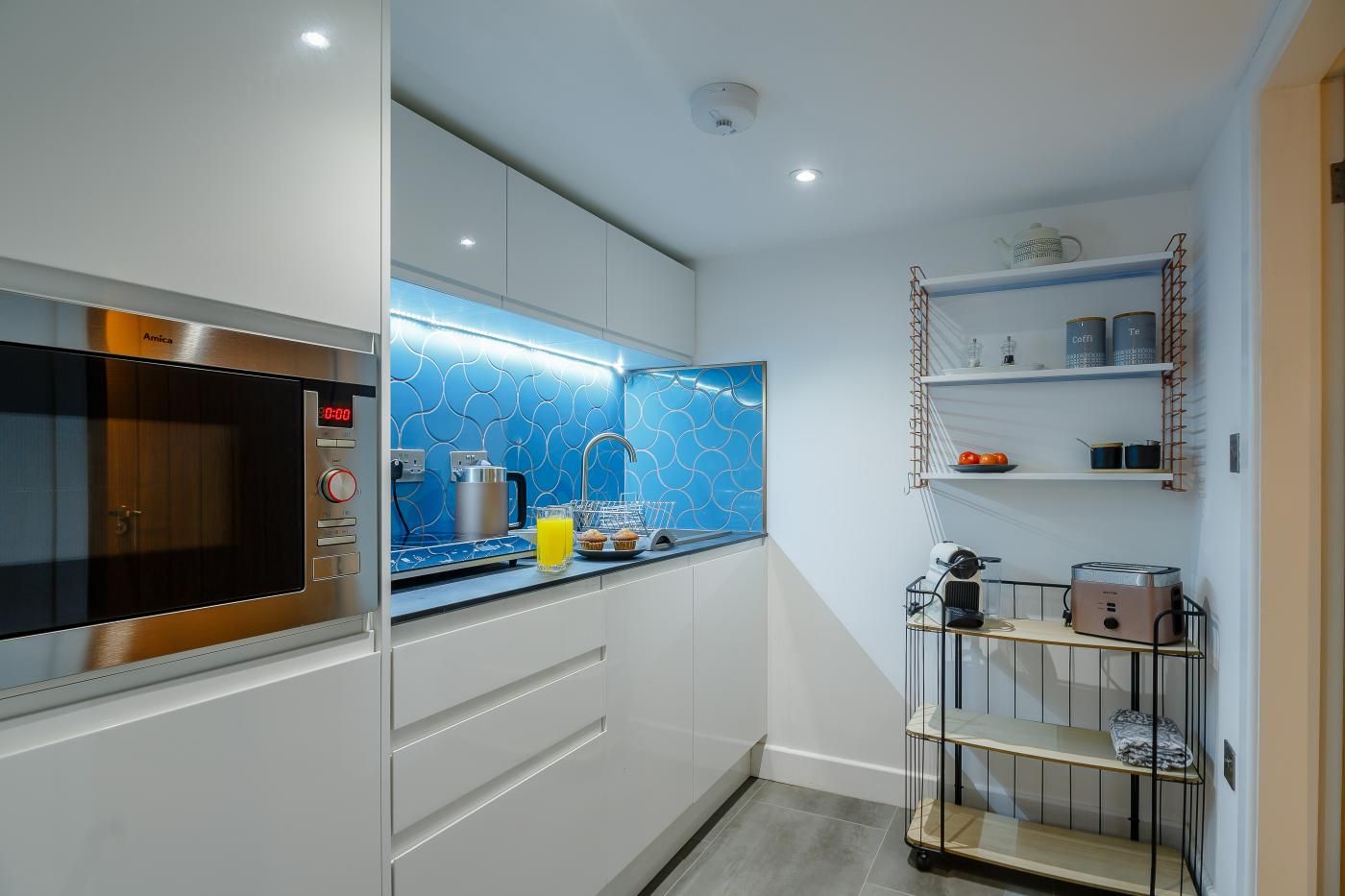 The apartment is named after a local poet from the 19th century, famed for his rhymes and the fact that he asked Queen Victoria for her hand in marriage. As the building was a local bakehouse at the turn of the 20th century, the sympathetic conversion aims to marry its contemporary style with its local roots and literary heritage.