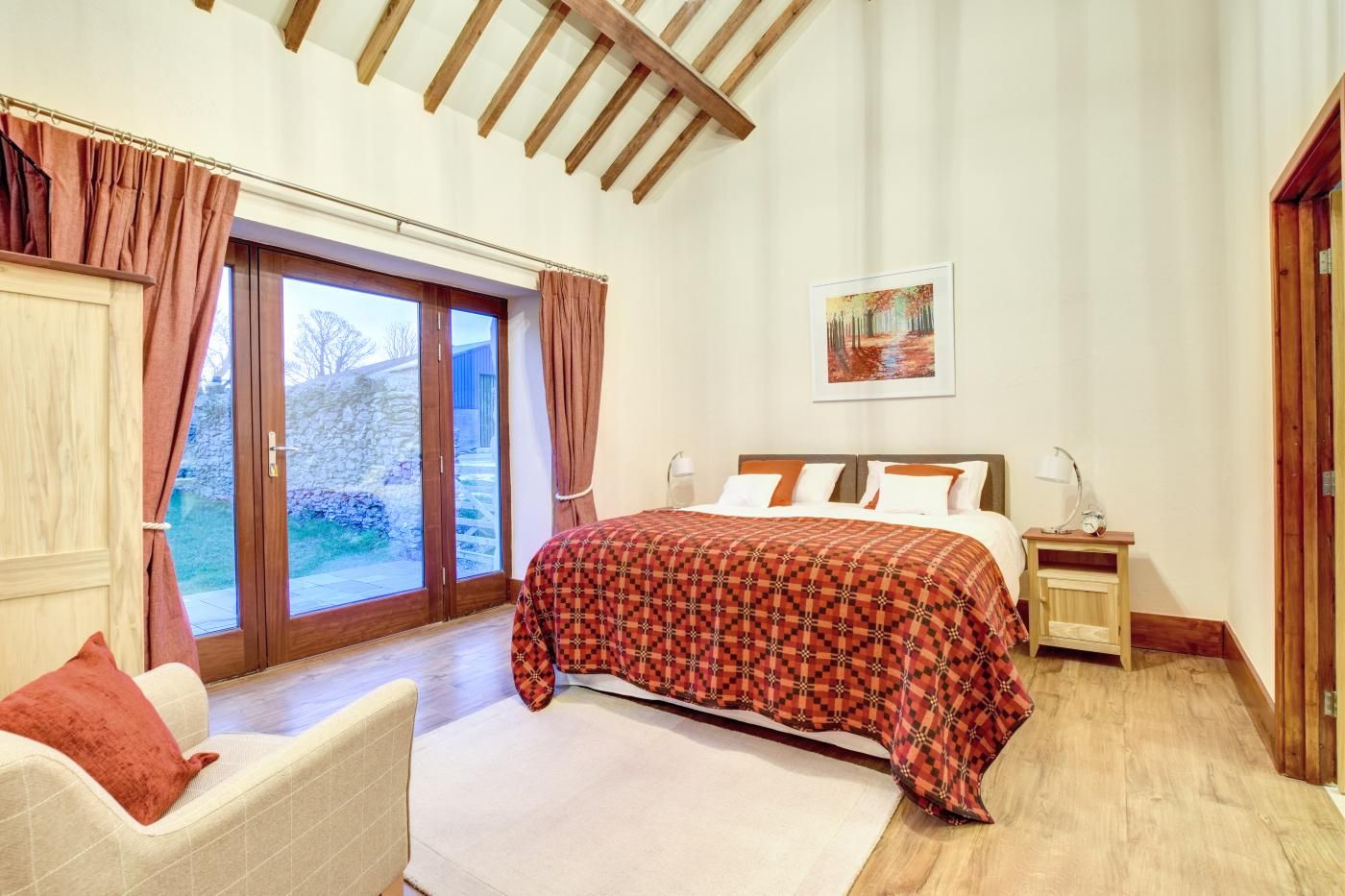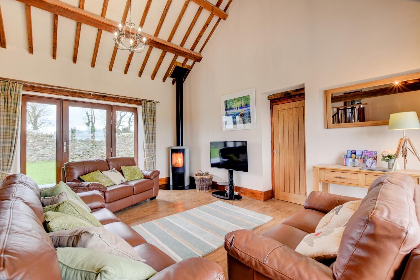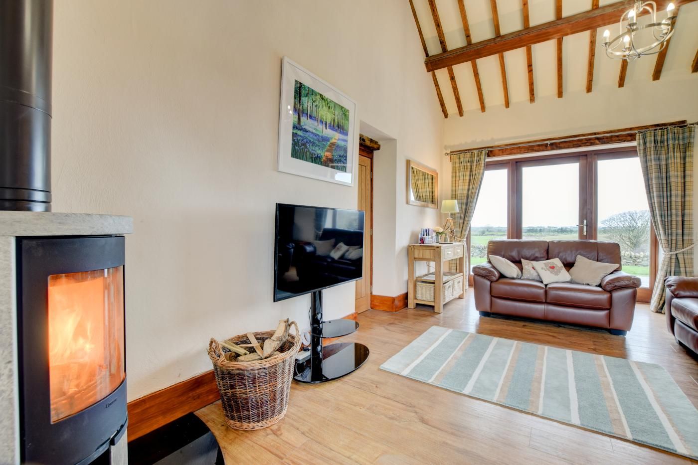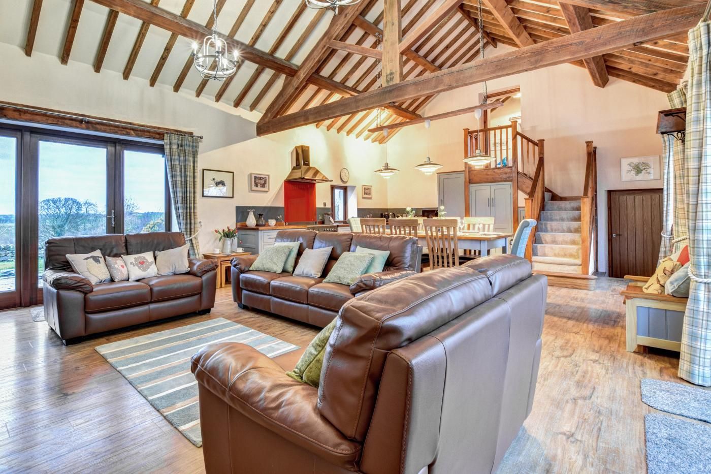 Activity: cycling Activity: fishing Activity: golf Activity: pony trekking/ horse riding Activity: walking Activity: watersports Beds: Num double Beds: Num king size super Bth: Bath Bth: En suite Bathrooms Bth: Shower Bth: Shower - walk in Bth: Total WC Central heating Cooking hob Dogs: Number allowed Entire home Eqp: Dishwasher Eqp: Freezer Eqp: Tumble dryer Eqp: Wash machine Fam: High chair Fam: Stairgate Fam: Travel cot Fridge G/F WC G/F bedroom Gdn/Courtyard Gdn/ctyard: enclosed Ground floor bathroom or shower room Heating Holiday Lettings Reference Important - please note Iron Ironing board Kitchen L T: Bed linen inc L T: Towels inc Location: Farm Location: Rural Luxury 4 G 5 Microwave OC: Family Friendly Other: Hot tub Other: Open fire/WB Other: Range/Aga Other: Welcome pack Other: WiFi Oven Parking: private Private entrance Property Type Property Type 2 Safety: smoke alarm(s) Smart TV Soap Sofa Style: Barn conversion Style: Detached TV Toilet paper Variable OTA uplift Views: Countryside Bedrooms