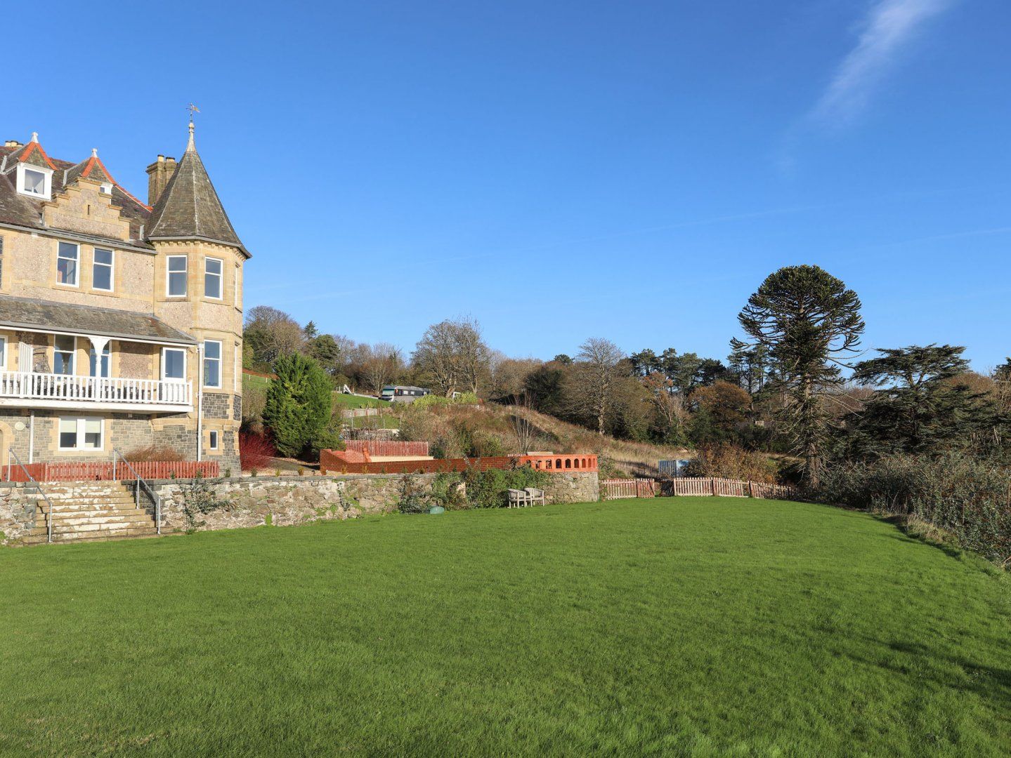 Amenities Nest Electric Heating Control system. Electric double oven and induction hob, microwave. Nespresso Coffee Machine. American Fridge/Freezer & Wine Fridge. Smeg Kettle/Toaster. Dishwasher. Telescope. Smart TV, Sky Q in Living with 2 further Sky Mini boxes in the Master / Guest room. Smart Samsung TV 65” in living space. Fibre WiFi. Philips Hue Colour lighting system to living area and master bed. Bose Speakers (living area and Master). Selection of books and games. Fuel and power inc. in rent. Bed linen and towels inc. in rent. Hairdryer. Off-road parking for 3 cars. Private garden with lawn, balcony with seating including swinging chair. Access to shared extensive grounds with large private garden/woods and seating area. Elevated position with stunning views over the Menai Straights and Snowdonia. Historic Building - Bryn Mel Manor, was completed in 1899 for shipping magnate William Imrie after a 10-year building project Imrie and Thomas Ismay built up the White Star Line which later owned the ill-fated Titanic, the property displays historic references to the family and shipping company. Note: Check-in from 4pm, check-out by 10am. Shop 0.8 miles, pub 0.6 miles, short cut steps available to access local pub (5 mins). Sorry, no smoking. Note: This property has a £500 Good housekeeping bond