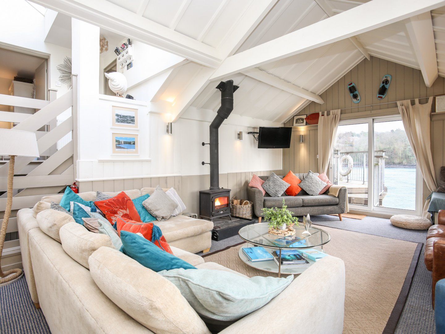 Built into the cliff-side, and overhanging the water at high tide, staying in Manadwyn holiday house feels like setting sail on a ship. Virtually all the windows look out to sea and you will be mesmerised by the ever changing views of the moving tides and wildlife throughout the day. The hub of this open plan family space is the sitting room which is on the middle floor.Here you can sink into the sofas, light the log burner, gaze out to the famous Menai Strait and keep tabs on the boats bobbing up and down on this unique waterway. The kitchen is to the side of the sitting room and has a super little dining area and breakfast bar with a big window.Above the sitting room are two double bedrooms with king size beds, one with sliding glass doors opening out onto the terrace. Between the two double bedrooms there is a family bathroom with loo, hand basin and bath with shower over. On the bottom floor are two further bedrooms. One a twin with bunk beds suitable for children 12 years and under. It is painted in bright colours, furnished with bean bags and a TV. PLEASE NOTE: The bunk beds are not normally made up and need to be requested when booking. The final room has a standard double bed. The bed is placed so you can turn your head on your pillow and look out to the water. The lower floor has a compact shower room (restricted height) with a micro bath with a shower over, loo and corner wash basin. Outside the sitting room and master bedroom is a balcony with bench seating. A staircase leads up to a roof terrace with table and chairs and spectacular views of the Menai Strait. There is parking for one car at the property. Additional parking can be found further along the lane that leads under the Menai Suspension Bridge. There is no place I would rather be than sitting on the balcony or roof terrace with my coffee, watching the oyster-catchers dip in and out of the glistening flecks of the sea against the backdrop of the spectacular Britannia Bridge. You could even arrange for our friends at Rib Ride Boat Trips to pick you up and run you and your guests down to the Gazelle or Dylan's Restaurant in Menai Bridge, before heading off to Puffin Island to watch the seals. Manadwyn's unrivalled character and feeling will ensure you have a truly memorable holiday here.