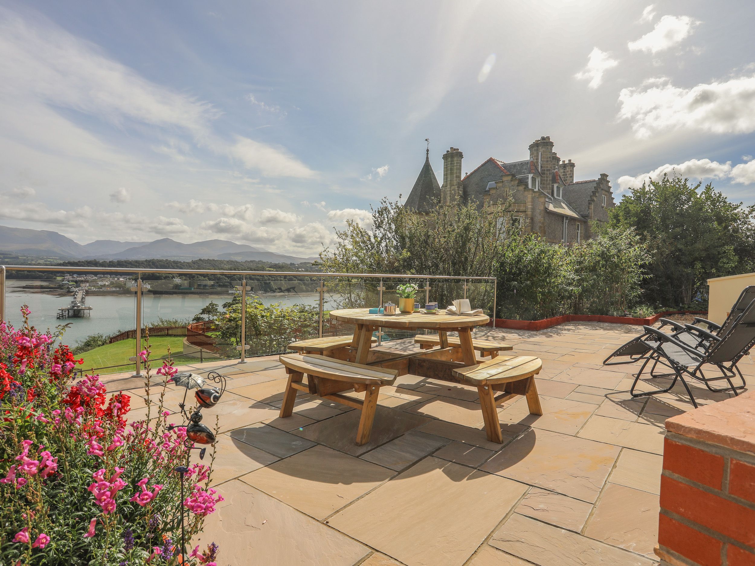 Shared extensive grounds. Direct sea and Snowdonia views, including Bangor Pier and harbour, Penrhyn Castle and the Menai Suspension Bridge. 2 allocated private parking spaces with EV charger + visitor spaces.