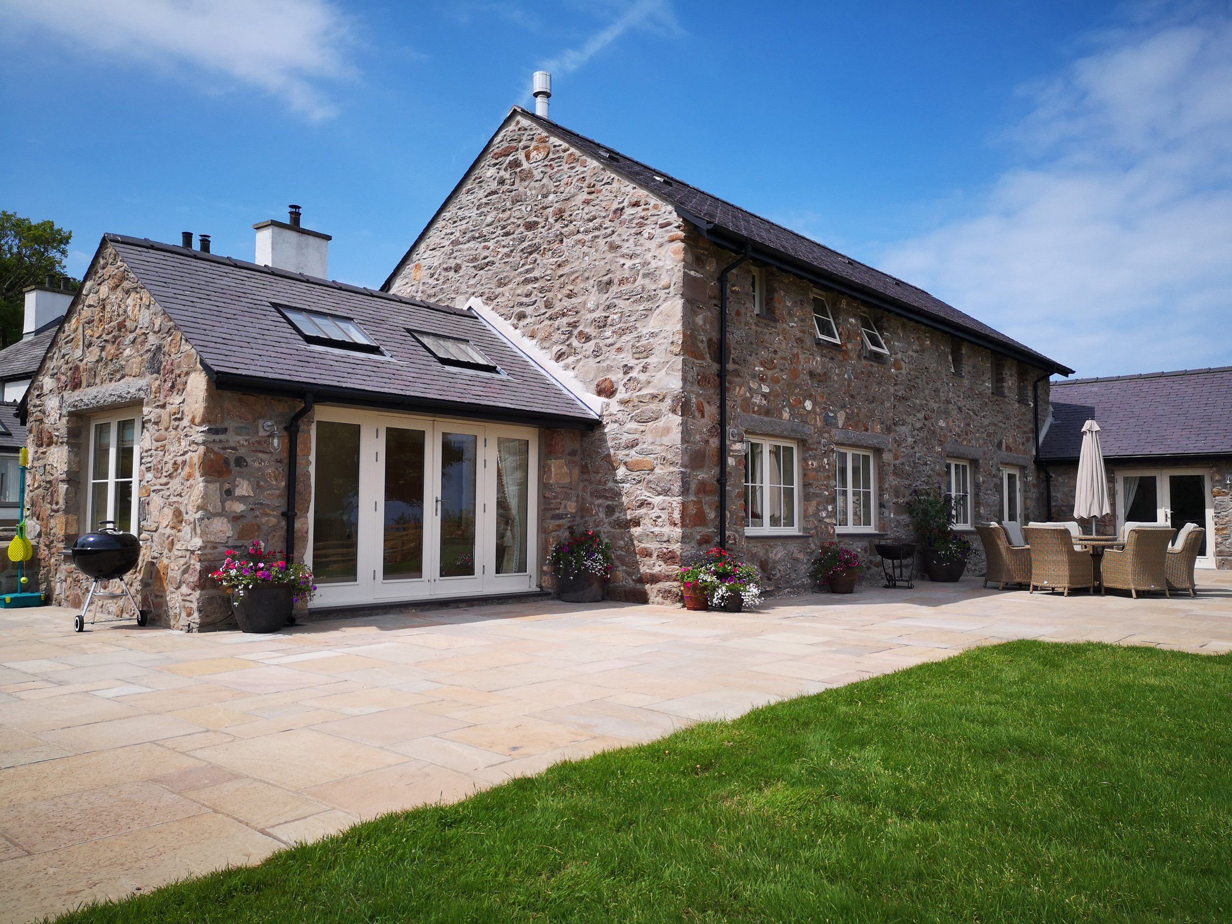 Amenities Central heating. Range oven, induction hob, microwave, fridge, freezer, washing machine, tumble dryer, dishwasher, coffee machine. 4 Smart TV's, BluRay/DVD player, SONOS speaker, games. Fibre WiFi. Fuel and power inc. in rent. Bed linen and towels inc. in rent. Highchair and travel cot (no linen) available upon request. Ample off-road parking with electric car charging point available on site next to the carpark at the Barn. Large garden, patio area, patio furniture with parasol, barbecue, outside shower, drying room for outdoor equipment with shared bike storage. One small dog welcome. Sorry, no smoking. Shop 4 miles, pub 1.6 miles, Traeth Ora Beach 130 m. Note: Starter pack of logs and kindling supplied (Autumn and Winter) .Please keep dogs on a lead at all times on the adjoining farmland. Note: This property is part of the Lligwy Estate property group- please also see 1008955, 1008821, 1008904, 1134095 for further accommodation options all within the vicinity of Penrhyn Barn with Penrhyn Farm and Traeth Ora right next door for larger holiday gatherings. Welcome pack for week stays only.
