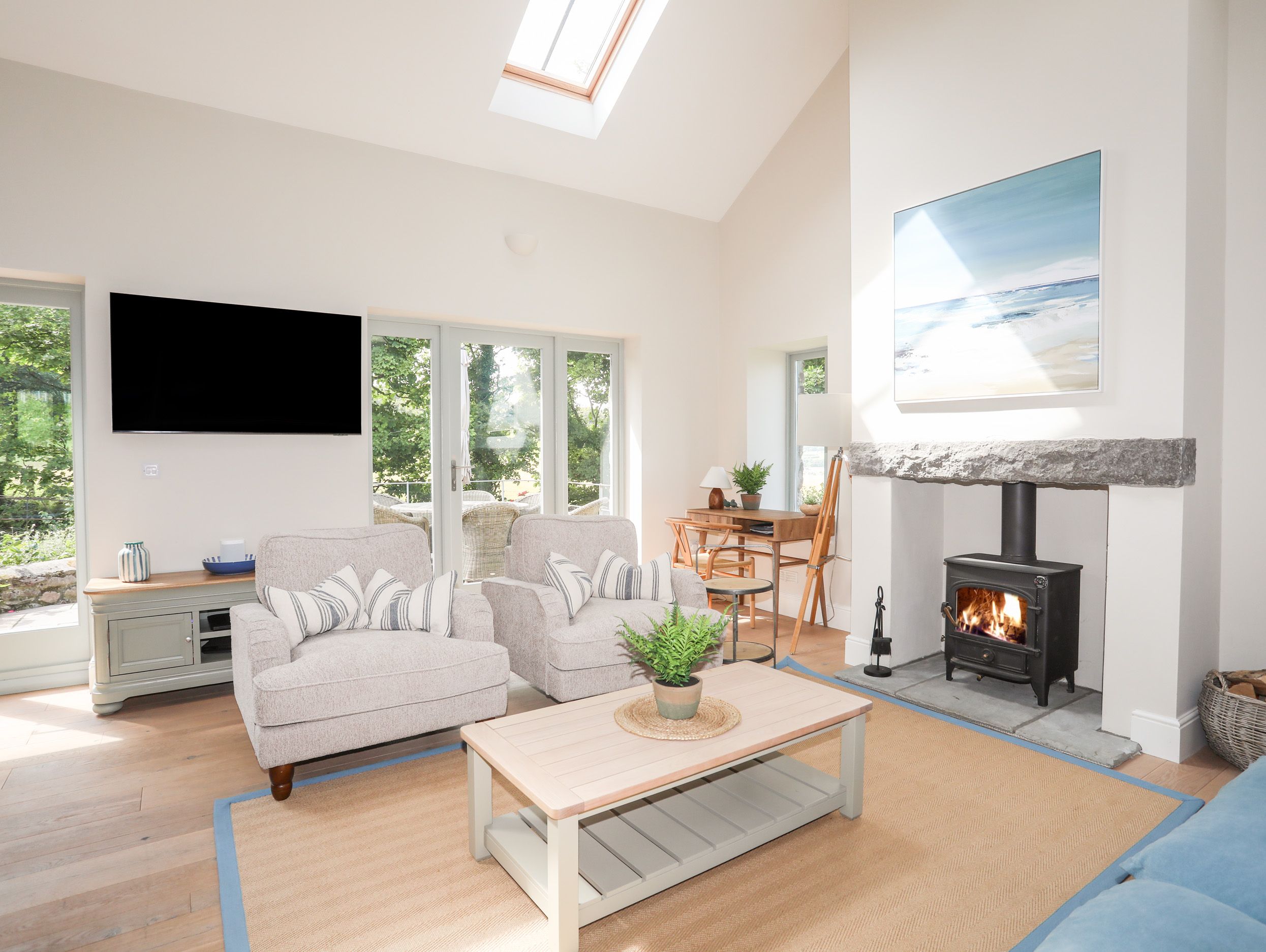 Holiday home The living areas in this property consist of an open-plan living space with kitchen, dining area and sitting area with a woodburning stove. Appliances include a range cooker with oven and gas hob, microwave, fridge/freezer, and a Smart TV. The bedrooms consist of two ground-floor doubles, one with an en-suite shower, a twin, and a single, serviced by a bathroom and a cloakroom. Outside, there is an enclosed garden with lawn, patio and furniture, along with ample off-road parking. Within 4 miles, you will find the nearest shop, and within 1.6 miles, a pub. Please note, this is a non-smoking property. WiFi, fuel, power, starter pack for woodburning stove, bed linen, and towels are all included in the rent. Bring your loved ones for a memorable escape to Traeth Yr Ora. Note: Check-in from 4pm, check-out by 10am.