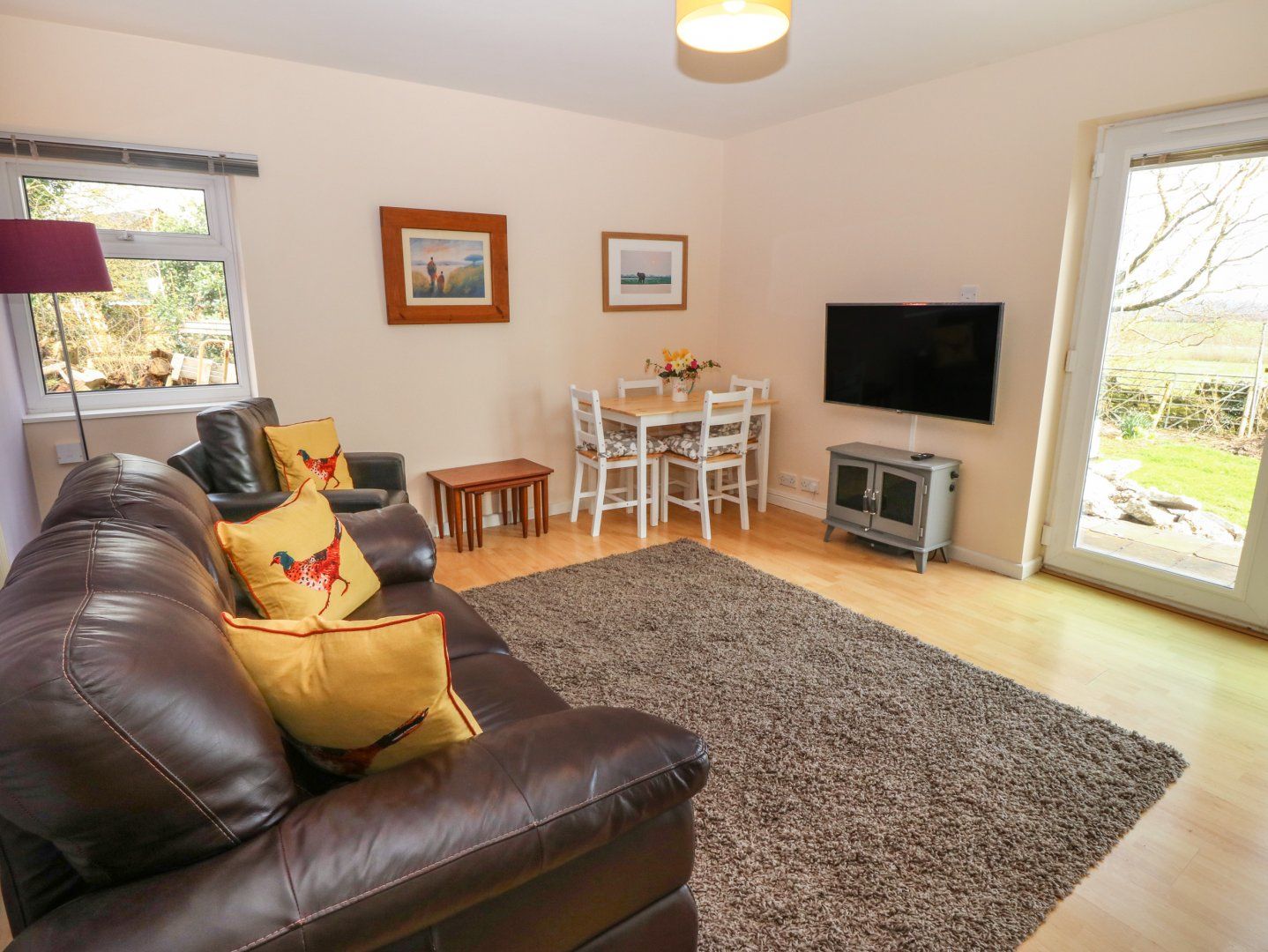 Accomodation Details Single-storey. One double bedroom. Shower Room with walk-in shower, basin, heated towel rail and WC. Open-plan living space with kitchen, dining area and sitting area with electric fire