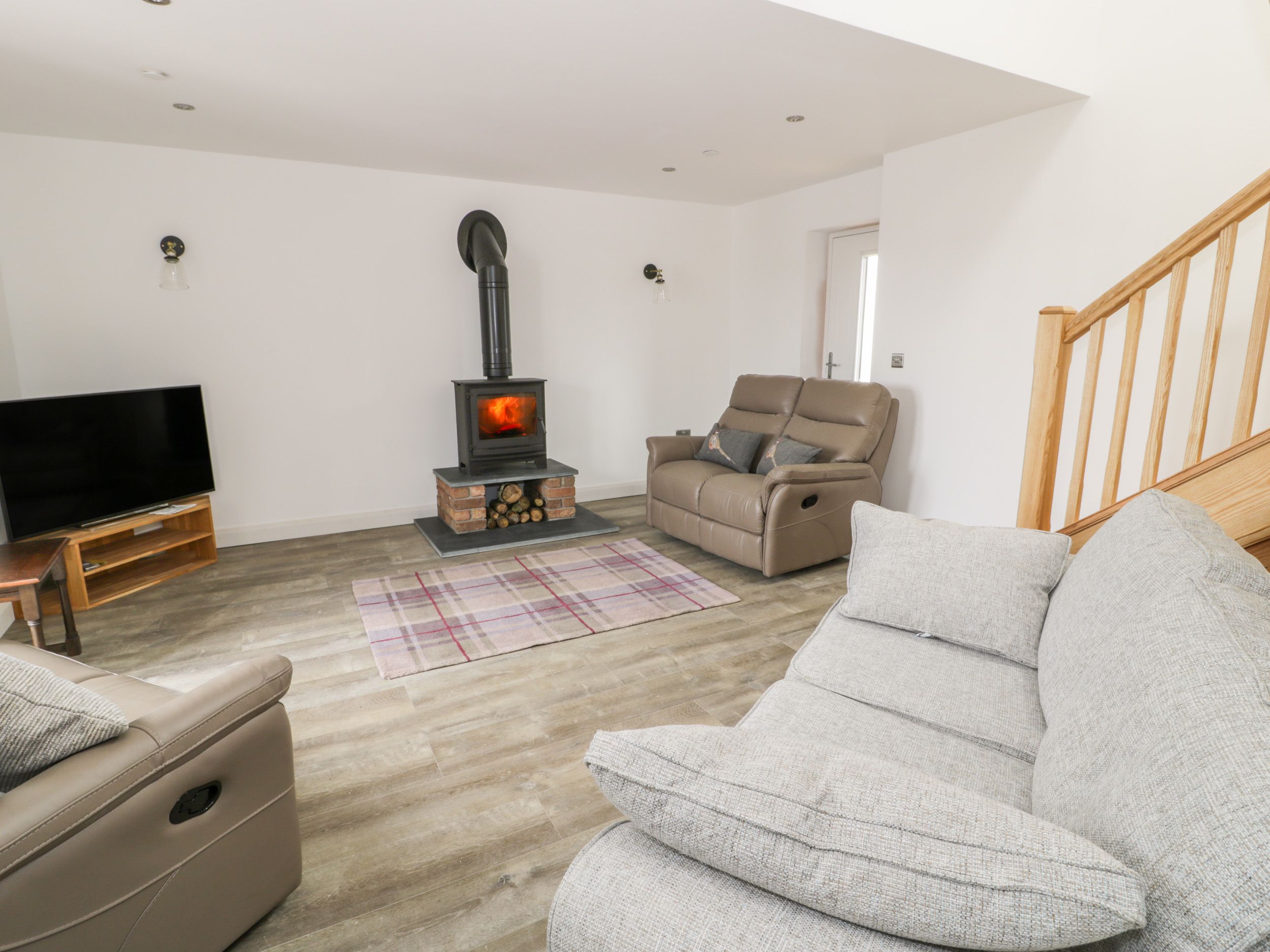 Amenities Ground source Geothermal underfloor heating to ground floor and radiators to first floor. Woodburning stove. Electric cooking range, microwave, toaster, kettle, fridge/freezer, dishwasher, washing machine, tumble dryer, Smart TV with Freeview, a selection of books, games and WiFi. Fuel, power and starter pack for woodburning stove inc. in rent. Bed linen and towels inc. in rent. Cot, highchair and stairgate available on request. Ample off-road parking. Terraced patio area with furniture and hot tub. Sorry, no smoking and no pets. Shop and pub 2 miles. Note: Children must be supervised in the hot tub. Note: Some internal steps on ground floor. Note: Arrival from 5pm. This property can be booked with Sgubor Property ID: 958210 to seep a maximum of 12 guests.