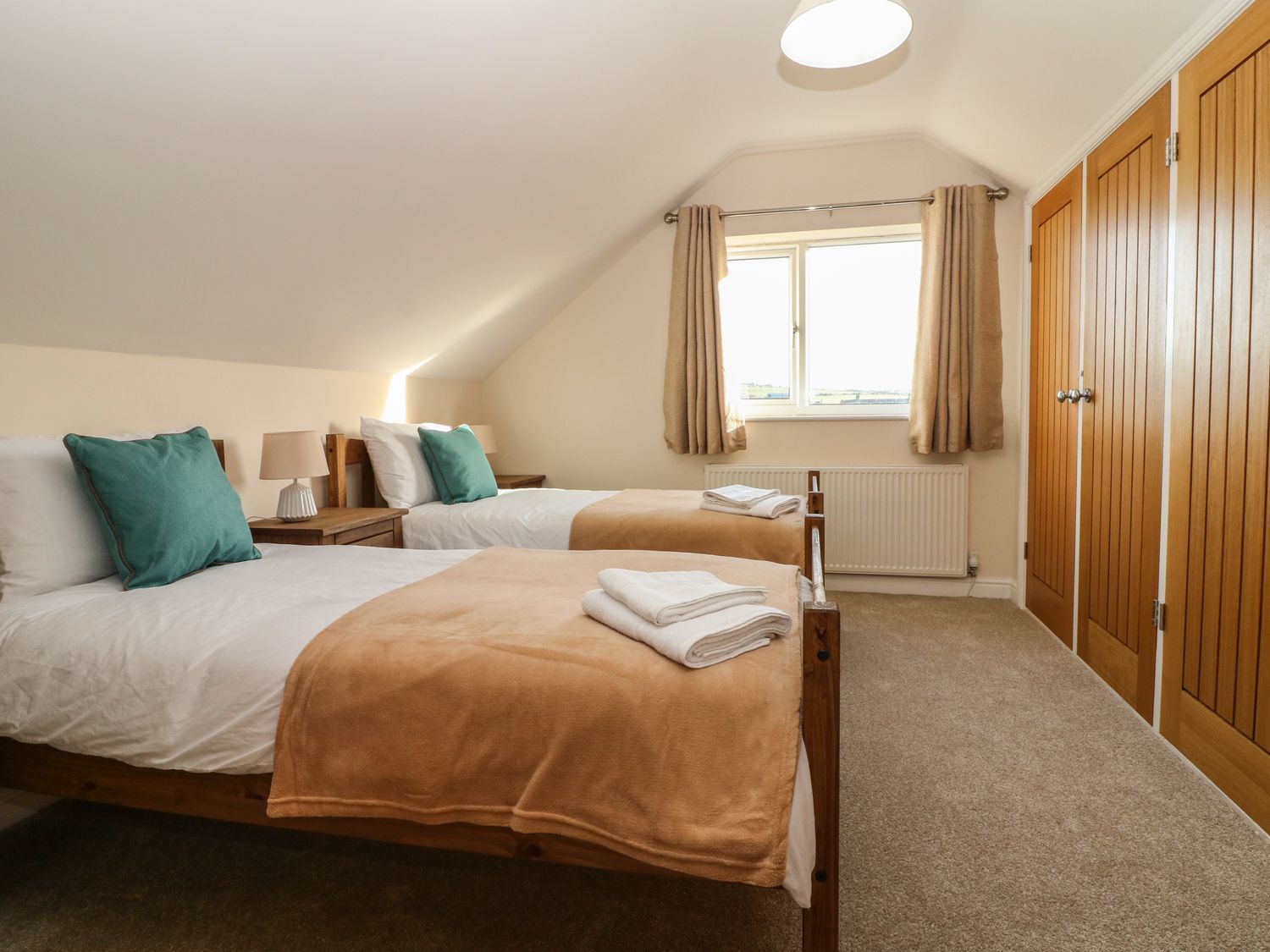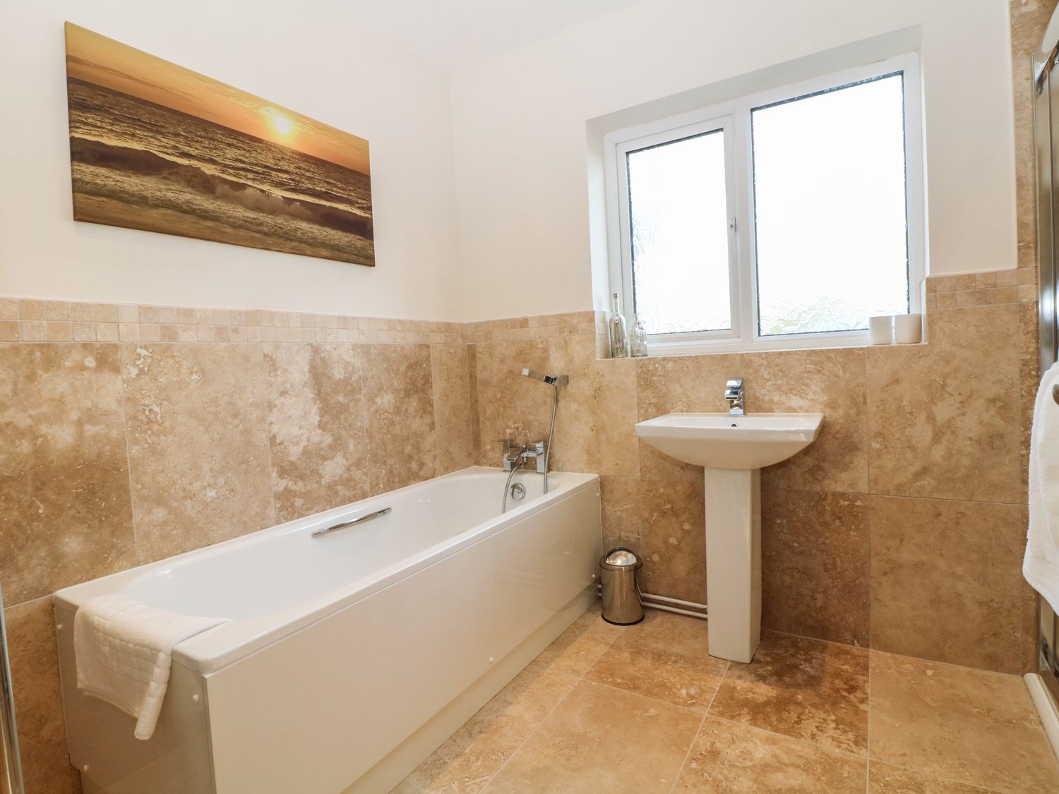 Five bedrooms:First floor: 2 x king-size double, 1 x twin. First floor WC and Basin Ground floor: 1 x king-size double plus 1 x room with single bunk beds. Ground floor shower room with shower, basin and WC plus a ground floor Cloakroom with basin and WC. Ground floor Bathroom with bath, walk-in shower and basin Sitting room with wood burner. Kitchen/diner and a Utility room. Play/games area.
