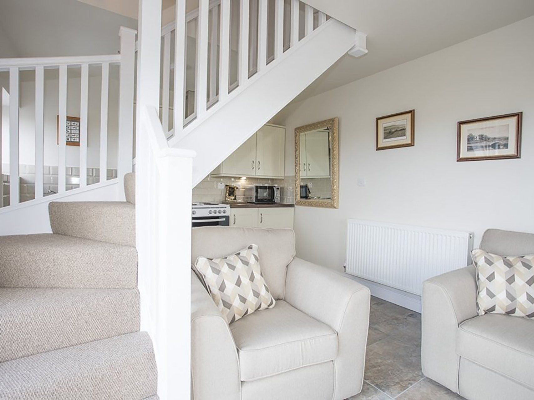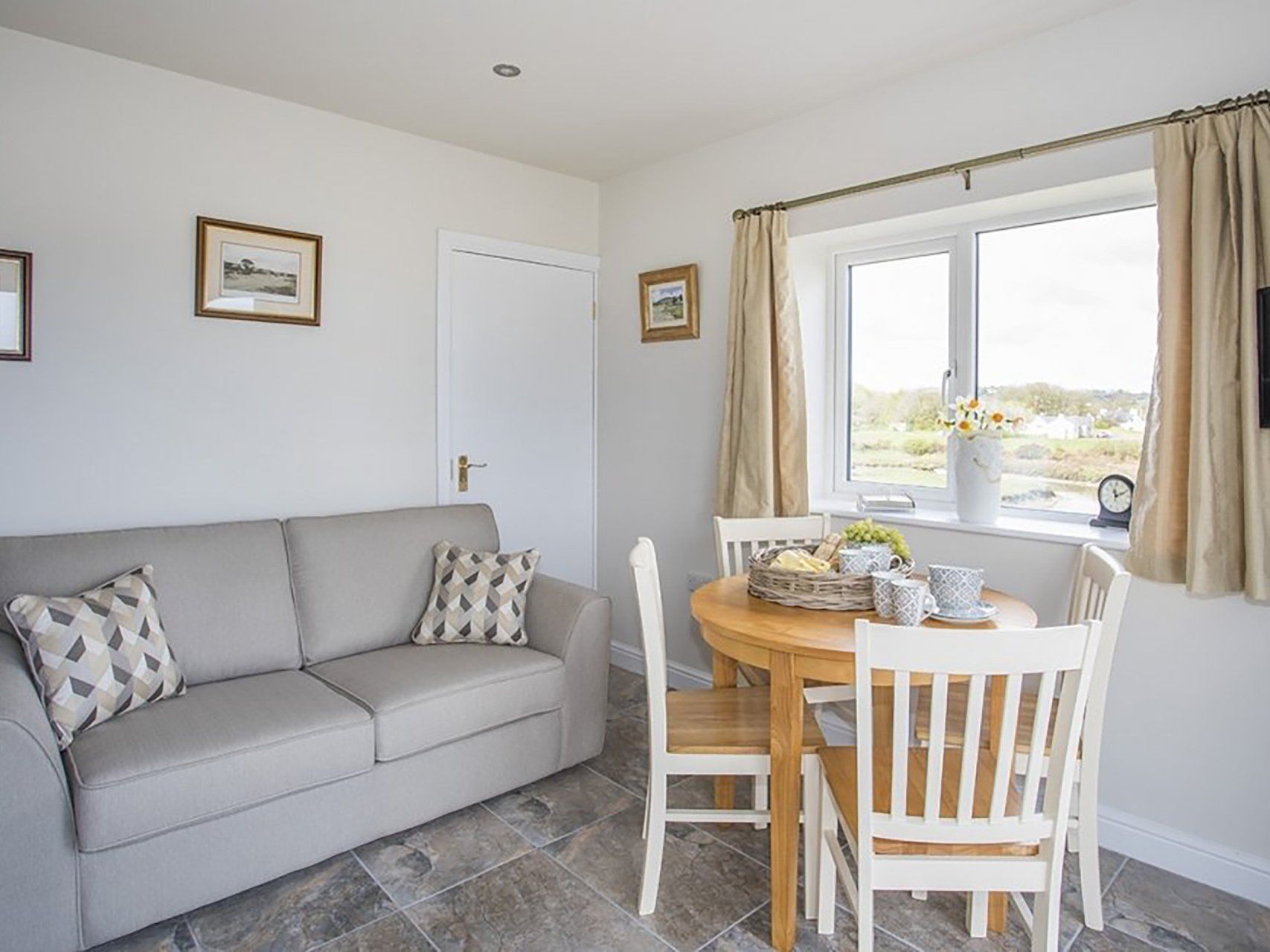 The sitting room is a lovely open planned space with a comfortable seating area that makes the most of the views over the bay, there is a wall mounted Smart TV and a clever folding leaf dining table so you can maximise the open space.