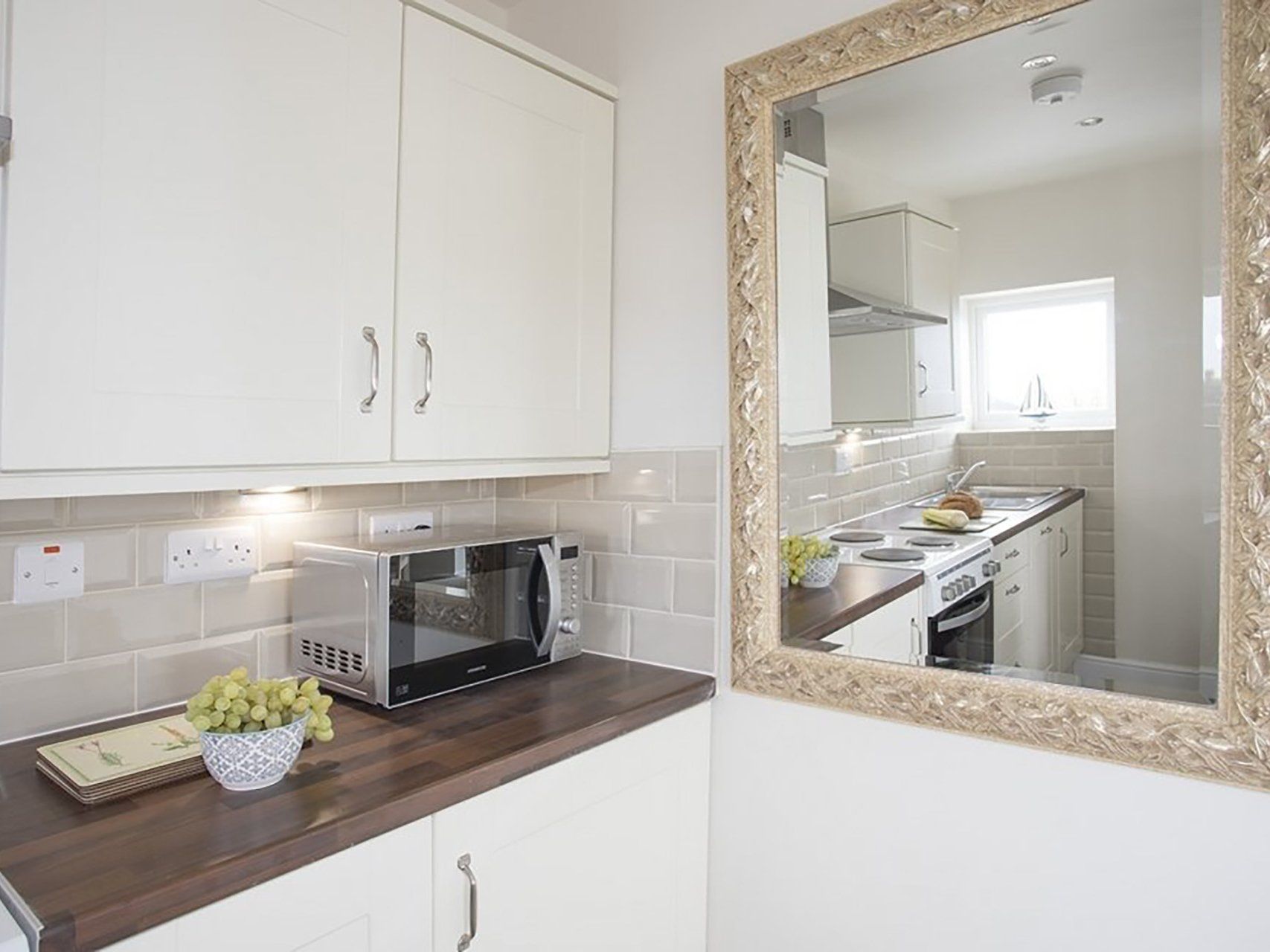 Accomodation Details Two bedrooms: 2 x double. 2 x ensuite bathrooms with bath and hand held shower attachment, WC and handwash basin. Open plan living area: kitchen is compact but fully functional with everything that you could need from a full sized electric oven and hob, dishwasher, microwave, fridge and compact freezer located under the stairs, dining area with space saving drop leaf table, seating area with sofa and chair, and a wall mounted Smart TV. Sliding doors to balcony area with outdoor seating, off street parking for two cars.