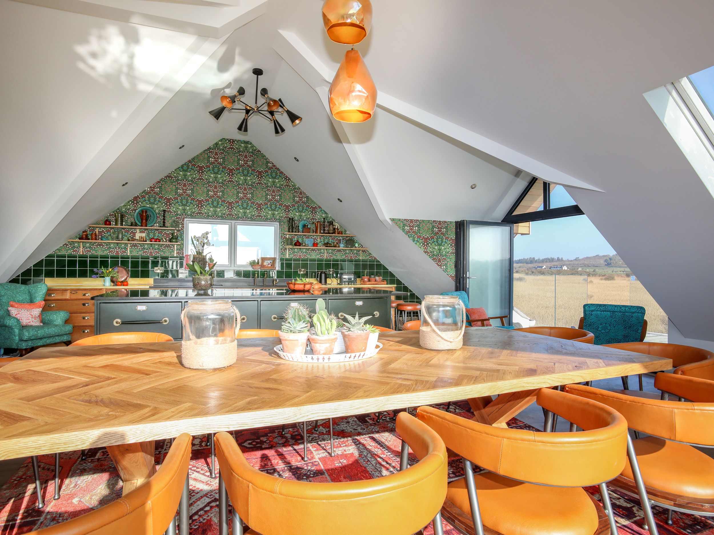 Amenities Oil central heating with ground floor underfloor heating, dual aspect woodburning fire and woodburning stove 2 x single electric ovens, electric hob, 2 x warming drawers, microwave, 2 x fridge/freezer, 2 x dishwasher, washing machine, Quooker hot water tap, bean to cup coffee machine, 8 x Smart TVs and Wifi. Fuel and power inc. in rent. Bed linen and towels inc. in rent. Highchair, travel cot and stairgate available. Ample off-road parking. EV Car charging point. Two extensive first-floor balcony areas with lounge sofas and cushions, rear garden with lawn garden and patio area with table and chairs, as well as access to a sauna and hot tub, and outdoor games. Paddleboards, a double kayak and an assortment of wetsuits and lifejackets are provided too. Two dogs welcome. Sorry, no smoking allowed. Shop 3.2 miles, pub 0.4 miles. Beach 0.1 miles. Note: There is an additional charge for pets, £45 per pet, per week. Note: There is an additional charge for the use of the hot tub, £250 per week.