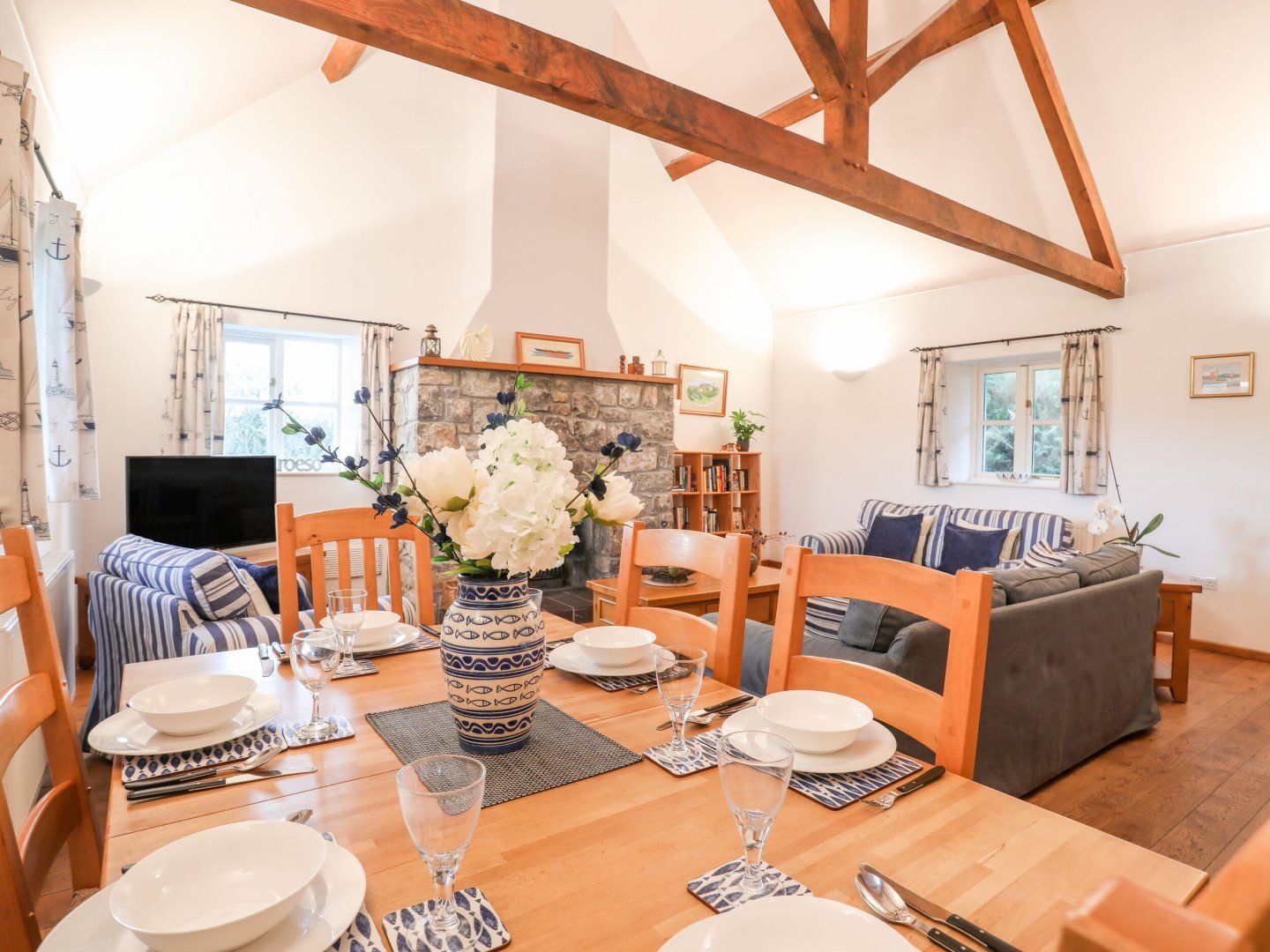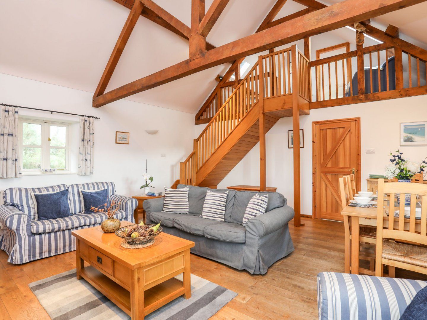 Accomodation Details Three bedrooms: 1 x ground-floor double, 1 x twin with en-suite bath, walk-in shower, basin and WC, 1 x ground-floor twin. Ground-floor shower room with walk-in shower, basin and WC. Kitchen. Living/dining room with open fire