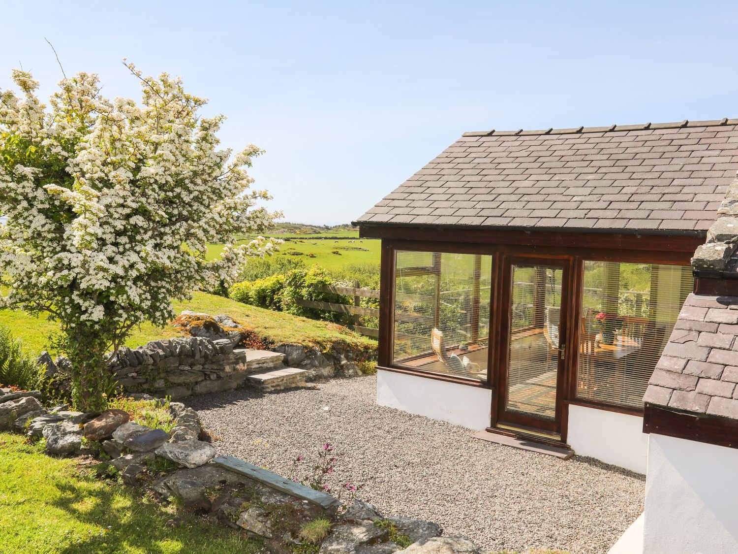 Holiday home Ty Mynydd consists of an open-plan living space with a conservatory with dining seating for six, a sitting area with a TV, DVD player, a selection of books and games, and a kitchen with an electric oven, electric hob, fridge, freezer, washing machine, microwave, kettle, and toaster. The bedrooms consist of a double and a bunk room, and the nearby annexe has a super-king-size bed with a TV, kettle, and an en-suite shower room. There is a bathroom with a bath, shower over, basin, and WC. Outside, there is a non-enclosed garden with decking, lawn, furniture, and off-road parking for three cars. One well-behaved pet is welcome. Sorry, no smoking. WiFi, fuel, power, bed linen, and towels are all included in the price. You’ll find a shop in 2.5 miles, and a pub in 2 miles. Ty Mynydd is your idyllic retreat in the beauty of this corner of Anglesey. Note: This property has a Good Housekeeping Bond of 350GBP. Note: Check-in from 4pm, check-out by 10am.