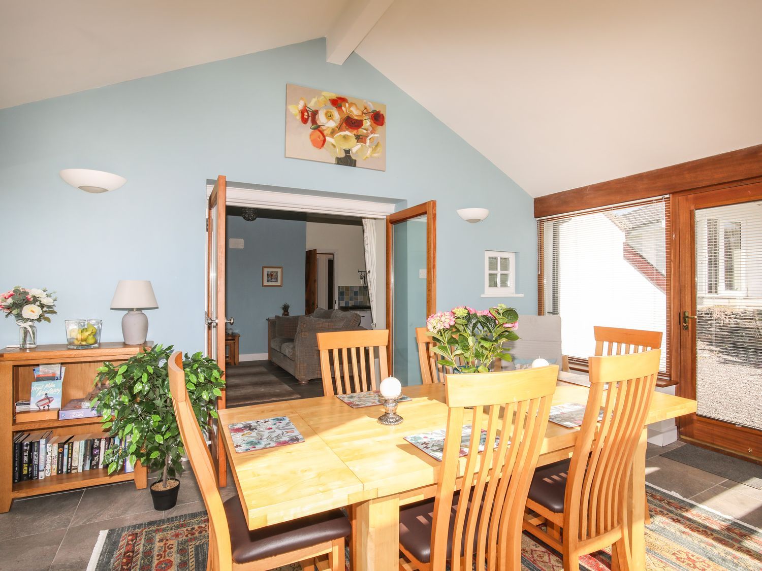 Accomodation Details Single-storey. Three bedrooms: 1 x double, 1 x bunk room, 1 x Annexe with zip/link super-king-size bed with en-suite walk-in shower, basin, WC. Bathroom with bath, shower over, basin, WC in main house. Open-plan living space with kitchen and sitting area. Conservatory with dining table.
