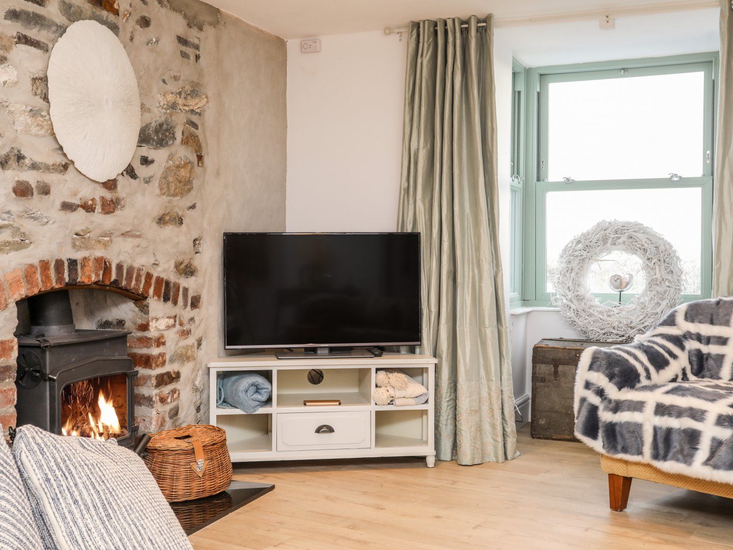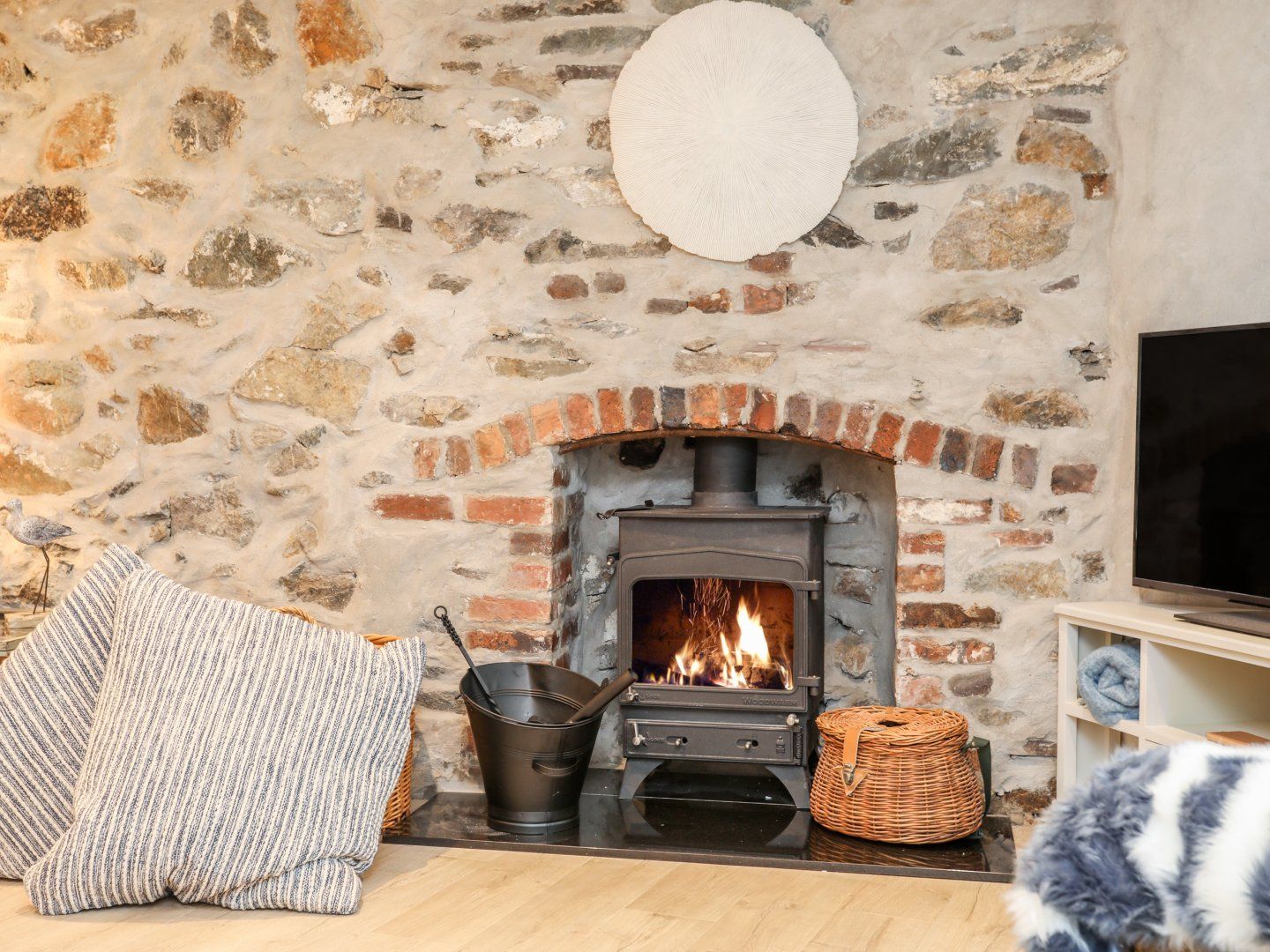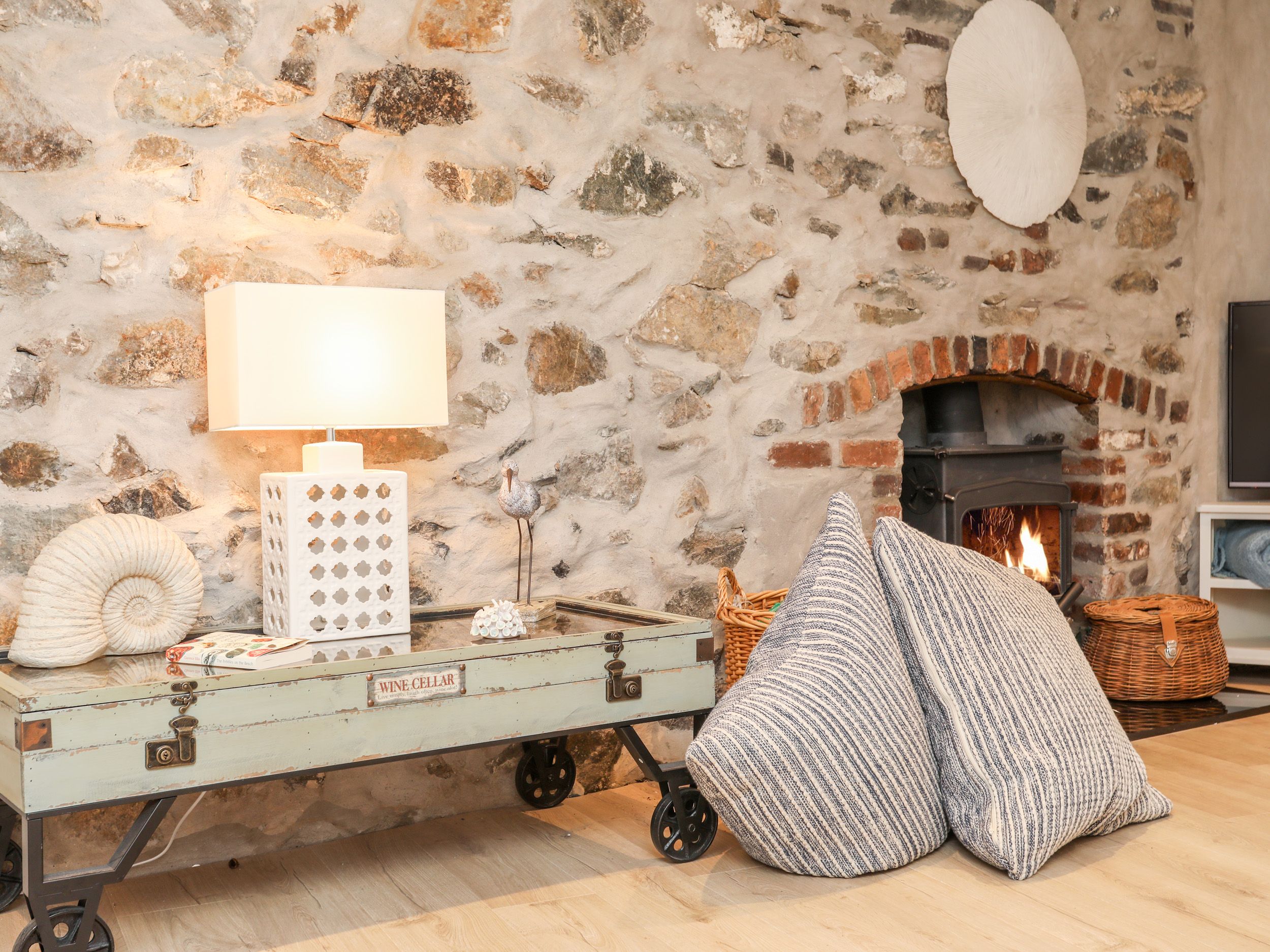 Holiday home Rhosneigr 2.5 miles. Set in the village of Pencarnisiog in Anglesey, the jewel in the crown of North Wales, is this charming cottage. A family or group of five will find themselves right at home in this coastal themed abode, offering gorgeous views of the surrounding countryside. Come into the property and be greeted with the charming vintage tiled flooring, preserved and well-kept, it leads you to the open-plan living room/diner which enjoys a feature exposed stone wall which holds a woodburning stove, creating a characterful and rustic look. Settle on the Chesterfield sofa and wind down in front of the TV, or get a board game to spread out on the dining table to enjoy some simple quality time. The kitchen offers a beautiful space to concoct some delicious meals, all beneath the large skylight above bringing sunlight in all day, amidst the excellent range of appliances within this sleek and stylish space, enjoying a breakfast bar too so you can keep the chef of the group company as food is prepared. Sit out in the private gravelled garden and watch the dog stretch their legs while you delight in a refreshing drink on a balmy summer evening. Also on the ground floor is the lovely bathroom, benefitting from a bath with a shower over, so whether it’s a hot shower or a relaxing soak you’re after, you can delight in the choice of either within this sparkling room. Upstairs you can find three charming bedrooms, beginning with a single room and a double room, enjoying sloping ceilings, quality bed linen and furniture for storage, while the master double bedroom which benefits from an en-suite cloakroom has beautiful views out to the countryside beyond right from your pillow. Rhosneigr offers a pretty coastal village where you can pick up some ingredients for the evening meal, or why not dine in one of the several excellent pubs for a pub lunch treat, a great way to begin your relaxing break. View the incredible scenery and rugged landscapes of Anglesey with clifftop coastal walks and strolls along the beach, on sunny days heading down to Newborough beach and setting up camp on the beach, build sandcastles and paddle in the sea, or head further into this beautiful isle to discover the county terrain. Ty ar Ben Bryn is a wonderful property, a coastal retreat for you and your loved ones in Anglesey.