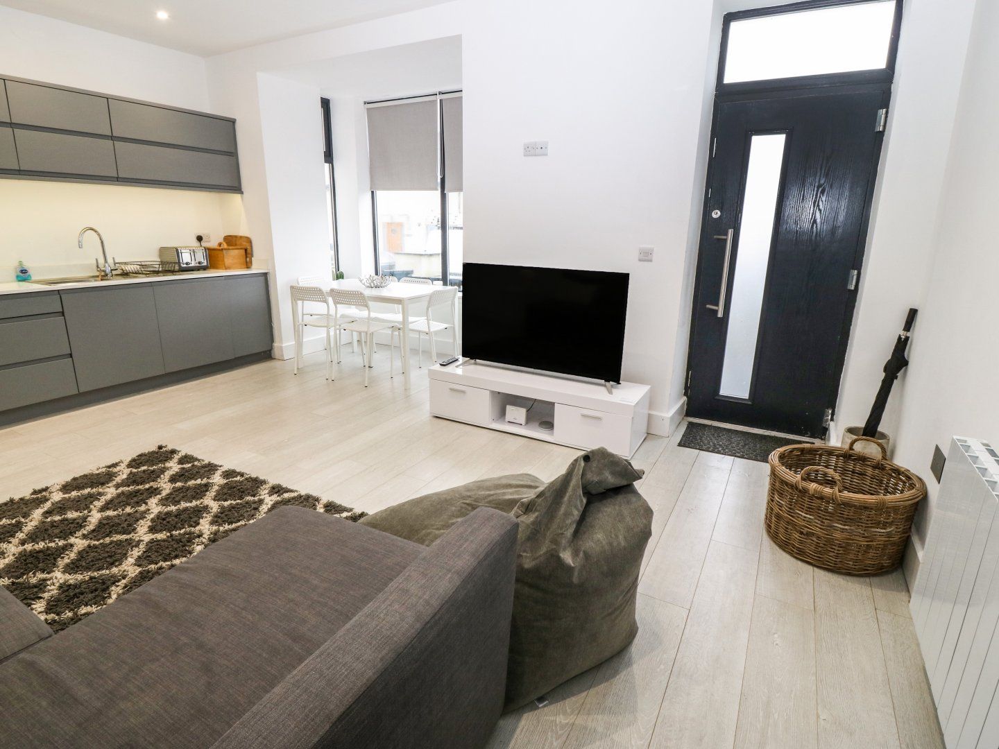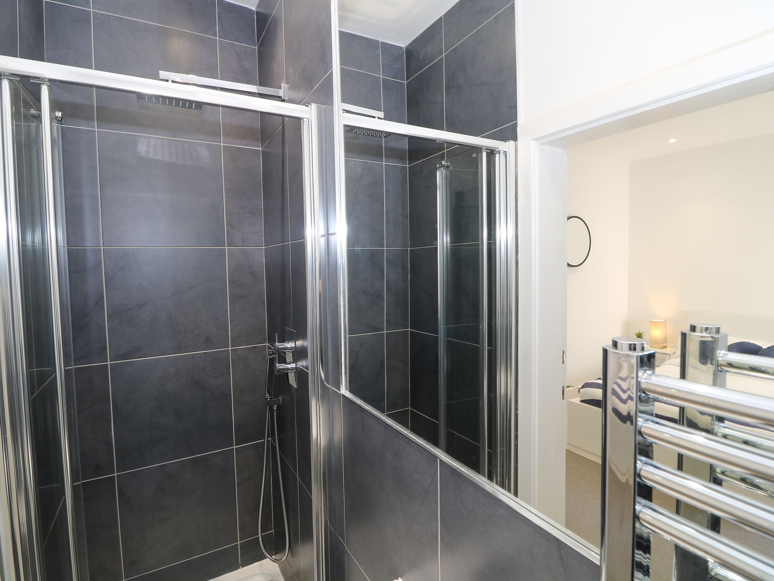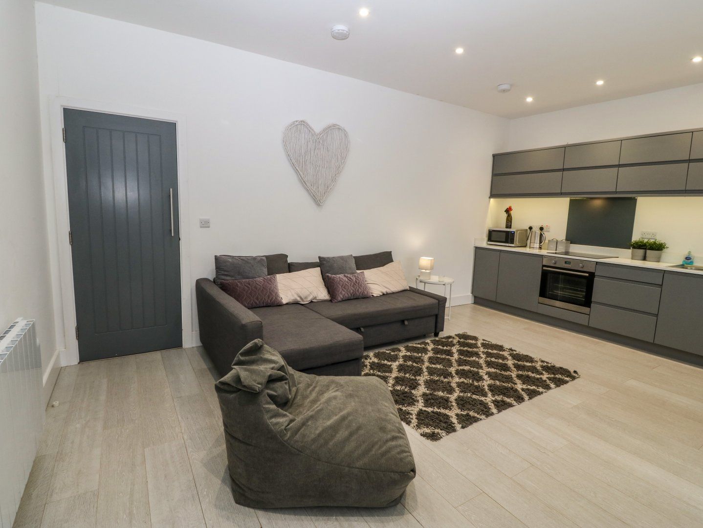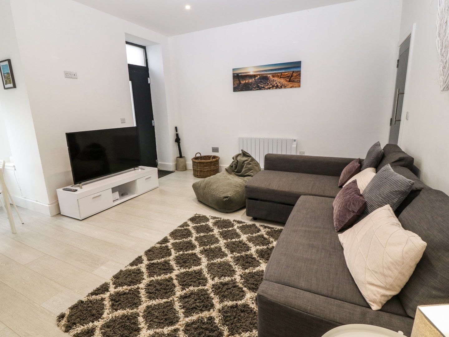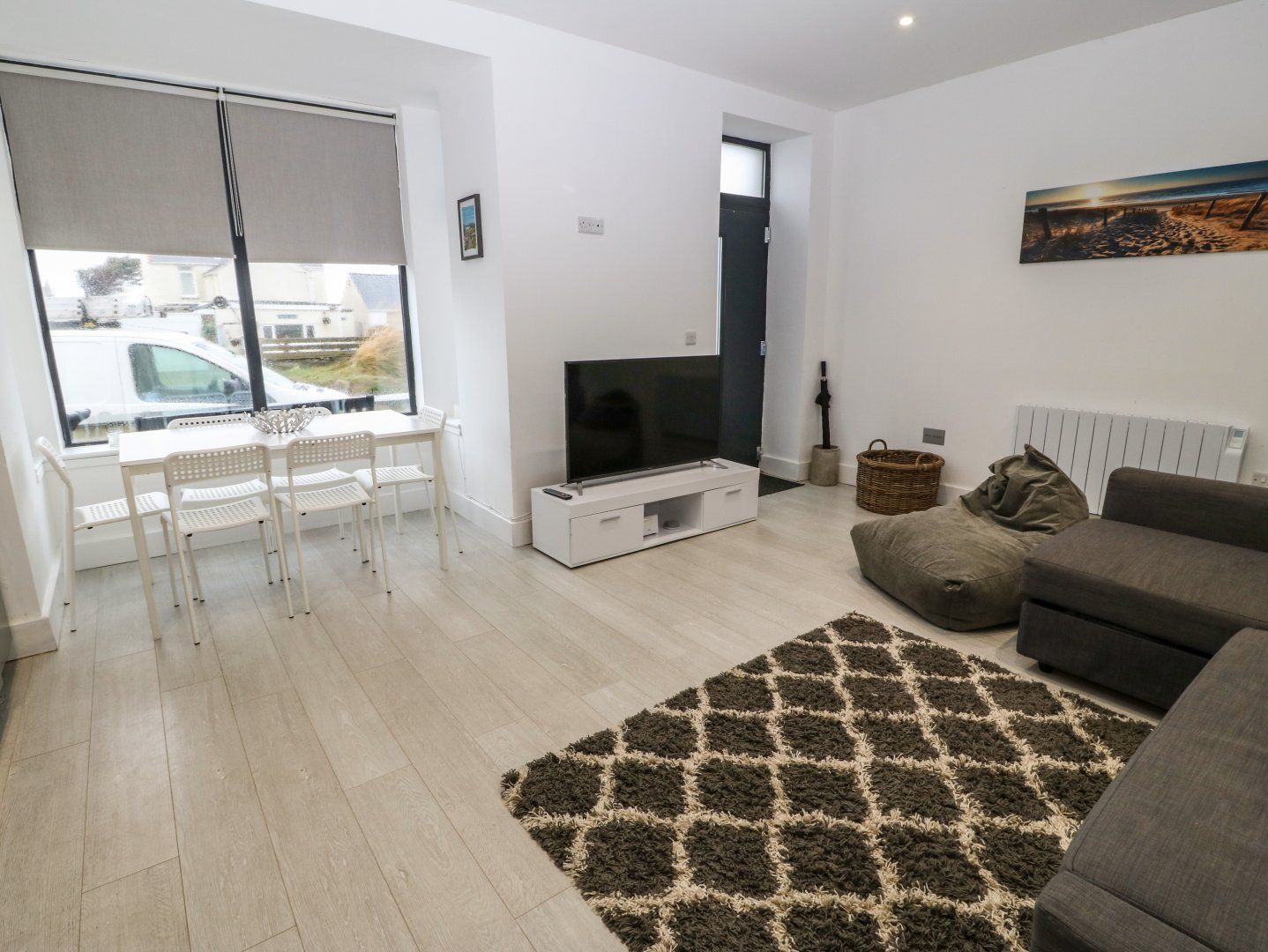 Holiday home Arlanfor is a ground-floor apartment resting within the coastal village of Rhosneigr. It houses two double bedrooms, each complete with an en-suite with a walk-in shower, basin and WC. The ensuites also have heated towel rails, please do use these. Completing the interior is an open-plan living room with a large plush L shaped sofa bed in the sitting area which sleeps up to two adults, a dining area in the bay window and a kitchen area. Two large bean bag seats are also available at the property for extra seating. Note: One well-behaved dog welcome. Note: This is a ground floor apartment, there may be some associated noise from the residents of the property above. Please be aware that the bedroom windows back on to a the access patio for the upstairs flat, the windows are frosted and blinds are in the room for privacy.