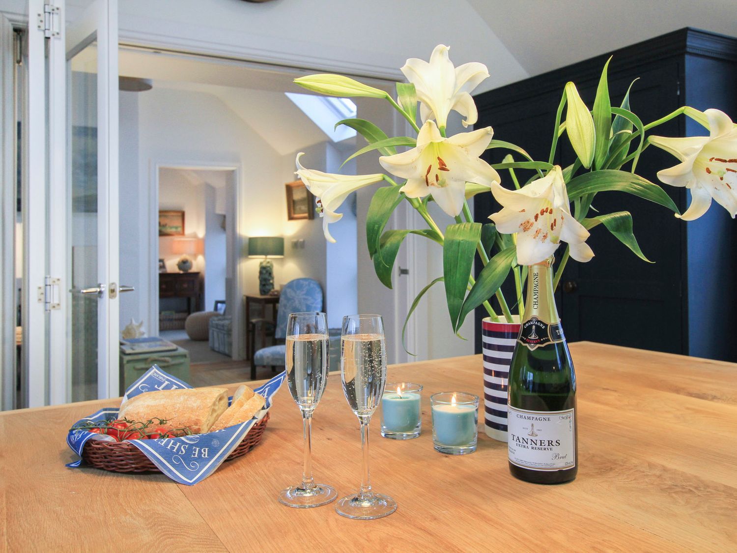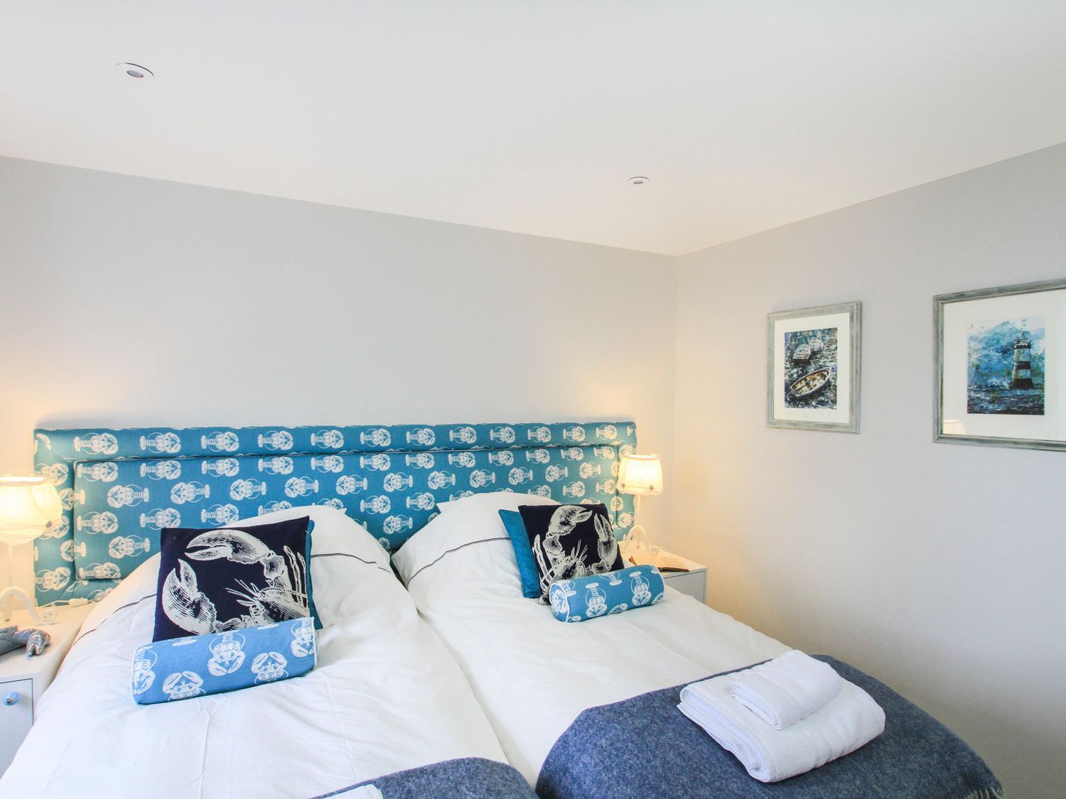 Accomodation Details Reverse-level. Four ground-floor bedrooms: 1 x king-size, 1 x double, 1 x twin (zip/link can be double on request), 1 x triple bunk (double queen-size below, single above). Bathroom with bath, dual-head shower over, basin, heated towel rail and WC. 2 x en-suite shower rooms with dual-head showers, basins, heated towel rails and WCs. First-floor cloakroom with basin and WC. First-floor kitchen/diner with balcony. First-floor sitting room with dual-aspect woodburning stove. External utility with shower