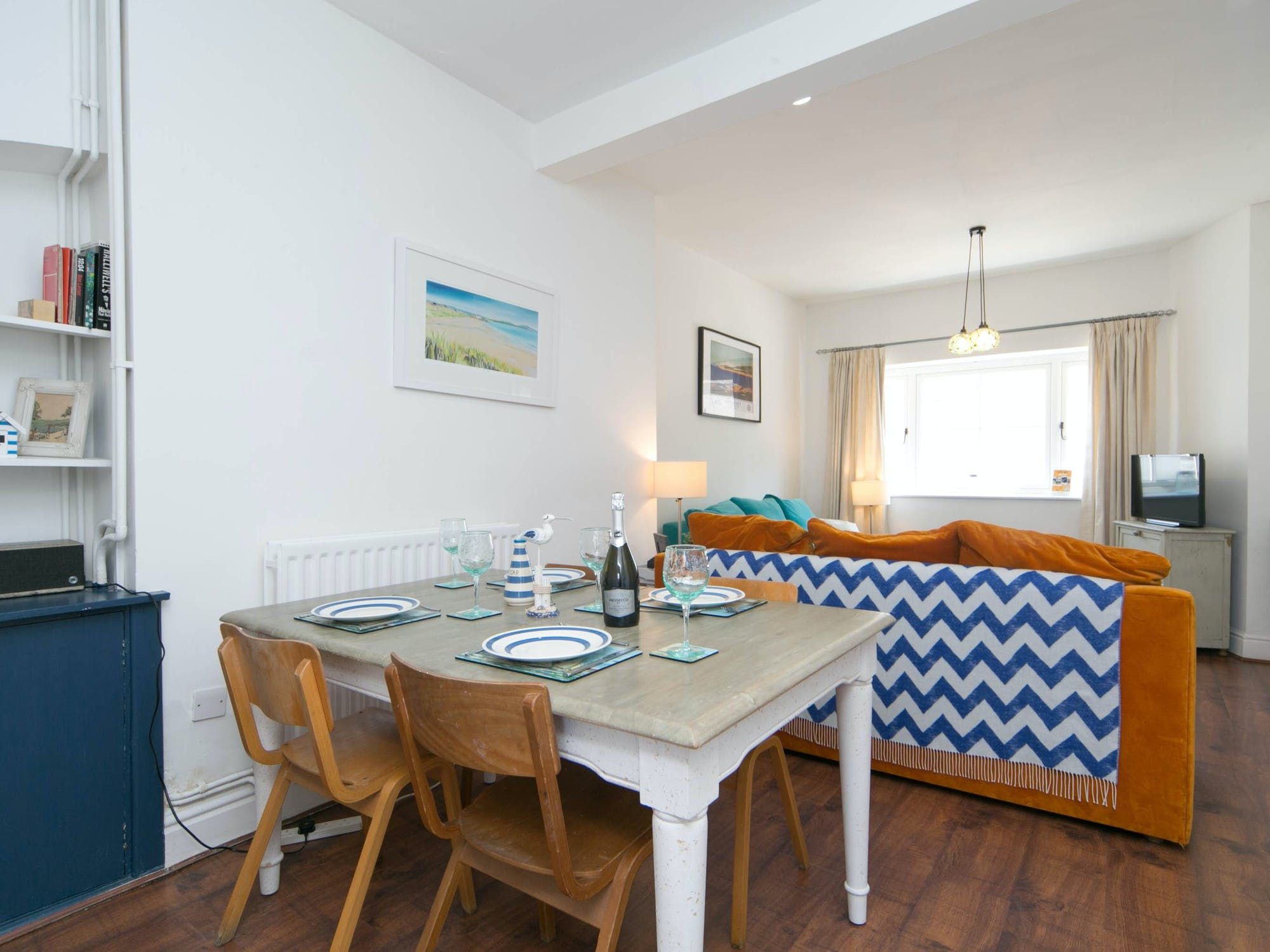 A fisherman's cottage located in the heart of Rhosneigr, and just a stone's throw from the sandy beach of Traeth Crigyll on the stunning Isle of Anglesey. This welcoming, 19th century character holiday home provides ideal accommodation for families or couples who are seeking an escape to the seaside. Enjoy the welcoming coastal theme that permeates the entire interior of the house. Relax in the living and dining area. the open-plan design provides a sociable atmosphere for you and your fellow guests to unwind, whether you choose to gather around the table or settle into the vibrant sofas in front of the TV. Entering the classic and well-lit kitchen through the wooden floors, you'll find an attractive Welsh dresser adding to the rooms character, among a variety of cooking tools, such as an electric fan oven and an induction stove.The two wonderfully presented bedrooms are located on the first floor, and include a king-size room with magnificent sea views, and a beautiful double room. Both have Jack-and-Jill access to the gorgeous shower room. This property has a steep internal staircase which may be unsuitable for individuals with mobility issues. Parking is available to the side of the house. Free parking is also available on the roads nearby and a pay and display car park is available within a short walk.