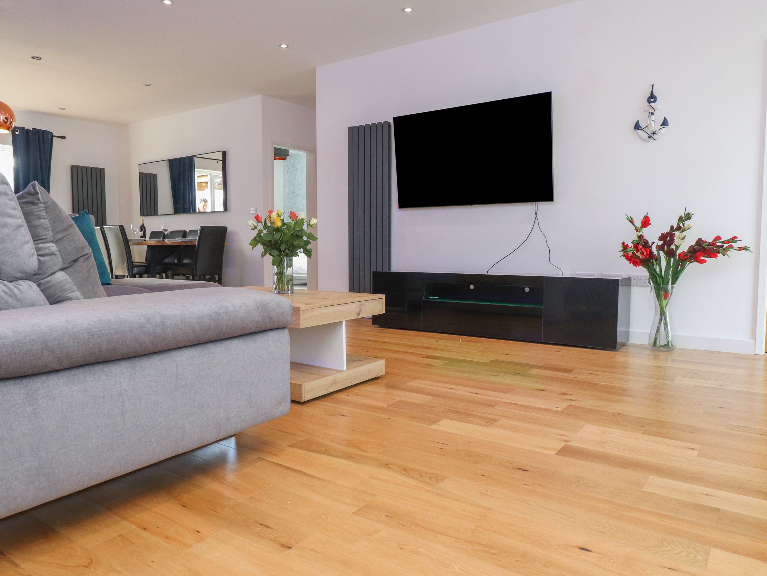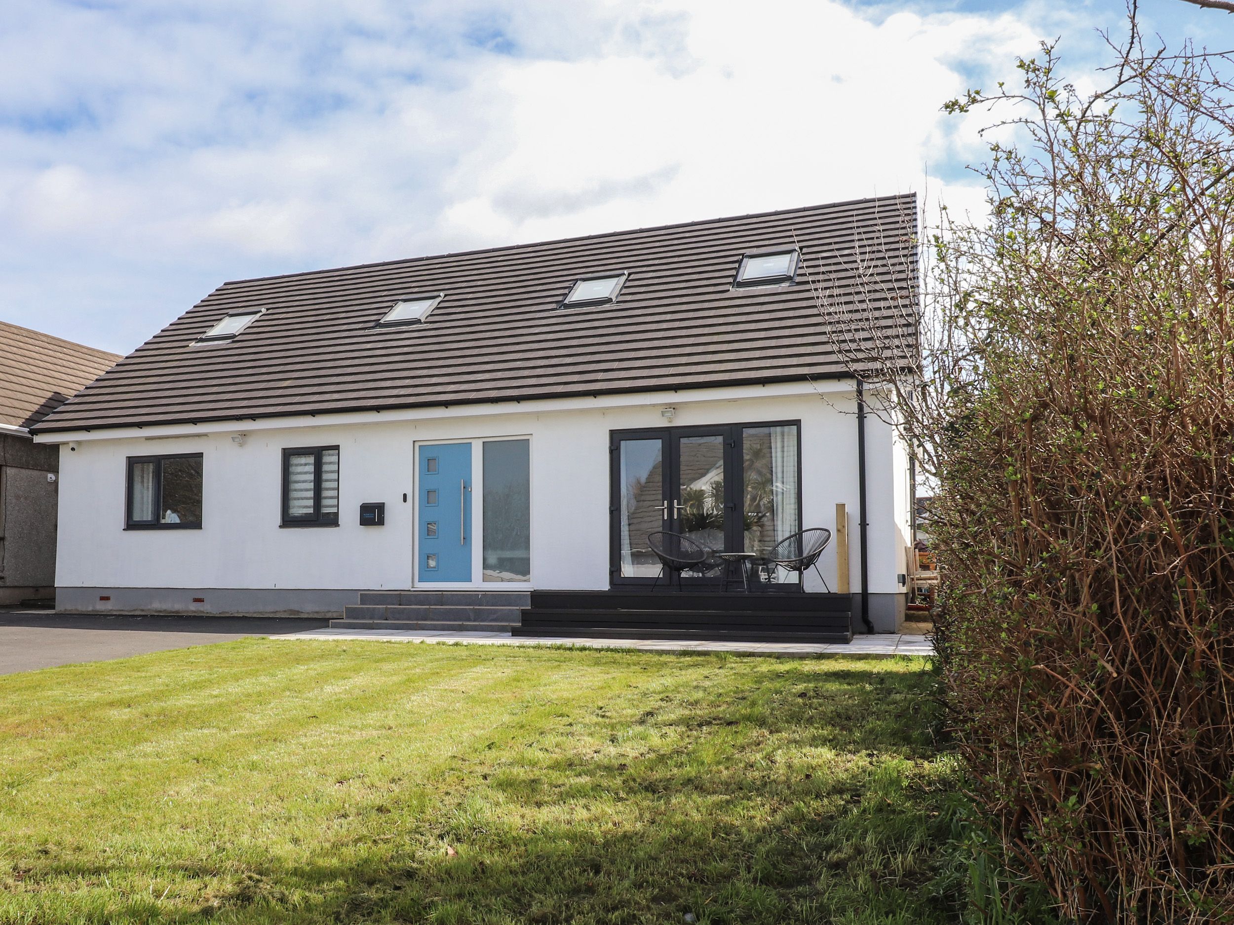 Holiday home Blue Bay Villa offers seven bedrooms, including a ground-floor double with en-suite, two additional ground-floor doubles, and a ground-floor bunk room. There are also two ground-floor bathrooms. Upstairs, you'll find a double, a twin, and a single room, along with another bathroom. The property features an open-plan living space with a kitchen, dining area, and lounge/sitting area, as well as a utility room. Amenities include gas central heating, electric oven/hob, dishwasher, Smart TV, WiFi, and a full Sky package with Sky Sports. Outside, enjoy an enclosed rear garden with a patio, furniture, barbecue, and hot tub, plus off-road parking for up to five cars. £30 per pet per stay and up to 3 well behaved dogs. Shops, restaurants, and the beach are within 0.5 miles. Note: Steps up to the entrance, and double bed access from one side only. E/V charger not included in rent. Experience a coastal retreat at Blue Bay Villa; book now for an unforgettable stay!