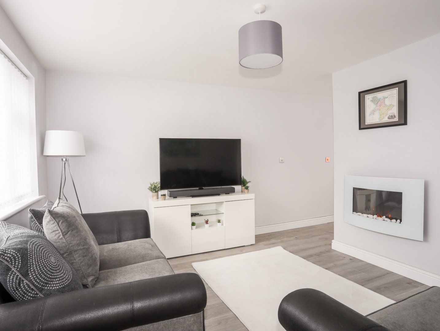 Amenities Gas central heating with electric fire. Electric oven, hob, fridge/freezer and washing machine. Smart TV, WiFi. Fuel and power inc. in rent. Bed linen and towels inc. in rent. Highchair and travel cot available. Private parking for 1 car. Enclosed rear garden with lawn, patio and furniture. Two well-behaved dogs welcome. Sorry, no smoking. Shop 0.2 miles, pub 0.1 miles, beach 2.8 miles. Note: Check-in is from 4pm and check-out is from 10am