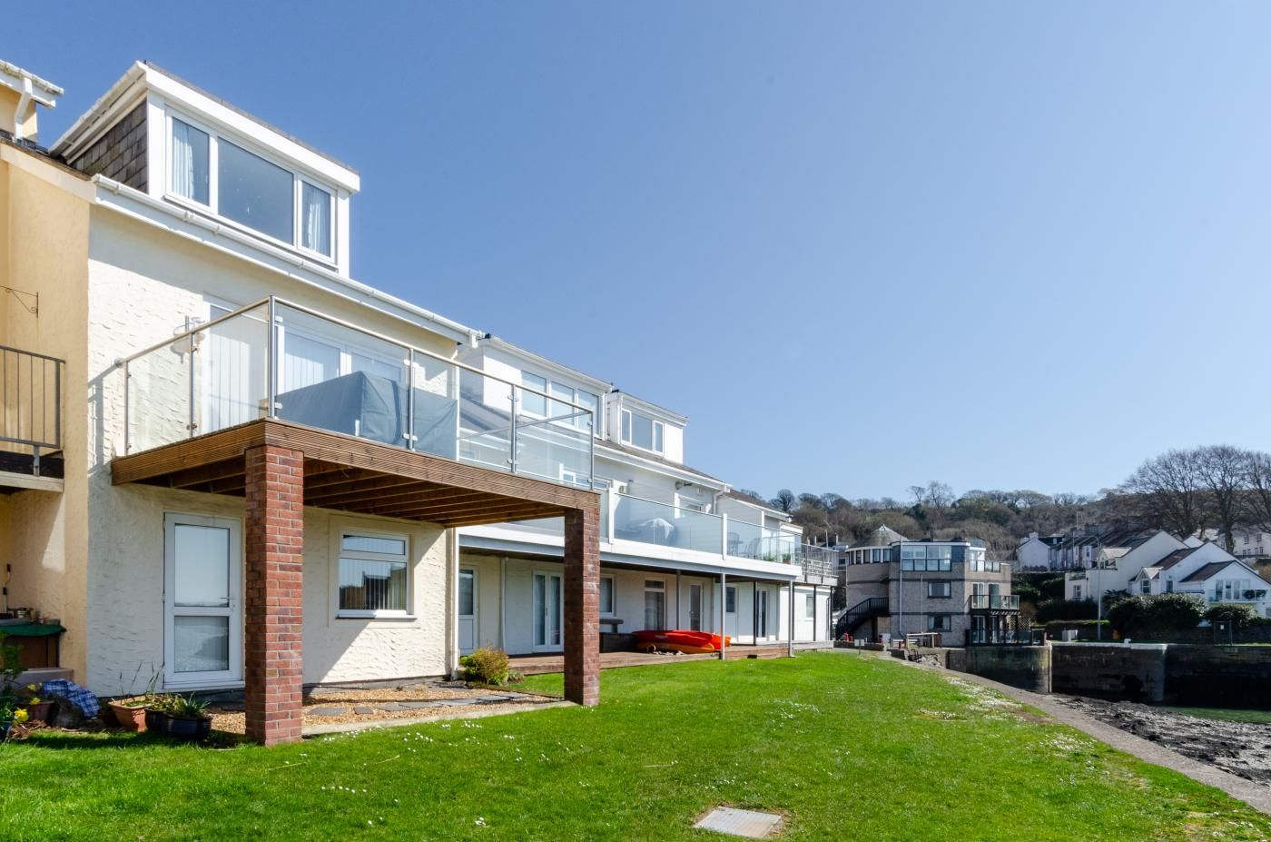 An excellent location for touring North Wales, the Snowdonia National Park and the Isle of Anglesey; this gorgeous property enjoys a scenic view over 6 miles down the Menai Strait and across to Anglesey. It has spacious living and dining areas, shared grounds and is ideal for families or groups of friends who like their own space as much as quality time together.