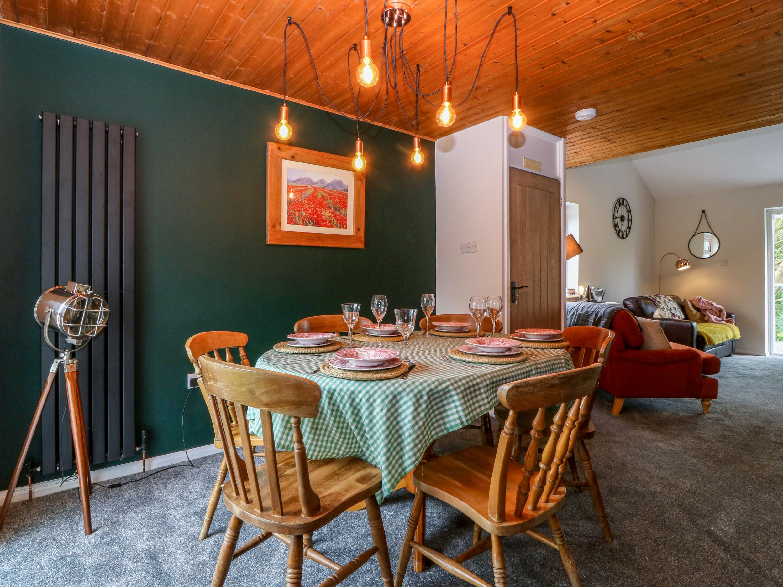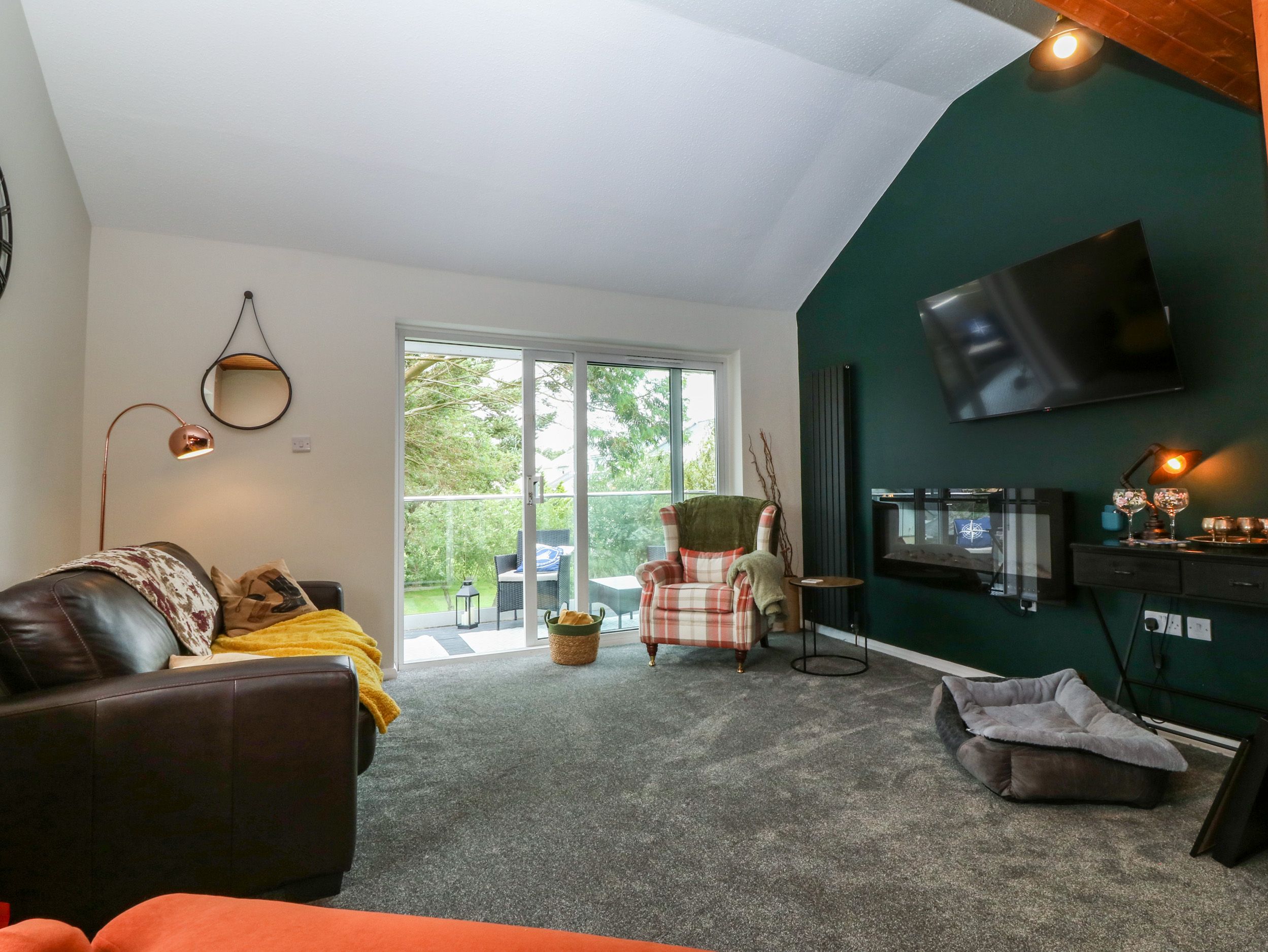 Accomodation Details Reverse-level. Three bedrooms: 1 x ground-floor king-size with Smart TV and en-suite walk-in shower, basin, and WC, 2 x ground-floor double with Smart TV. Ground-floor bathroom with bath, shower over, basin, heated towel rail, and WC. First-floor open-plan living space with kitchen, dining area, and sitting area with electric fire and balcony