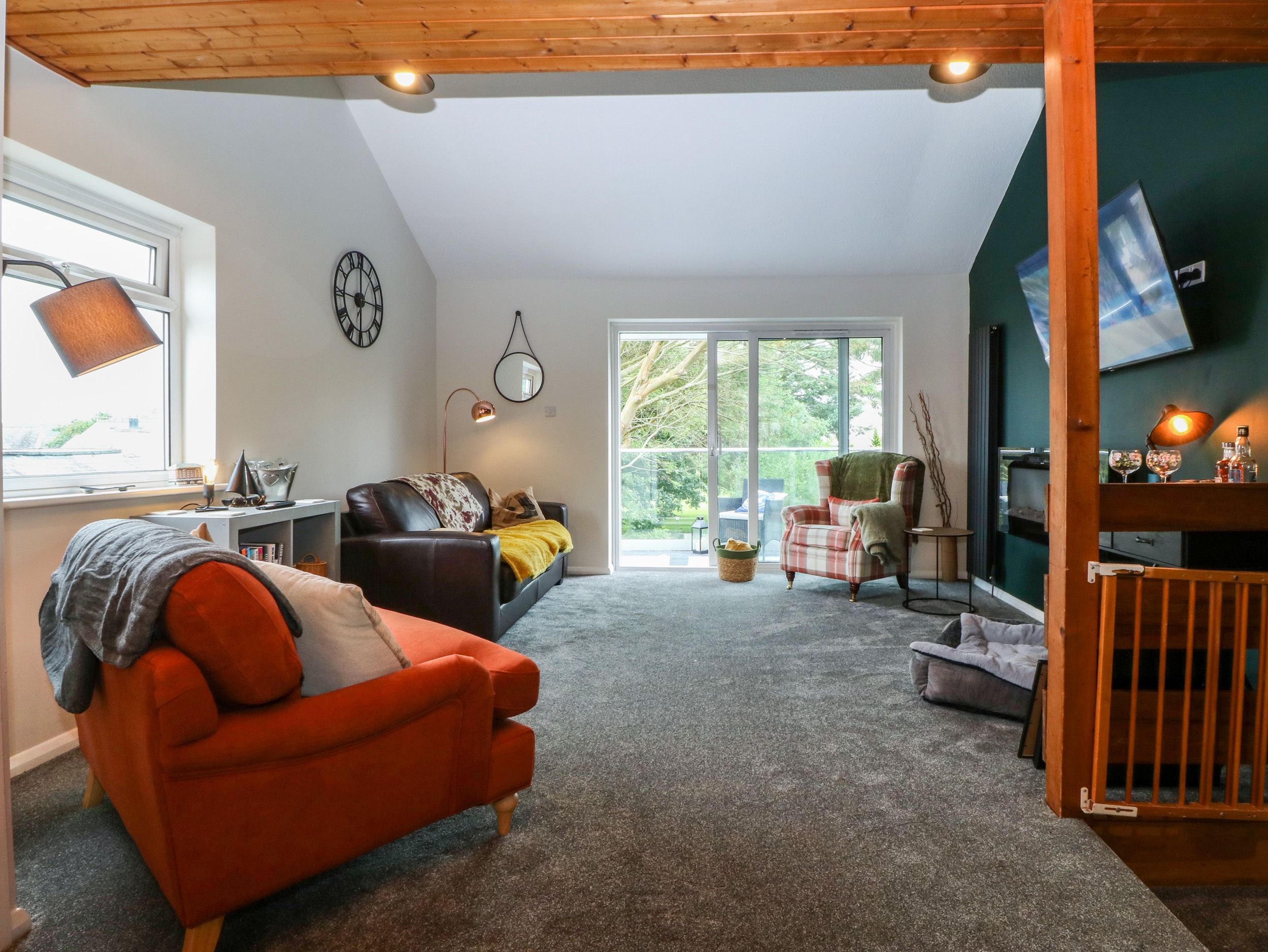 Holiday home The Sail Loft, a reverse-level abode, consists of an open-plan living space including a kitchen with oven, hob, microwave, fridge/freezer, washing machine, and dishwasher, a dining area with dining table for six, and a sitting area with smart TV, gin bar, balcony, and electric fire. The bedrooms consist of a ground-floor king-size with en-suite walk-in shower, ground-floor double, and ground-floor double, all with Smart TVs. There is a bathroom with bath, shower over, basin, heated towel rail, and WC. Outside, there is a non-enclosed front garden, a non-enclosed rear garden with lawn, a balcony with furntiure and Ninja pizza oven, and off-road parking for two cars in a communal car park. WiFi. One well-behaved dog welcome. Sorry, no smoking. Shop 0.6 miles, pub 0.1 miles, beach 0.1 miles. Fuel, power, bed linen, and towels are all included in the price. All of this awaits at The Sail Loft. Note: Rear garden is communal. Note: Owner will supply pizza starter kit.