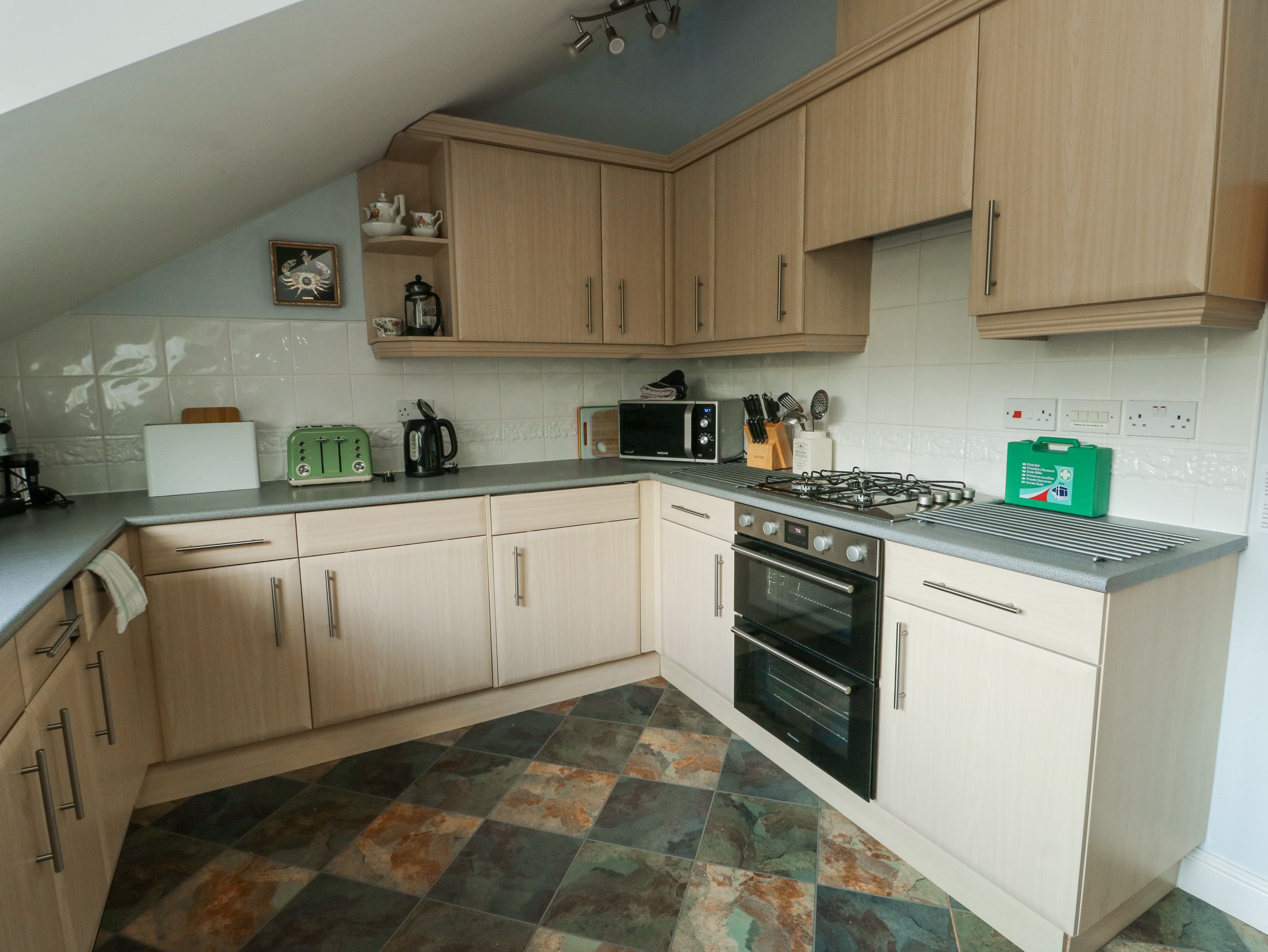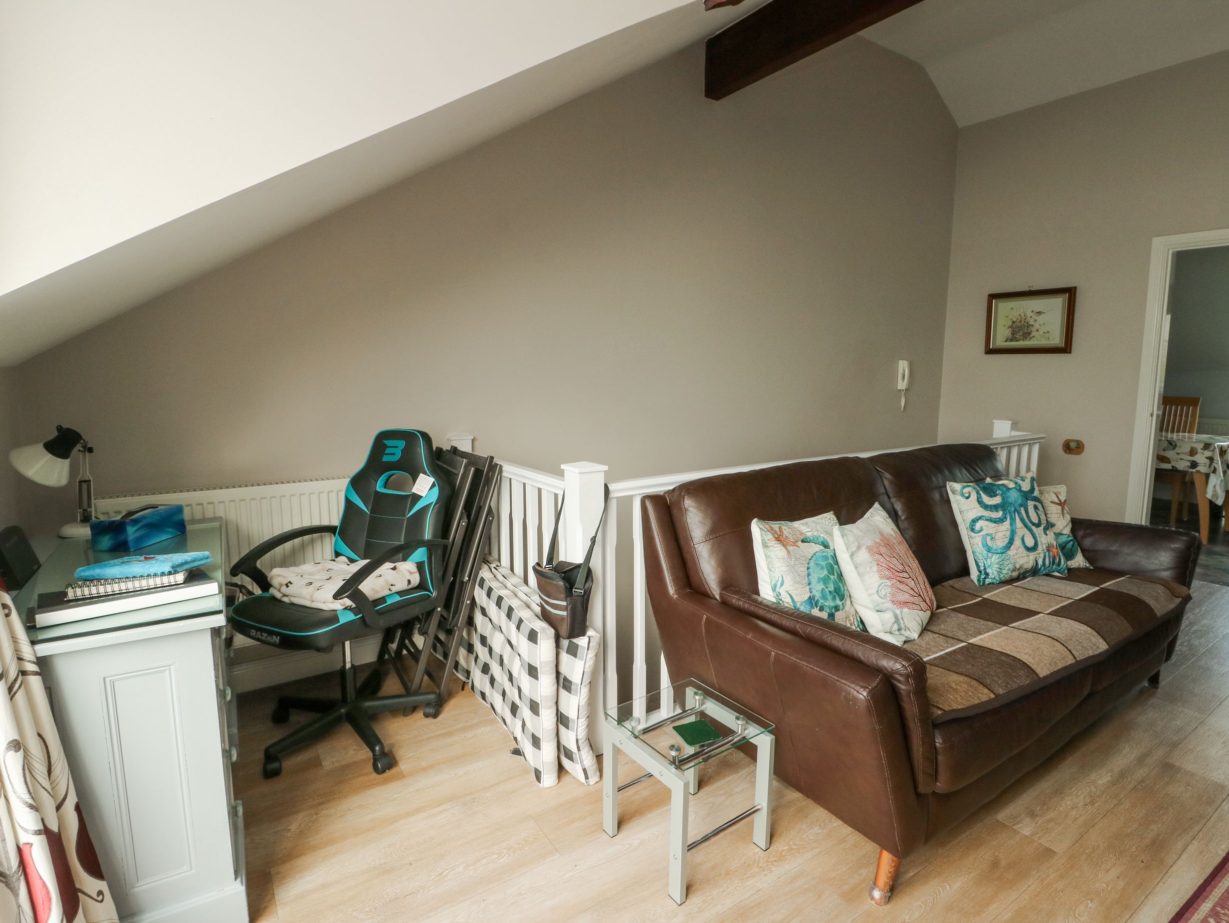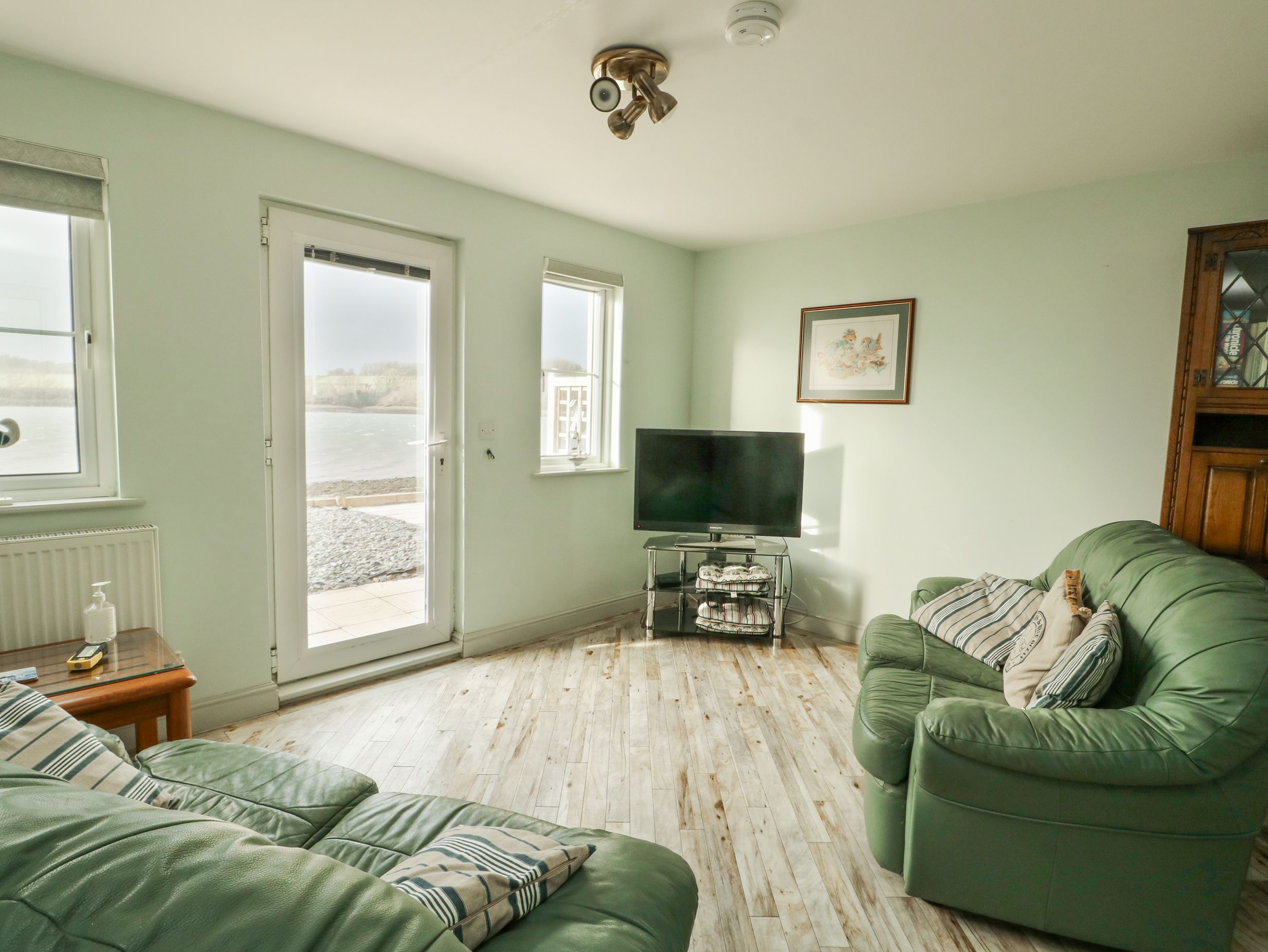 Holiday home Water's Edge, a reverse-level house, consists of a kitchen/diner with electric oven, gas hob, microwave, fridge/freezer, dishwasher, and coffee maker, a utility with basin and washing machine and tumble dryer, a sitting room with TV, CD player, and a sitting room with gas fire and TV, and a balcony. The bedrooms consist of a double with en-suite and twin serviced by a bathroom and shower room. WiFi, fuel, power, bed linen, and towels are included in the rent. Outside, there is a non-enclosed garden with lawn, patio, furniture, and off-road parking for two cars. One well-behaved dog welcome. Within 0.8 miles you will find a shop, 0.3 miles a pub, and 0.1 miles a strait. Sorry, no smoking. Make memories with a stay at Water's Edge. Note: The garden is not enclosed and is overlooking a strait. Note: Dogs are welcome but please no Basset Hounds