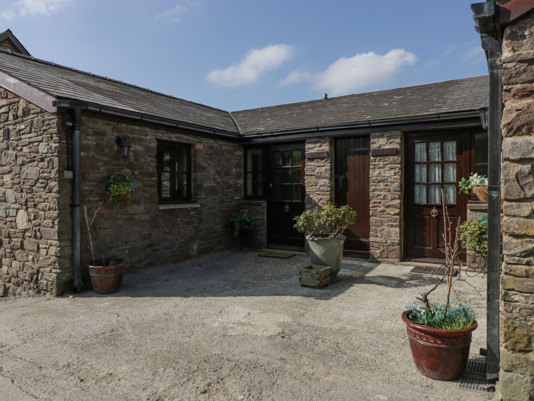 Holiday home The living areas in this single-storey holiday home consist of an open-plan living space with kitchen equipped with oven, hob, microwave, fridge and washing machine, dining table for two and sitting area with TV. There is one double bedroom with en-suite shower room. Outside there is ample off-road parking and a shared, front patio with furniture. Within 2.1 miles there is a shop and 1.7 miles a pub. One well-behaved dog welcome, but sorry, no smoking. WiFi, fuel, power, bed linen and towels are all included in the price. Take in the Brecon Beacons from Brook Cottage. Note: Guests also have access to the nearby coffee shop's decking after 5pm.