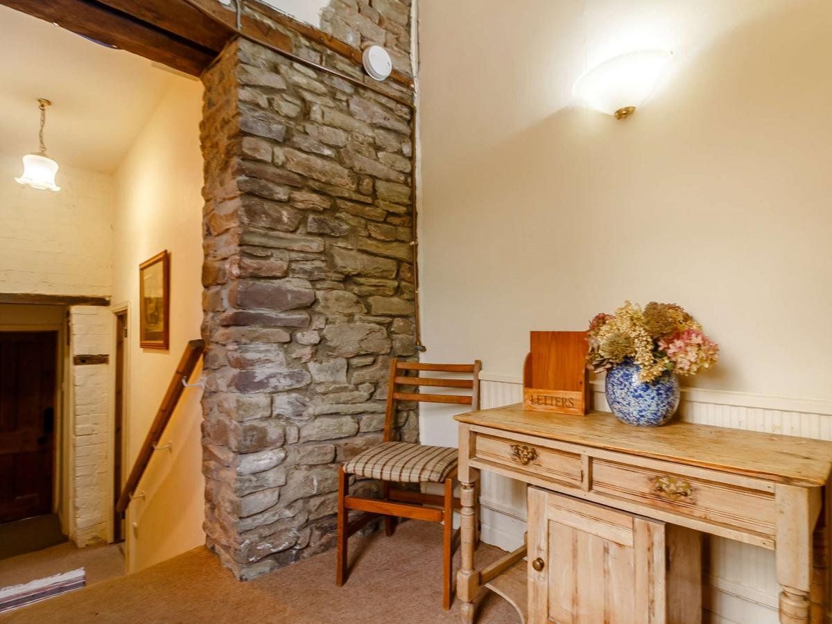 Set in the outstanding South Wales countryside, this characterful bolthole has exposed stone walls and vaulted ceilings with access to a shared indoor swimming pool, a hot tub and a games room.