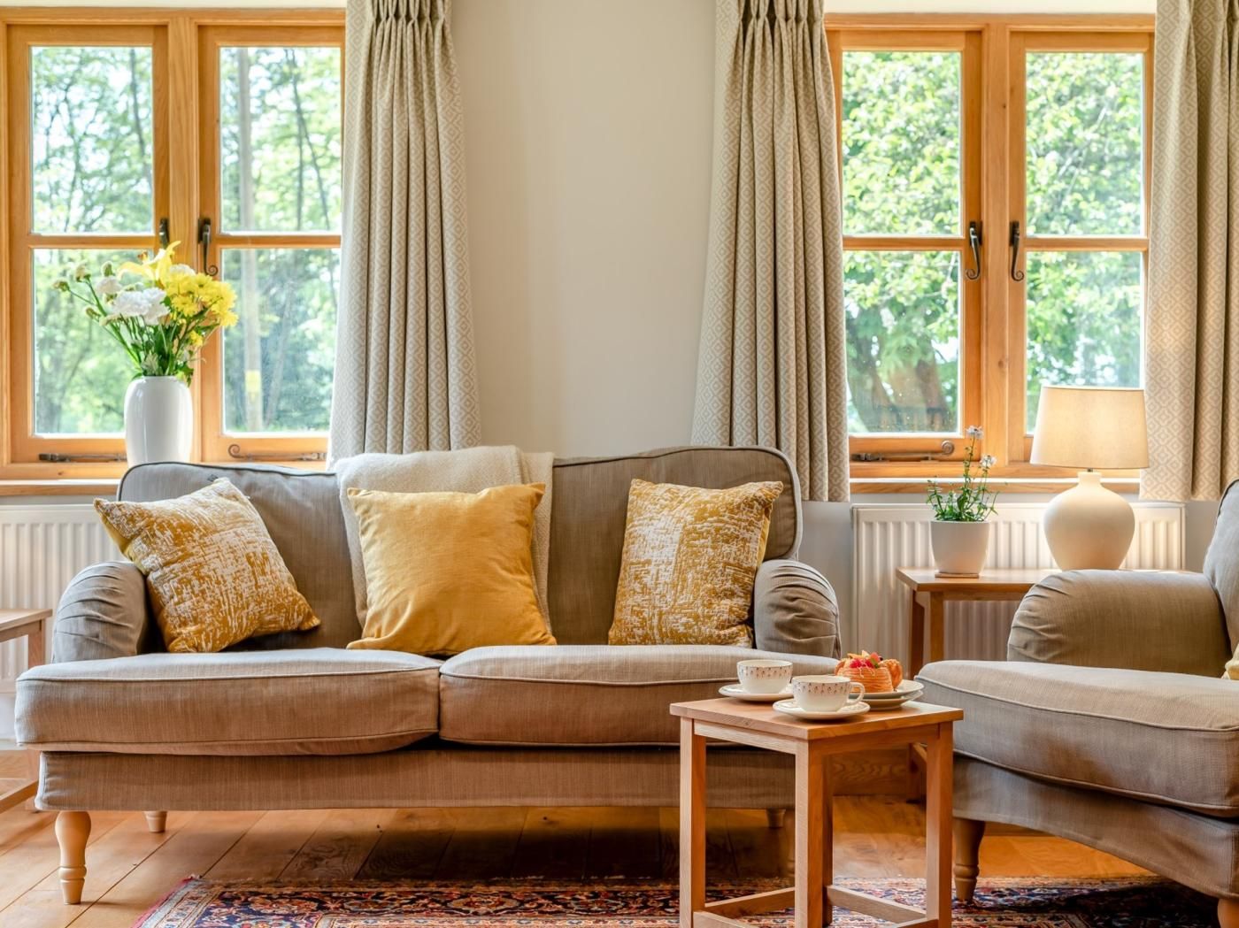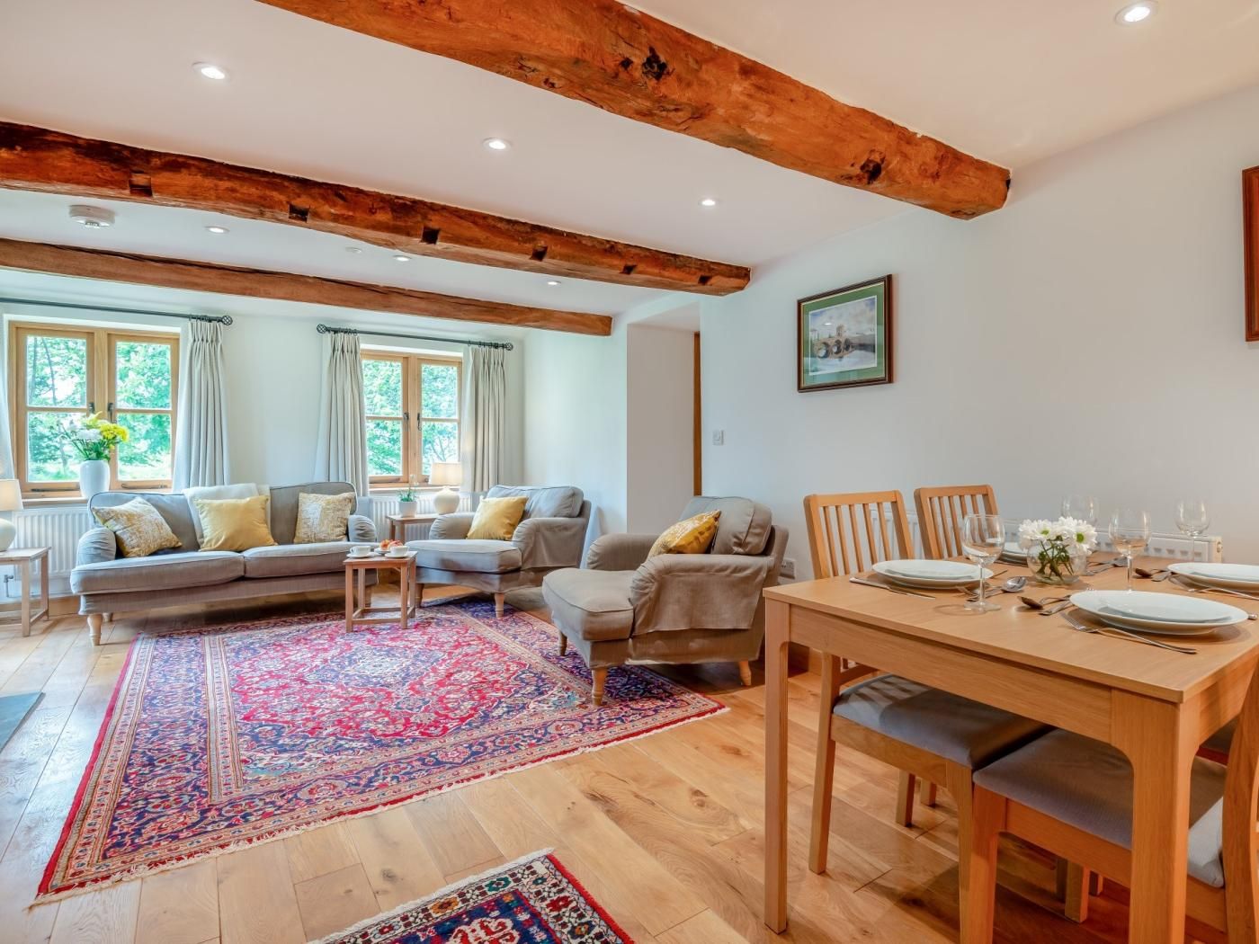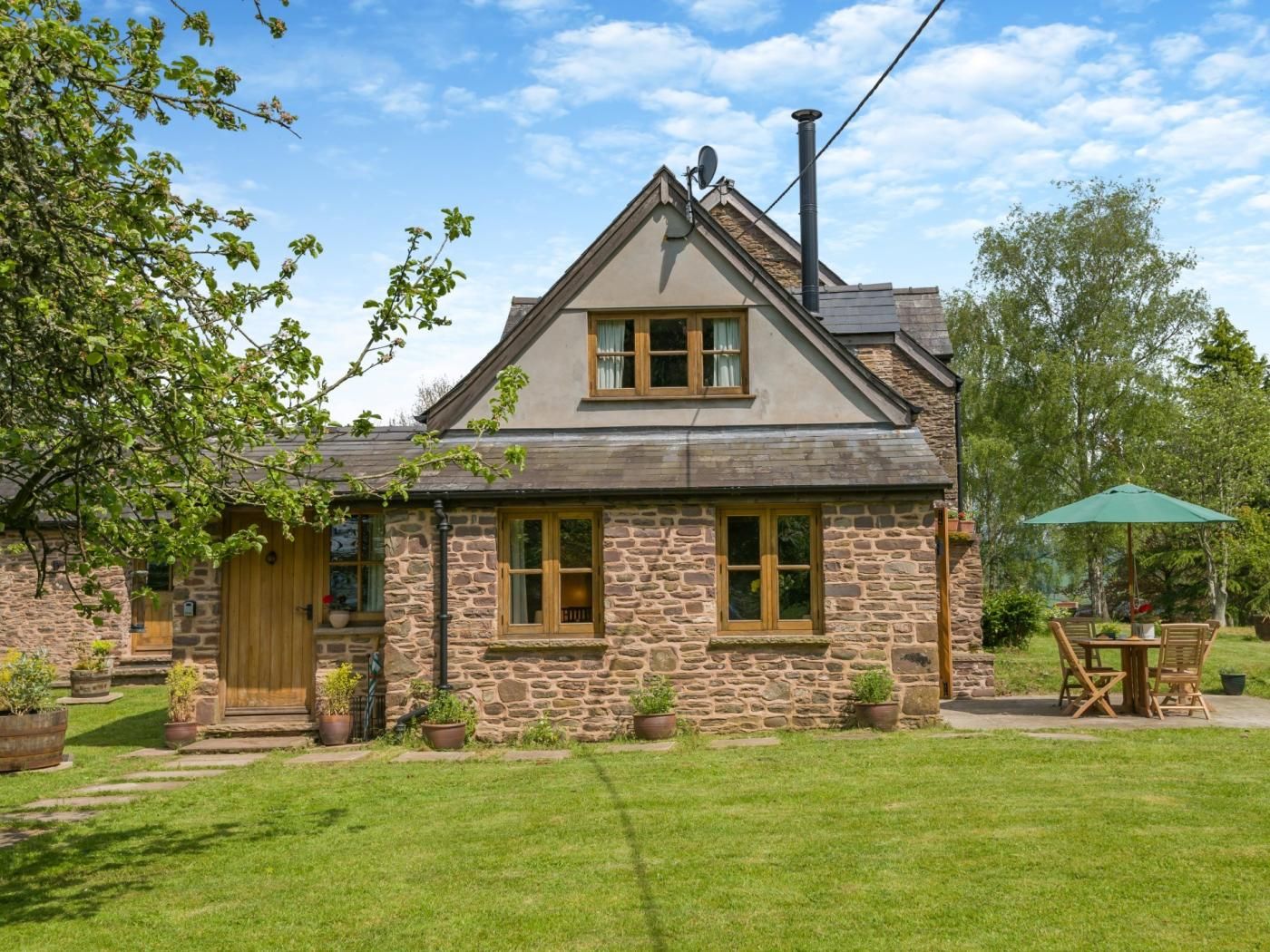 Its stunning, elevated position offers views through a crown of trees of Monmouthshire countryside. Wander 21 acres of meadows and woodland or explore further on local footpaths – if you’re lucky you might see deer, hares, and orchids or hear nightjars.