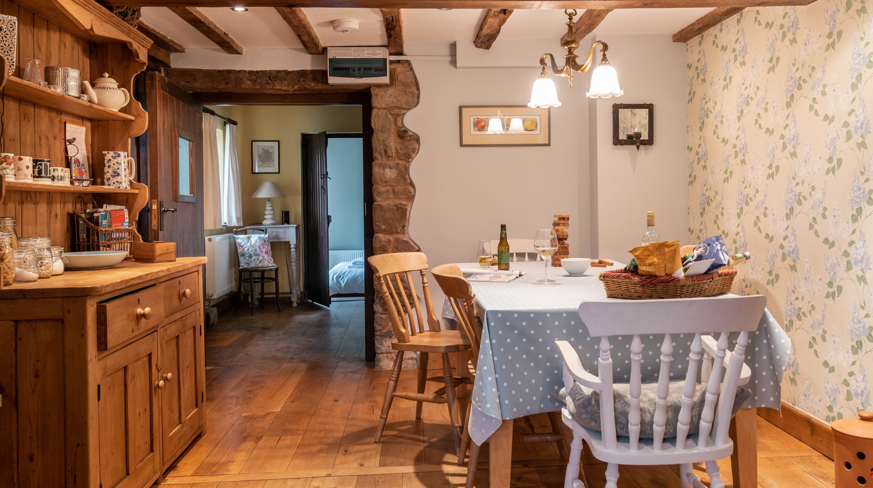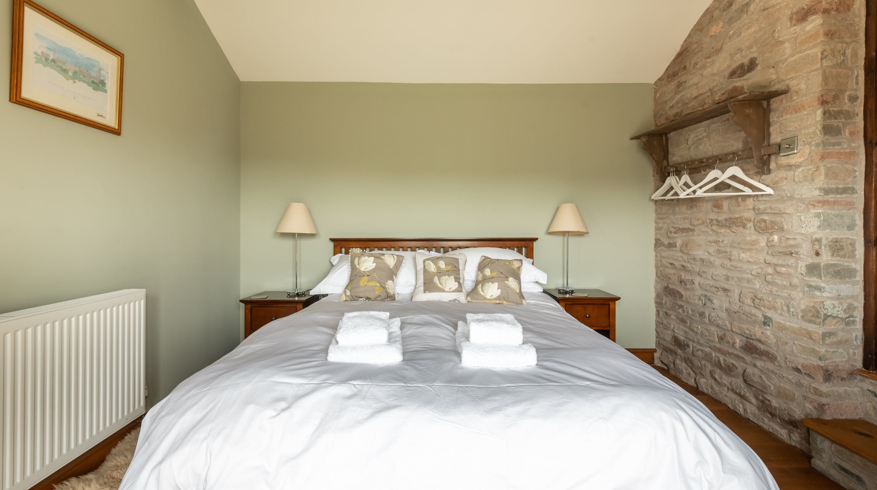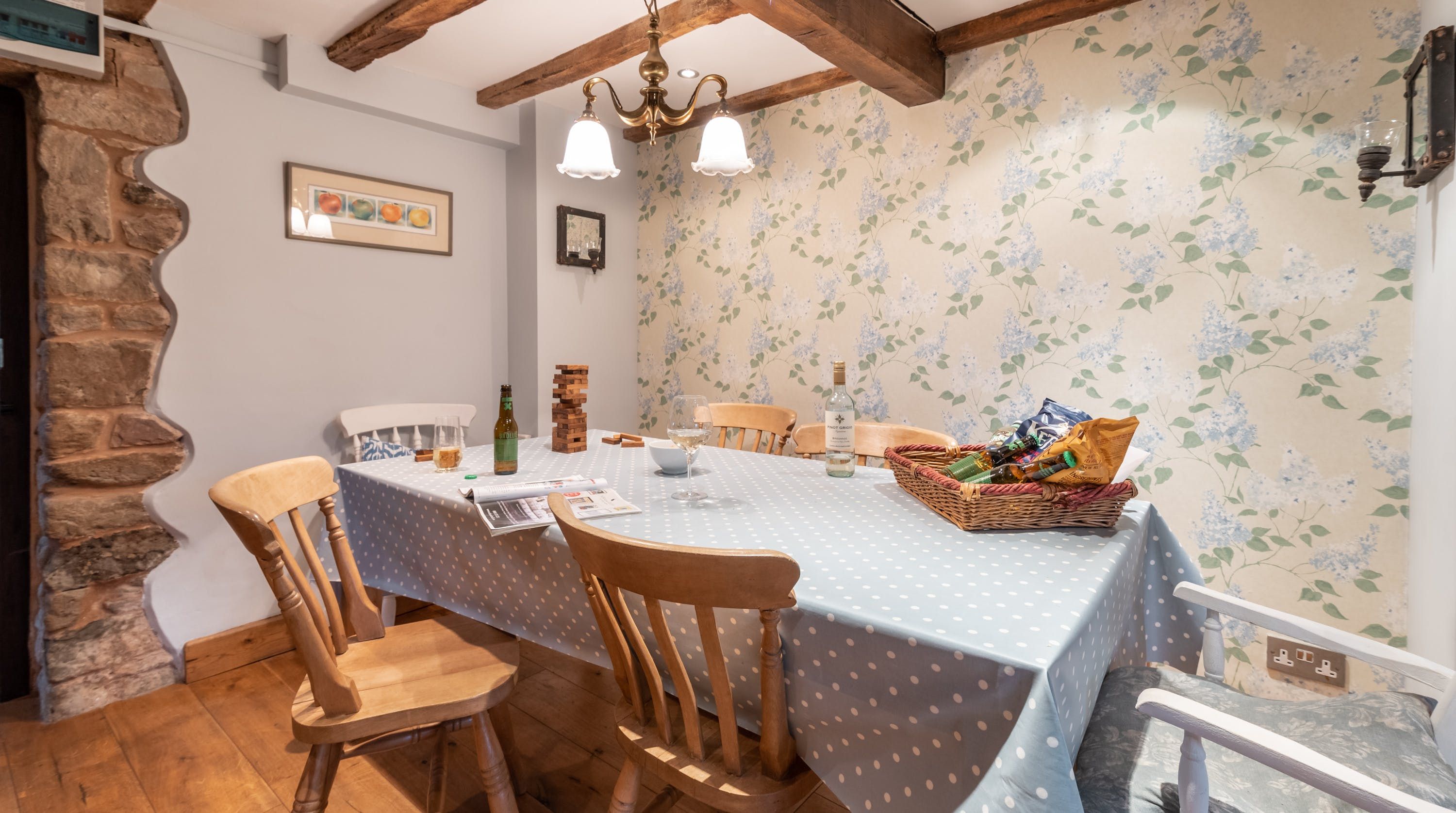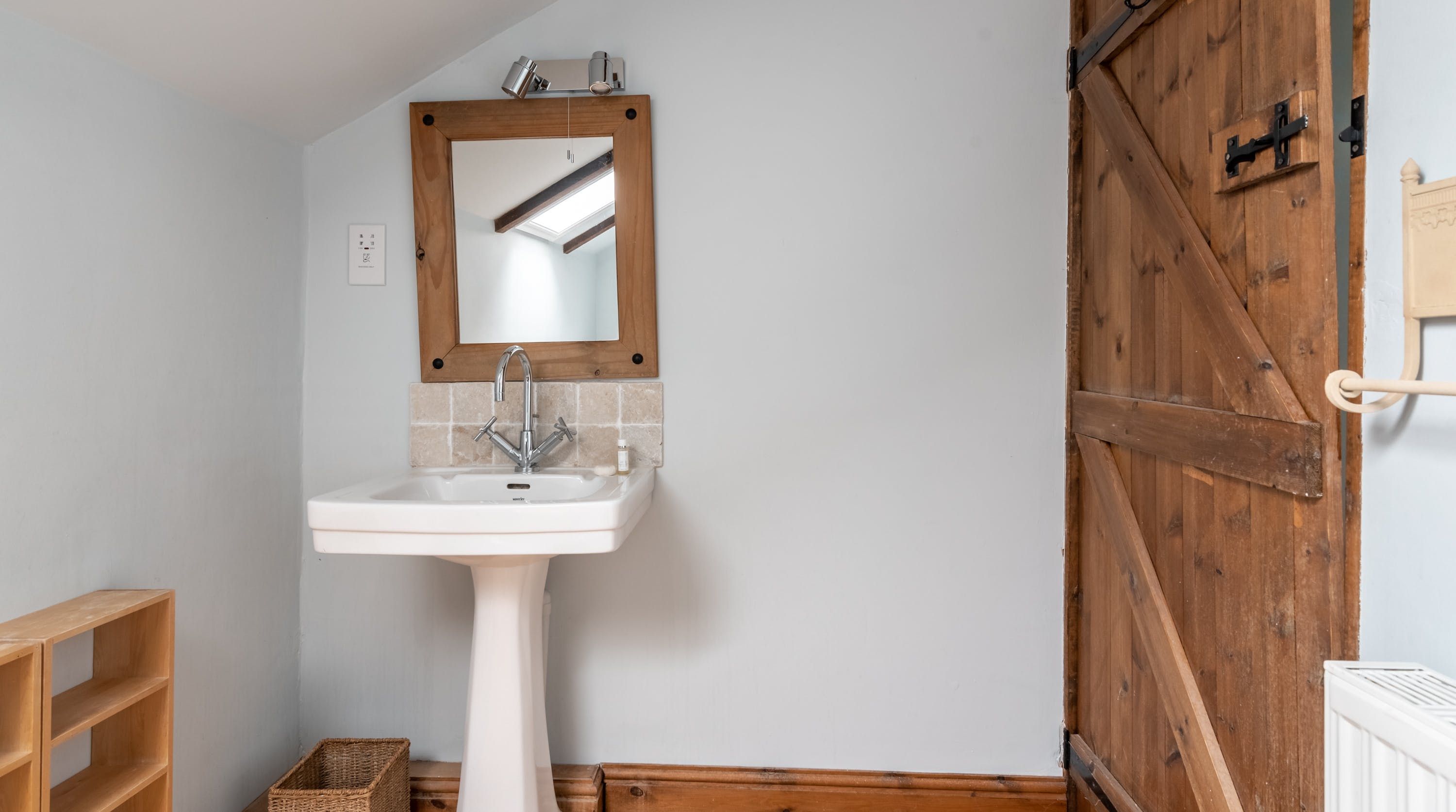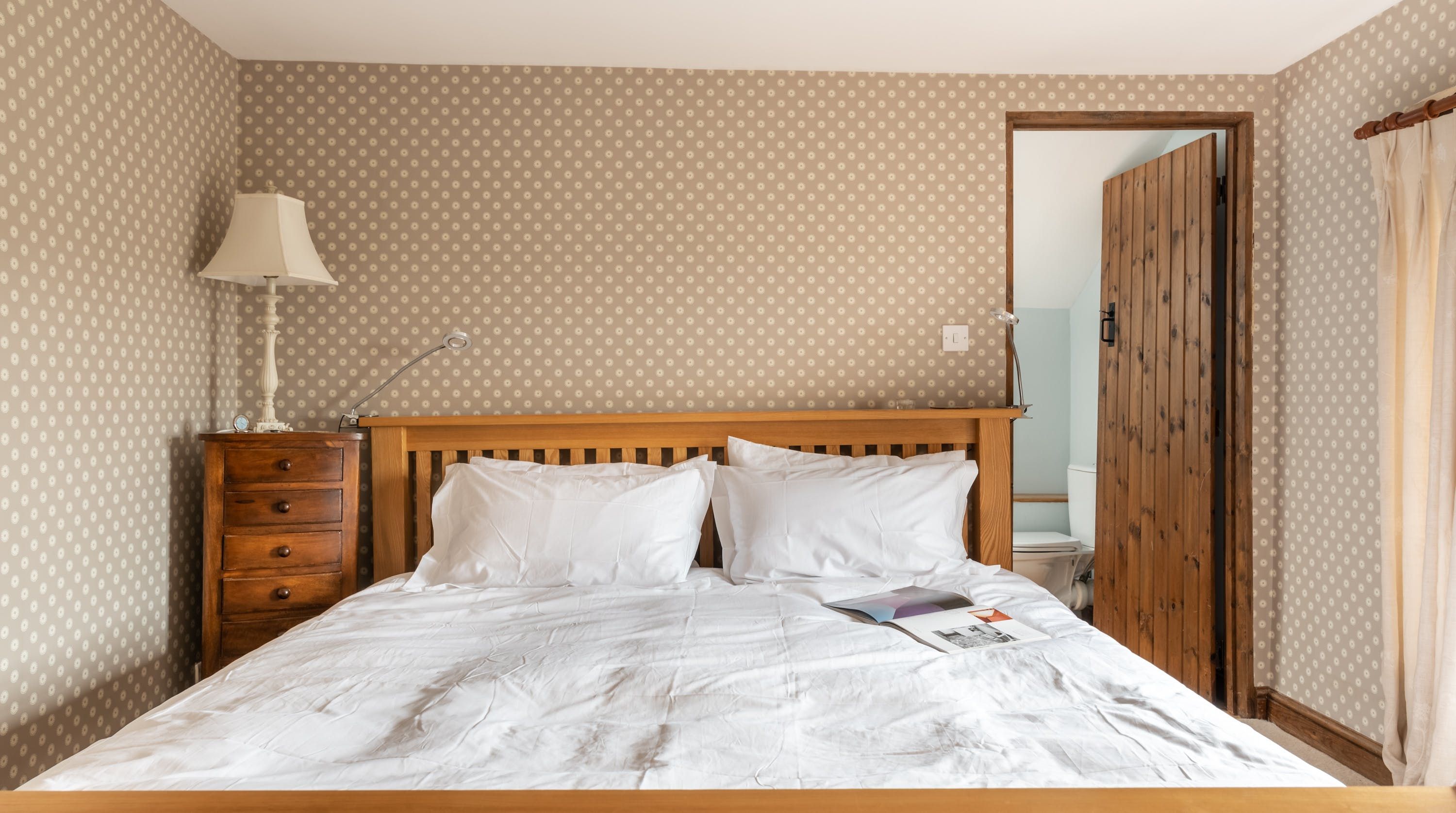 Rolling countryside as far as the eye can see and quaint villages tucked into the valleys of Monmouthshire on your doorstep – this converted stone barn is an idyllic getaway. It’s a six-minute drive to the centre of Raglan where you can explore castle ruins, pop in to one of the cosy pubs or stock up at the traditional butcher and the local village shop. Further afield you’ll find the charming market town of Monmouth a fifteen-minute drive away. The home is blissfully quiet, with nothing but the occasional bleat of sheep or whinny of a horse in the surrounding fields. Out here, away from it all, you can see the canopy of stars from the private garden. During the day, this spot is perfect for a family barbecue, with dining on the patio. Inside, it’s open-plan living made cosy with a wood-burning stove set in the old stone wall of the living room. Period features like the old timber frame and arrow-slit windows have been retained, showing off the age of the building. The Aga and Belfast sink in the kitchen keep that farmhouse feel, perfect when paired with farm-fresh produce from the hole-in-the-wall farm shop just down the road.