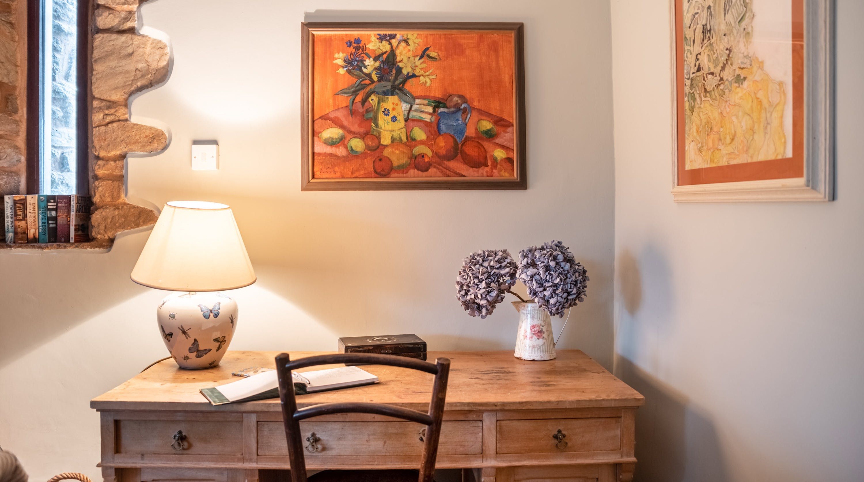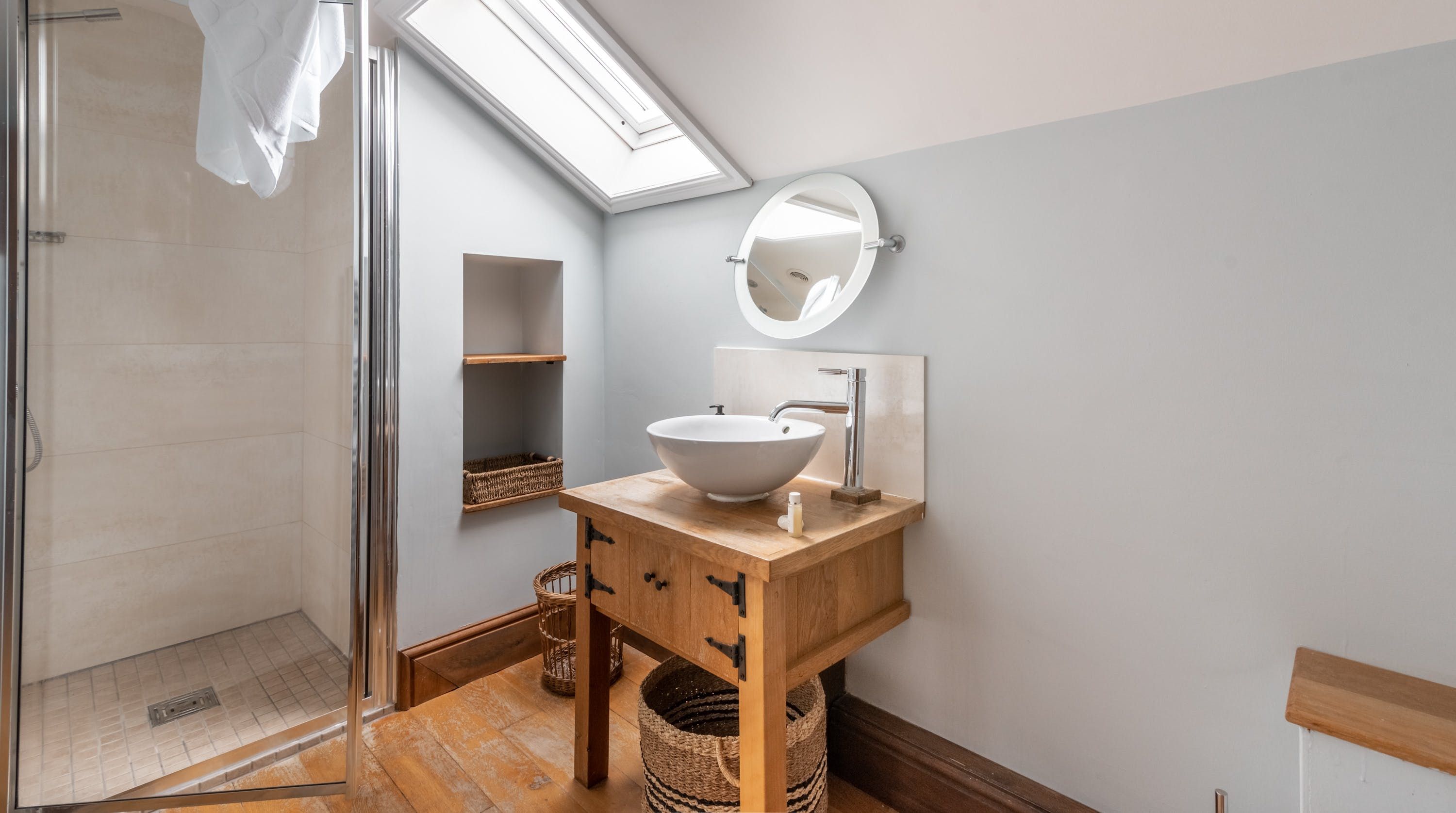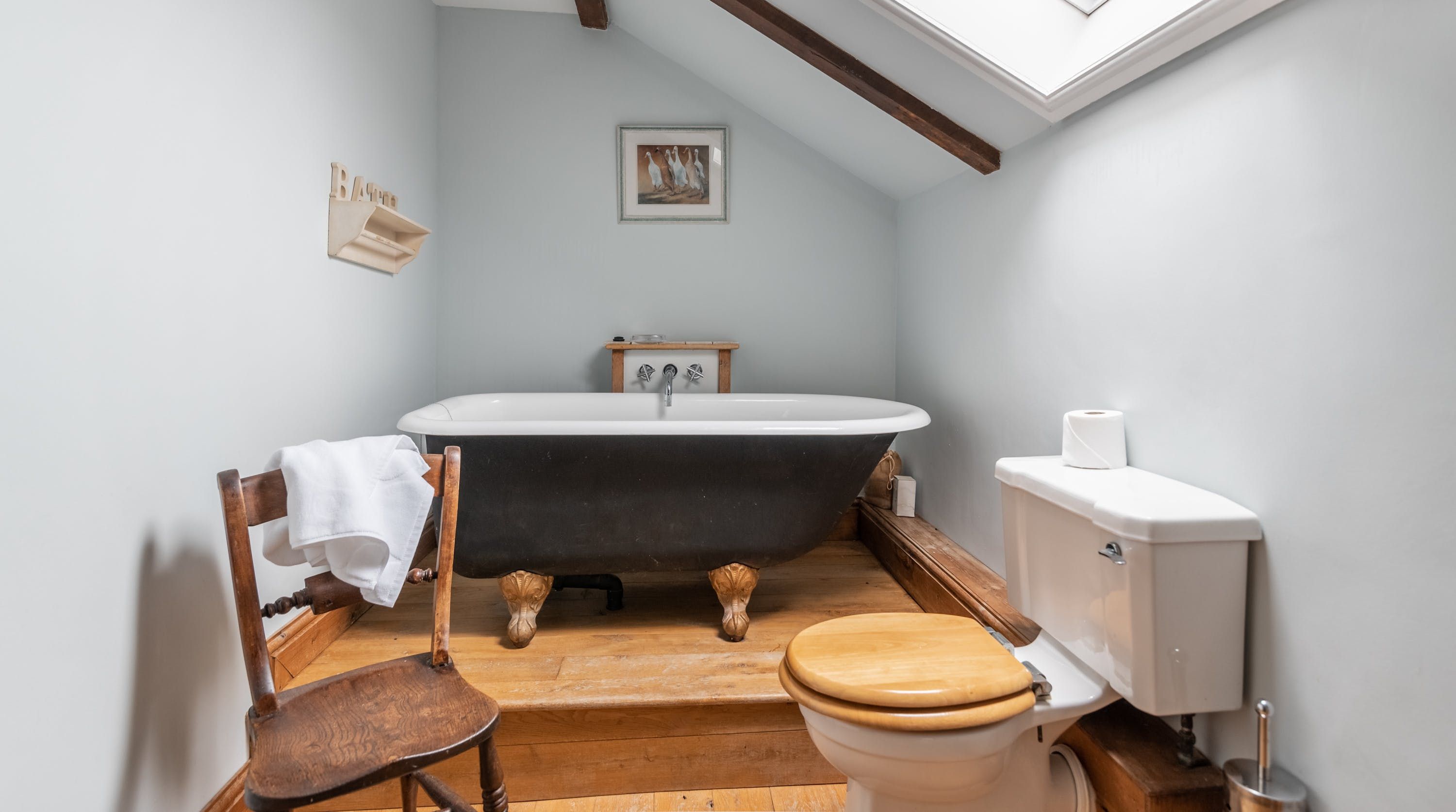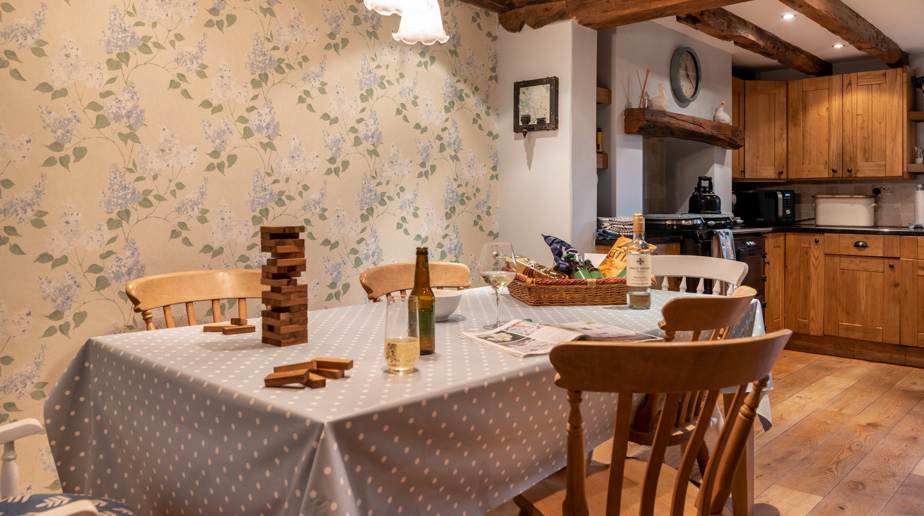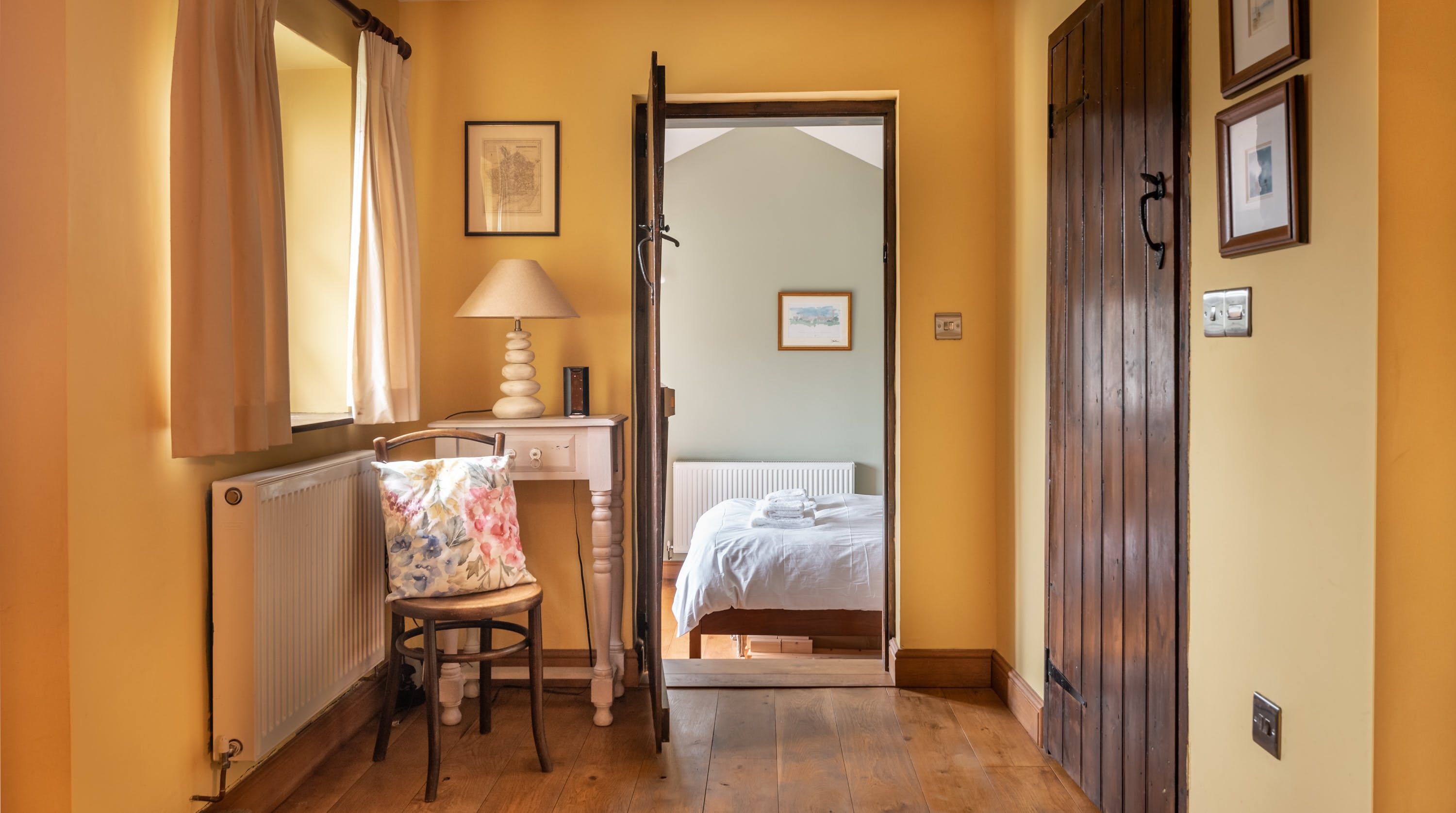 Rolling countryside as far as the eye can see and quaint villages tucked into the valleys of Monmouthshire on your doorstep – this converted stone barn is an idyllic getaway. It’s a six-minute drive to the centre of Raglan where you can explore castle ruins, pop in to one of the cosy pubs or stock up at the traditional butcher and the local village shop. Further afield you’ll find the charming market town of Monmouth a fifteen-minute drive away. The home is blissfully quiet, with nothing but the occasional bleat of sheep or whinny of a horse in the surrounding fields. Out here, away from it all, you can see the canopy of stars from the private garden. During the day, this spot is perfect for a family barbecue, with dining on the patio. Inside, it’s open-plan living made cosy with a wood-burning stove set in the old stone wall of the living room. Period features like the old timber frame and arrow-slit windows have been retained, showing off the age of the building. The Aga and Belfast sink in the kitchen keep that farmhouse feel, perfect when paired with farm-fresh produce from the hole-in-the-wall farm shop just down the road.