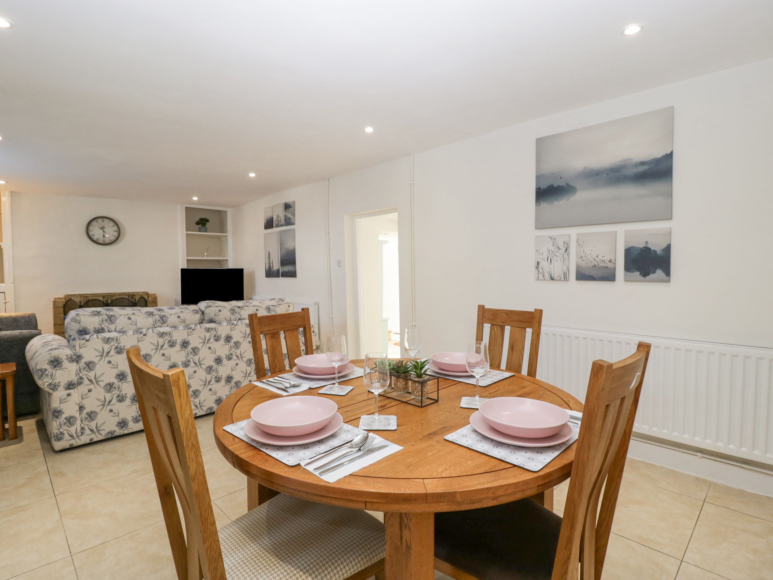 Amenities Central heating. Oven, hob, microwave, fridge/freezer, and dishwasher. TV and WiFi. Fuel, power, and starter pack for open fire inc. in rent. Further logs can be purchased from the owner at £10 a bag. Bed linen and towels inc. in rent. Off-road parking for 1 car. Enclosed garden with lawn, patio, and furniture. Two well-behaved pets welcome. Sorry, no smoking. Shop and pub 0.1 miles. Note: Minimum age of 5 years old. Note: Kitchen has low ceilings. Note: There are steps throughout the property, downstairs and upstairs, as well as leading into the garden. Note: This property can be booked together with The Cwtch, ref 1011310, together sleeping up to six guests