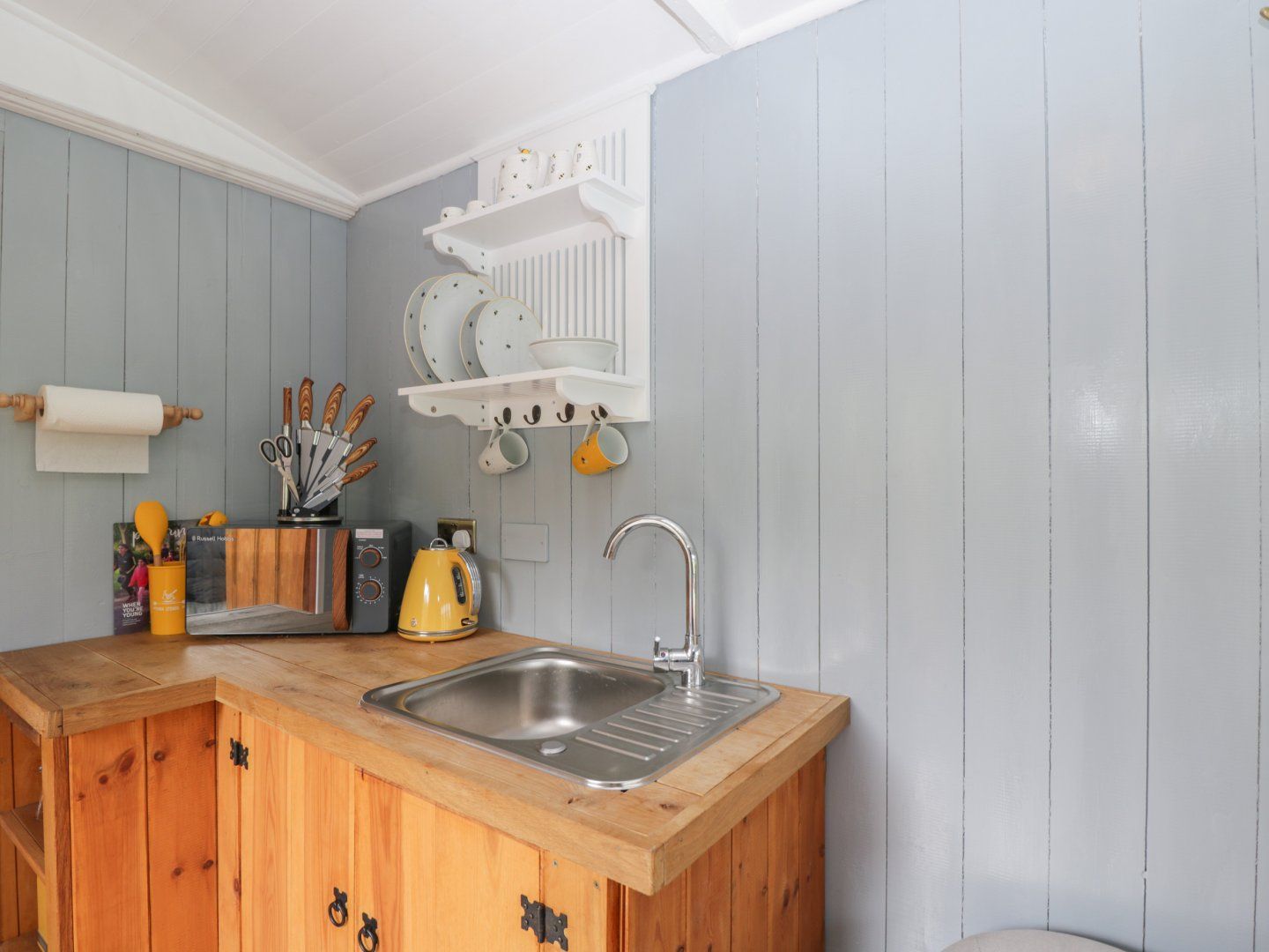 Amenities Electric fan heating. Electric 2 ring hob, microwave, fridge/freezer, kettle, toaster. TV. Fuel and power inc. in rent. Bed linen and towels inc. in rent. Garden with barbecue, firepit and covered area with furniture and separate enclosed pen for dogs. 2 well-behaved pets welcome. Sorry, no smoking. Shop 0.9 miles, pub 0.8 miles. Note: When livestock are around keep dogs on leads. Note: If parents wish to bring children they can erect a tent if they wish. Note: No WiFi can be linked to property