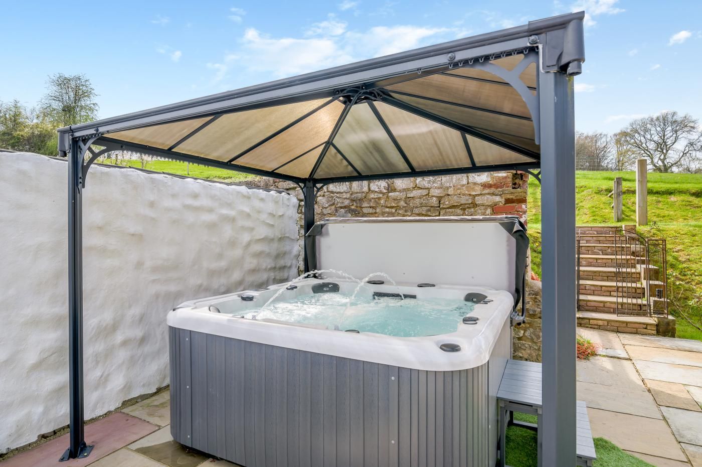 Gorgeous detached Barn with far reaching views across the glorious countryside and the added luxury of a private hot tub.