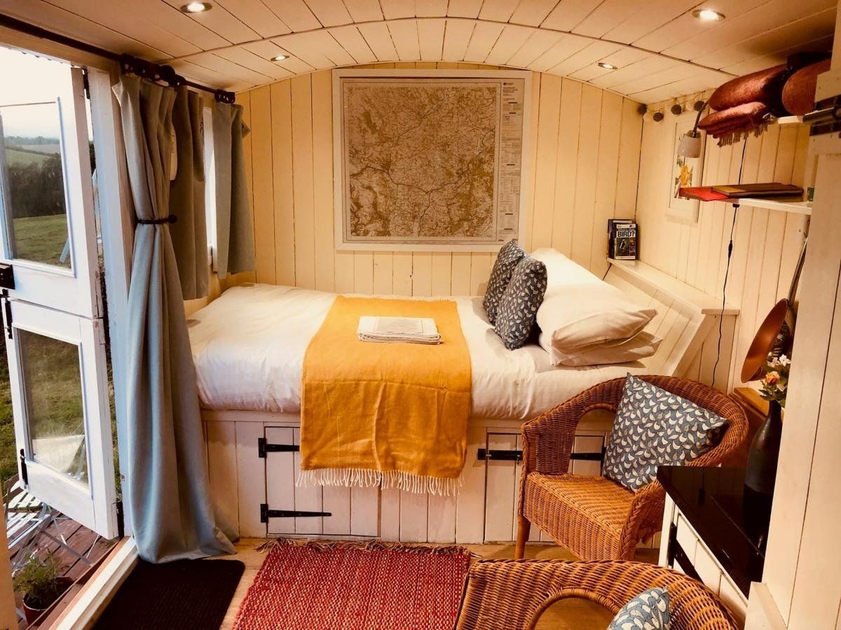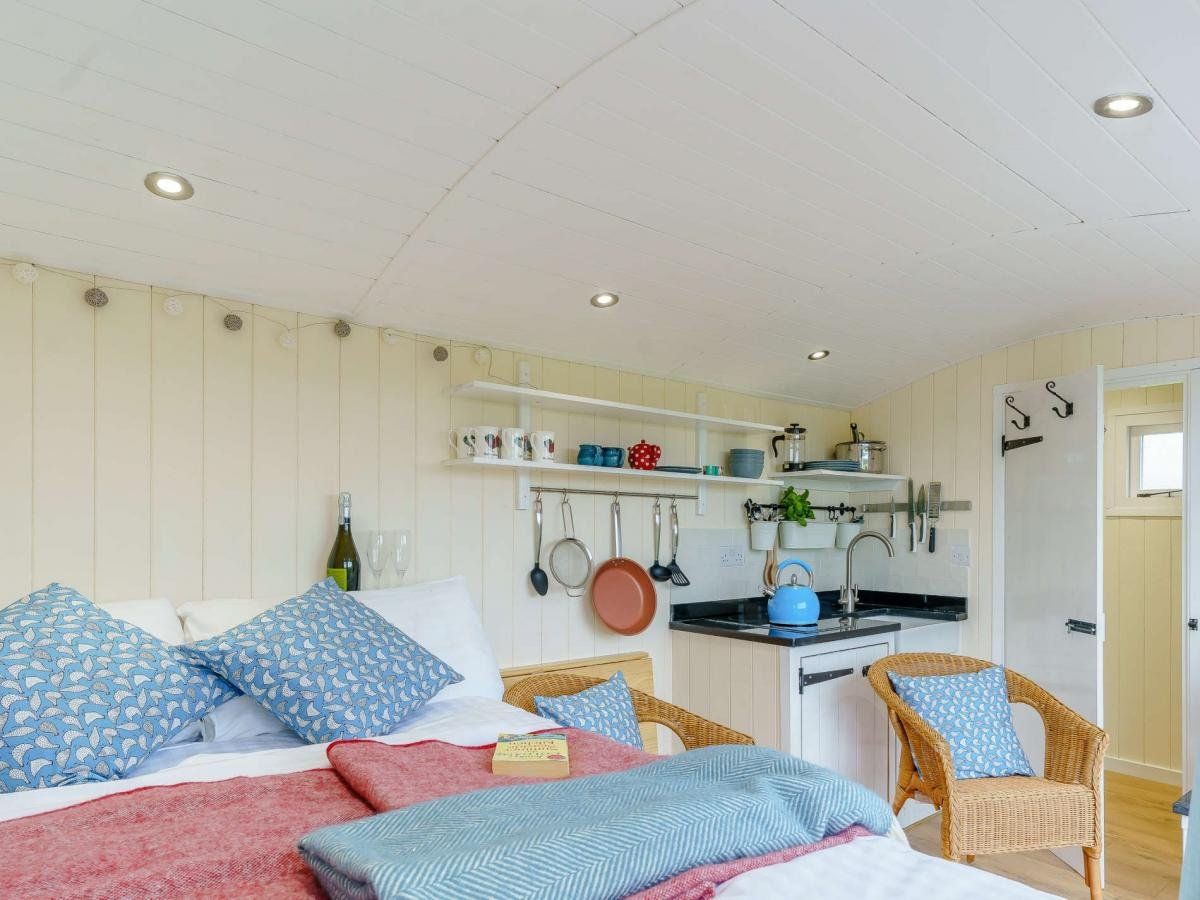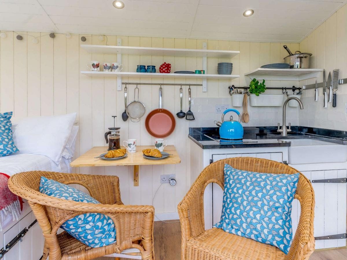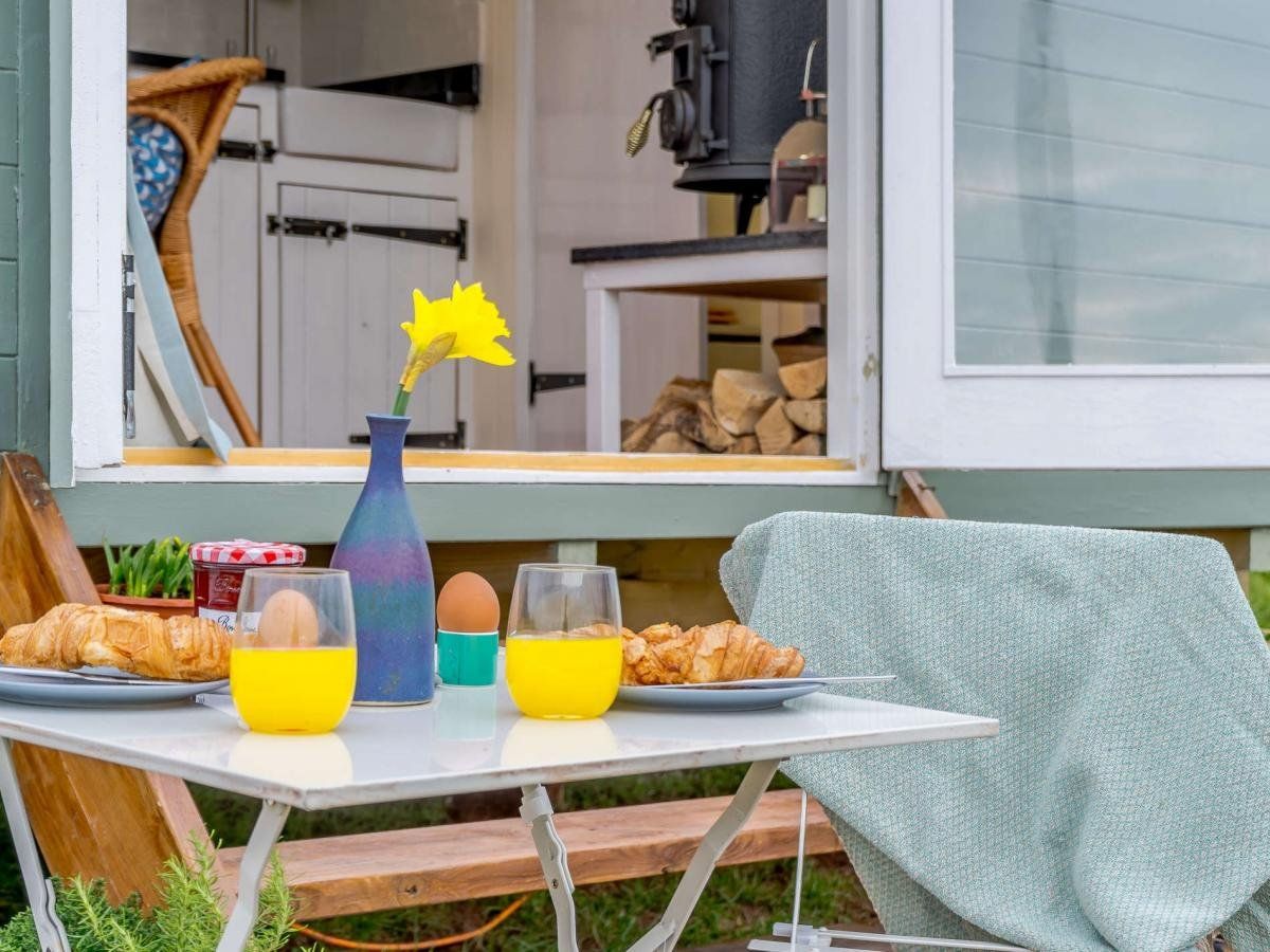 Set within a charming apple orchard, this sympathetically designed shepherd’s hut offers a cosy off-grid escape for two guests.