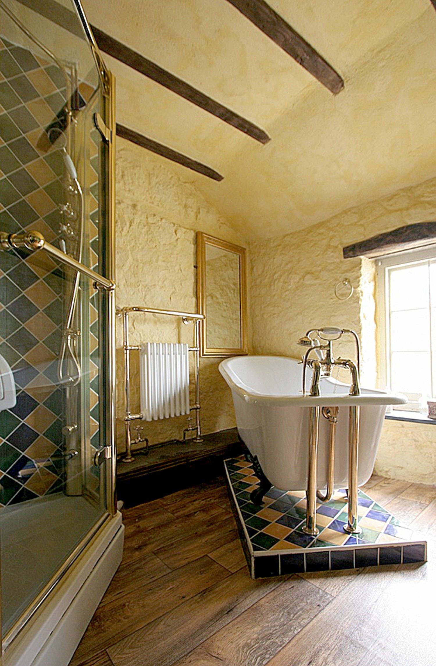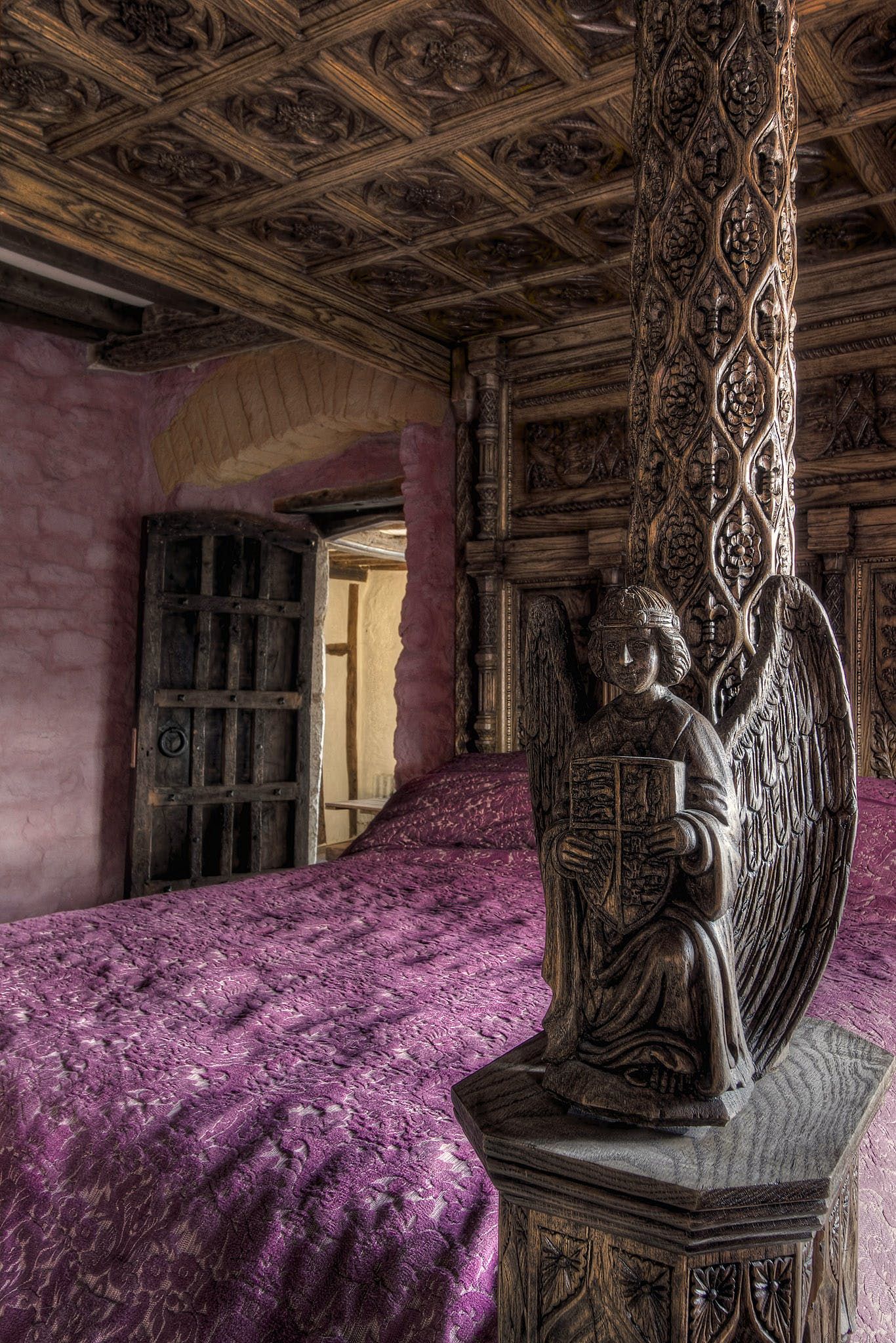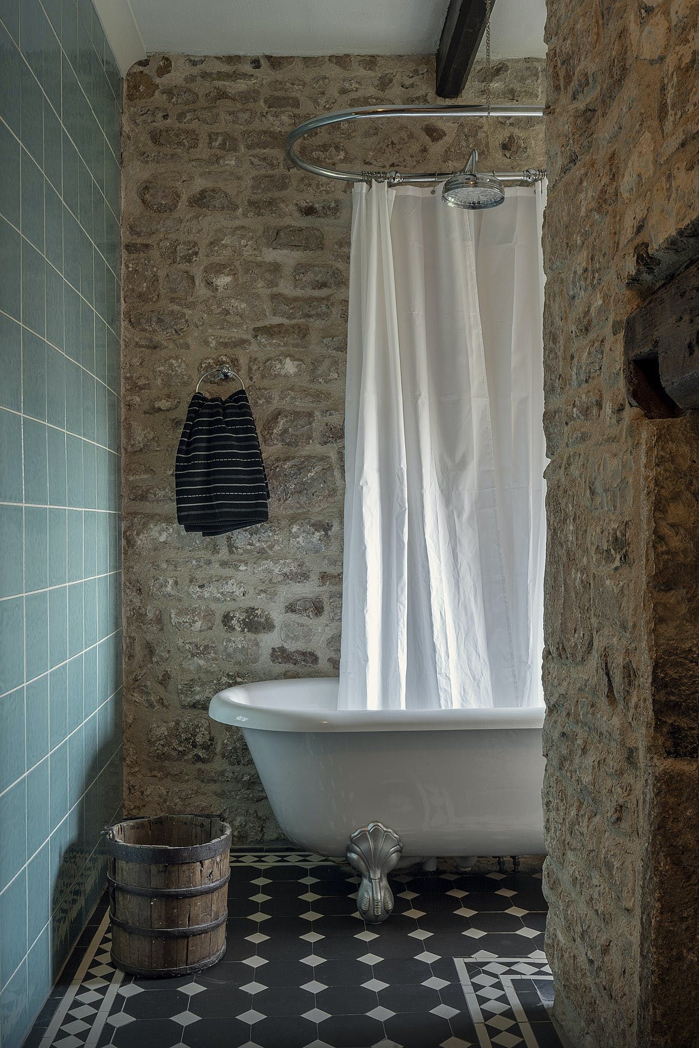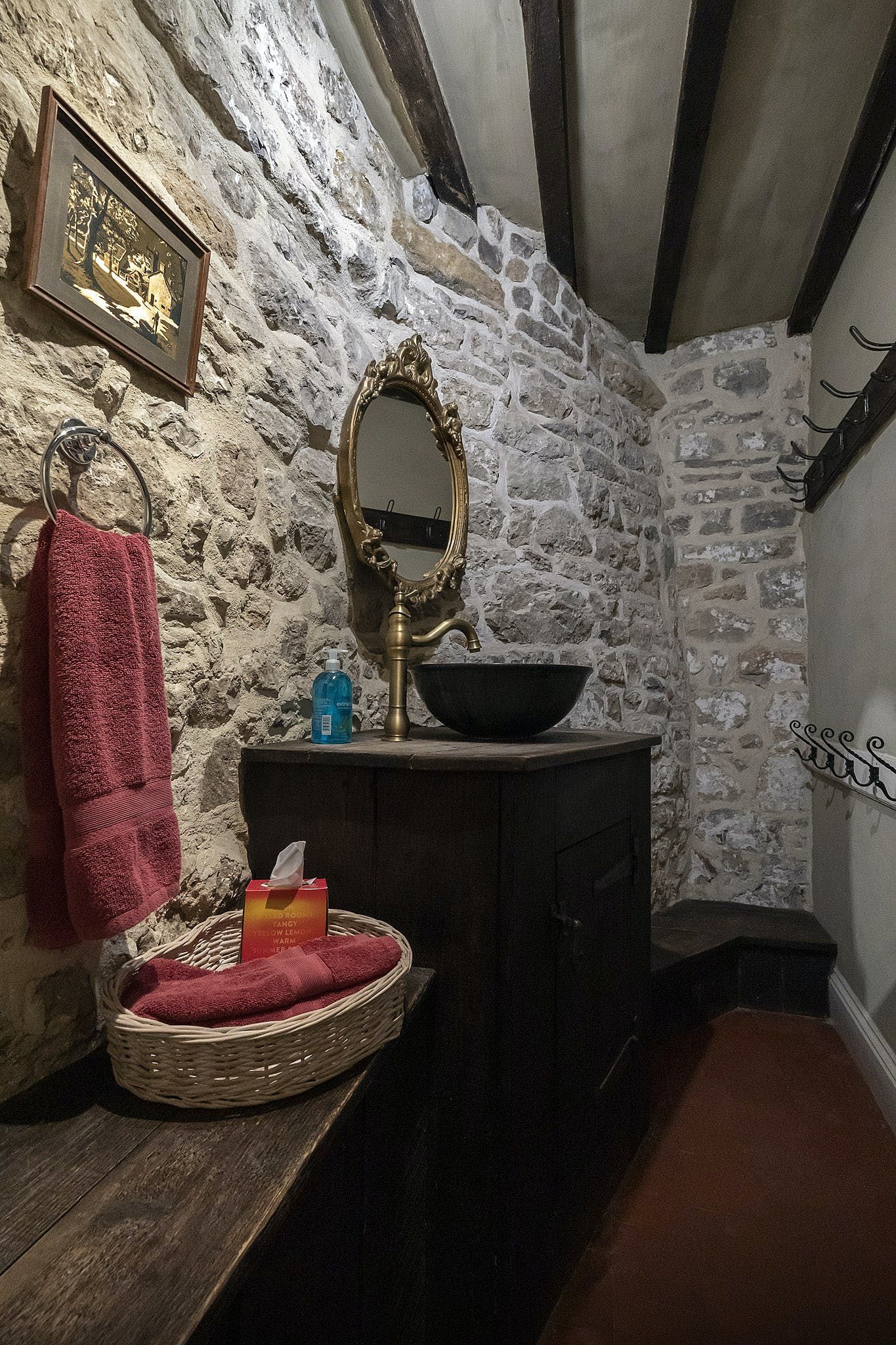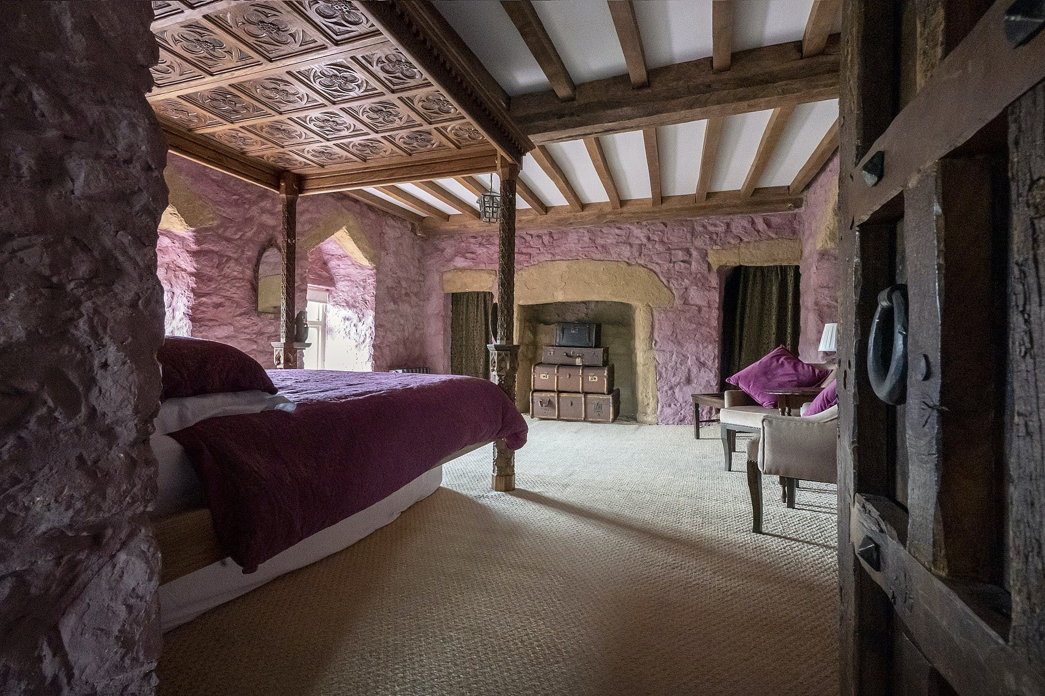 You’ll have access to the first and second floor of the home, which are packed with historic charm and traditional details. We love the spiral staircases and narrow corridors leading to cosy corners and antique furniture. Exposed stone walls and dark timber beams add to the characterful decor of this memorable home. The master bedroom features a wood-carved four-poster bed with intricate artistry, and a roll-top bath in the nearby bathroom.