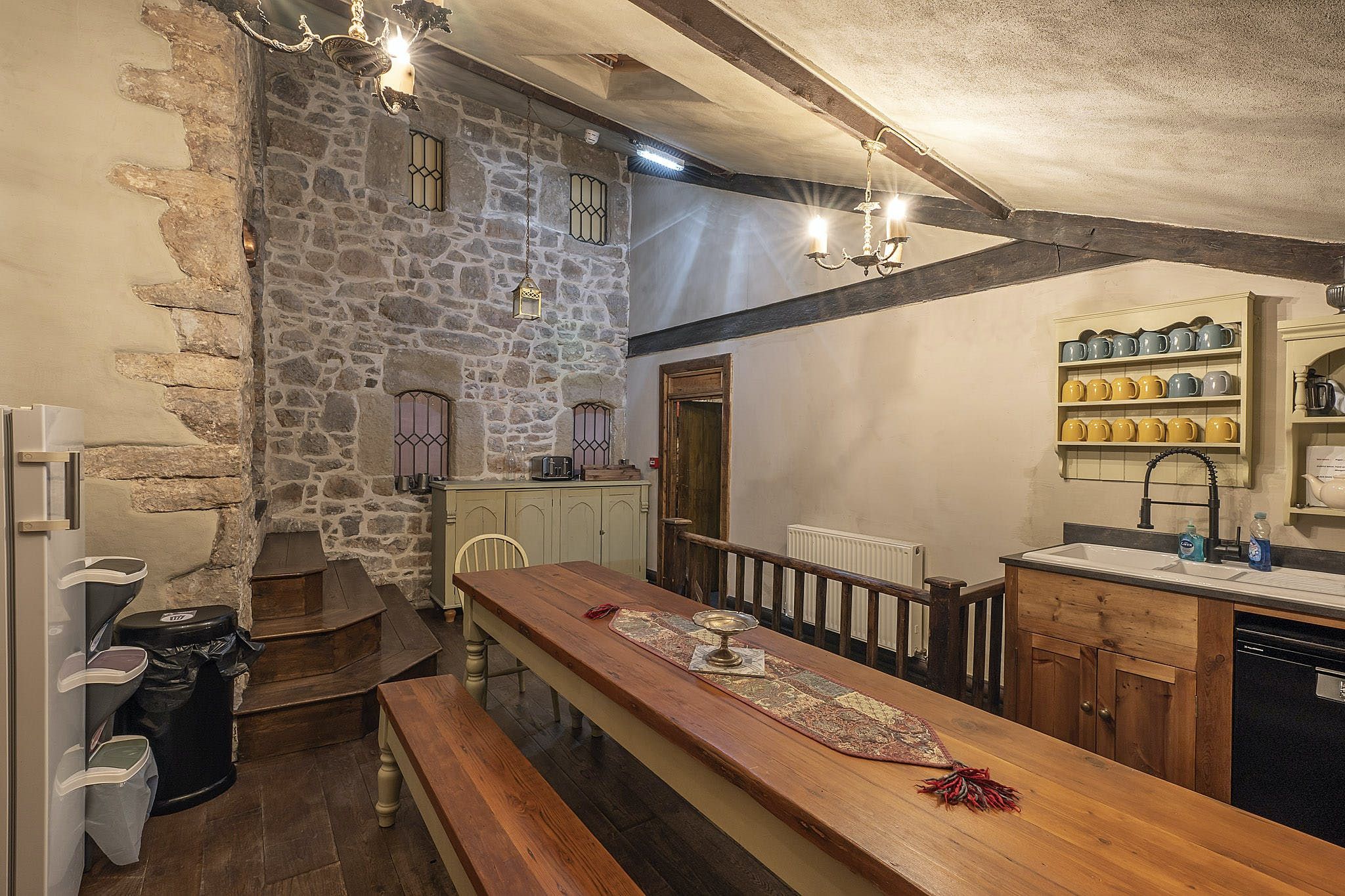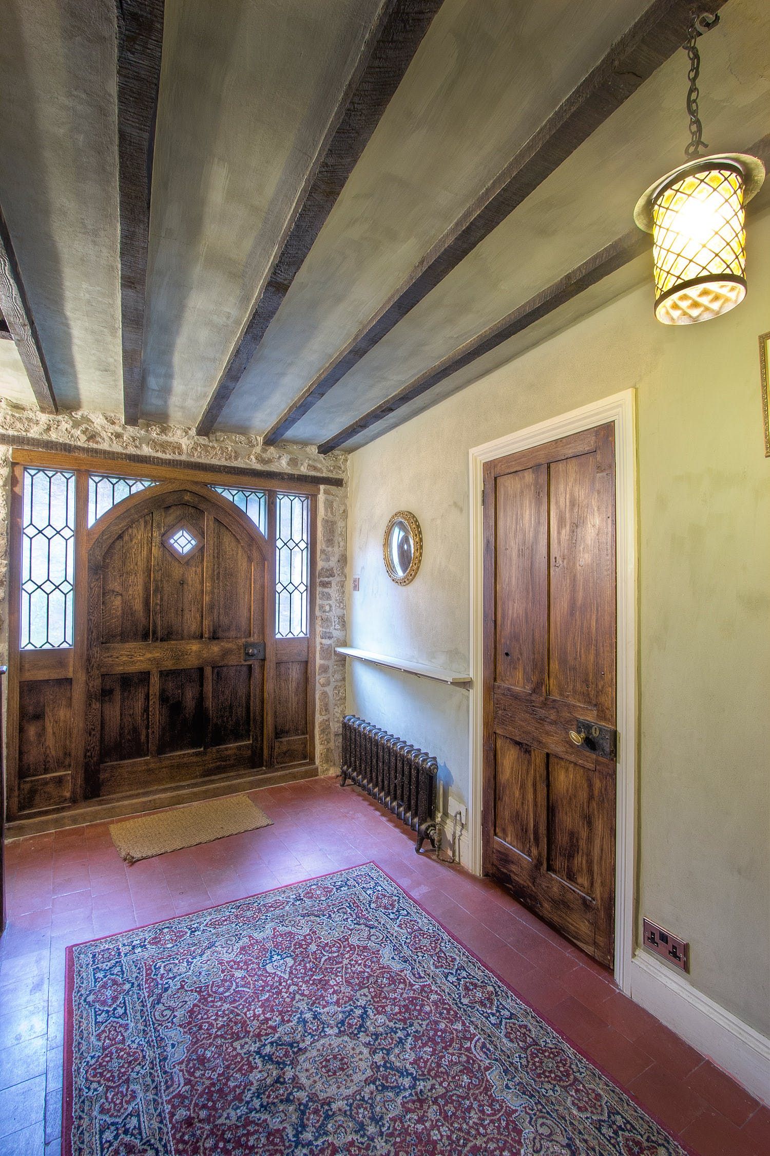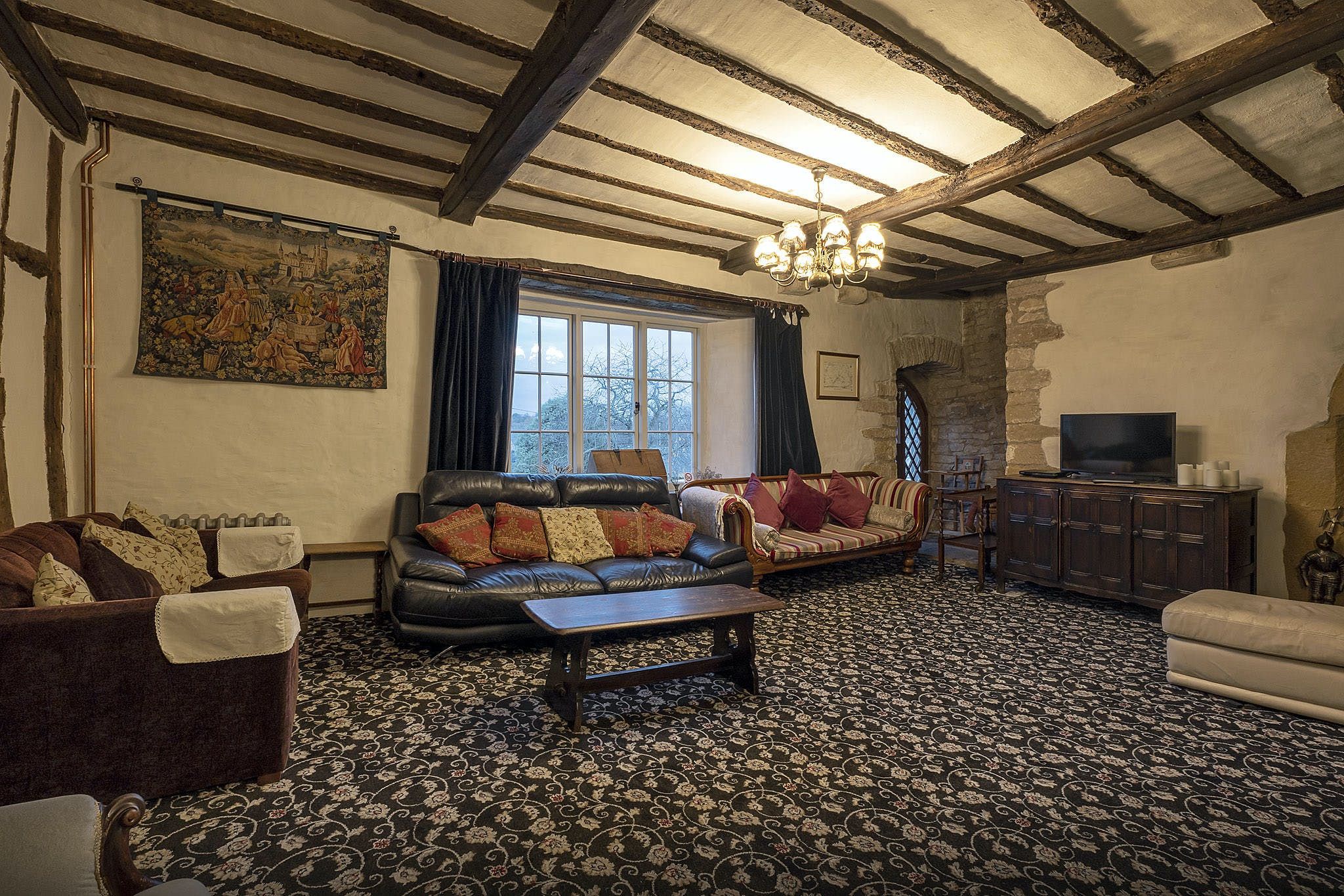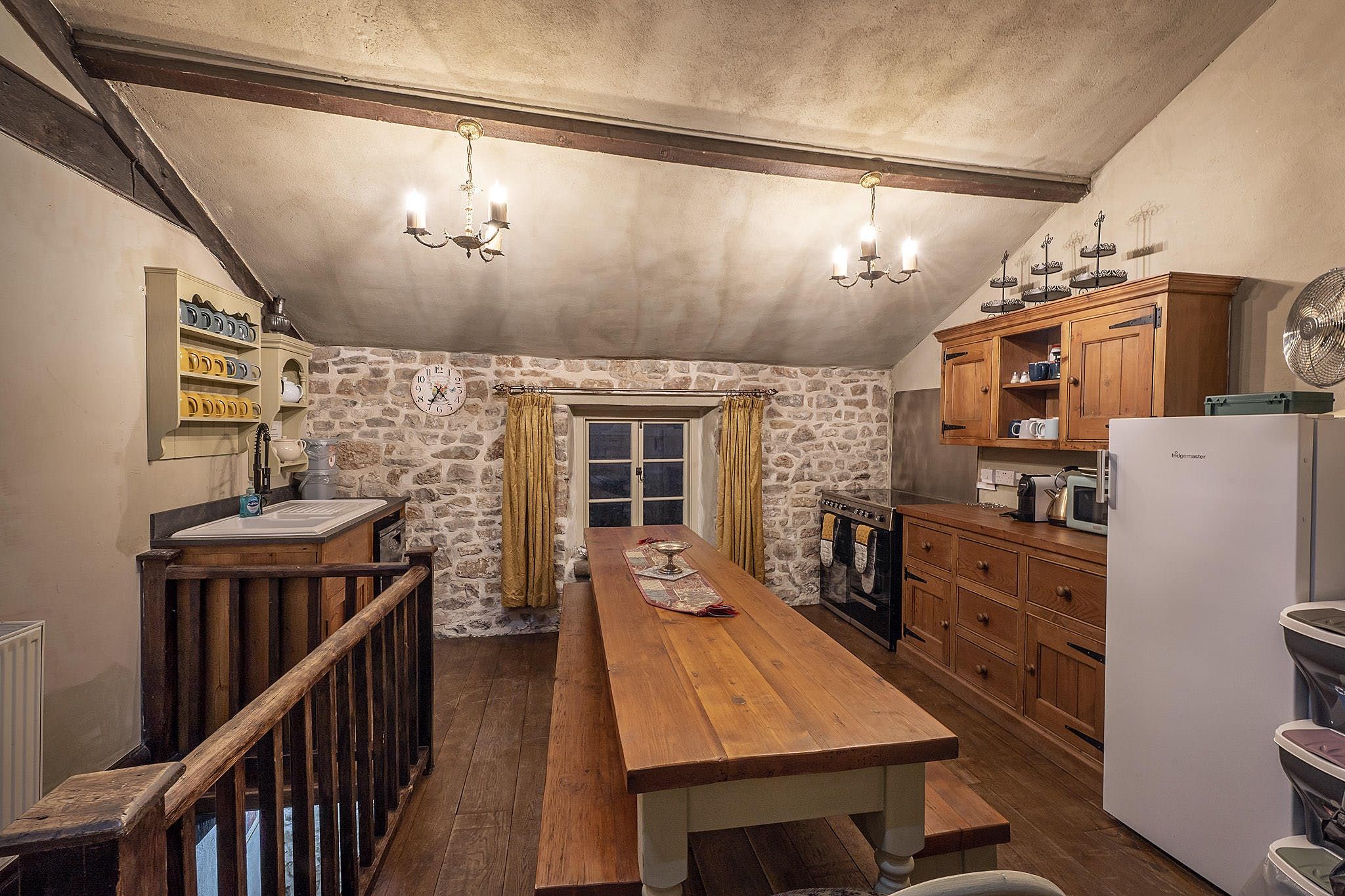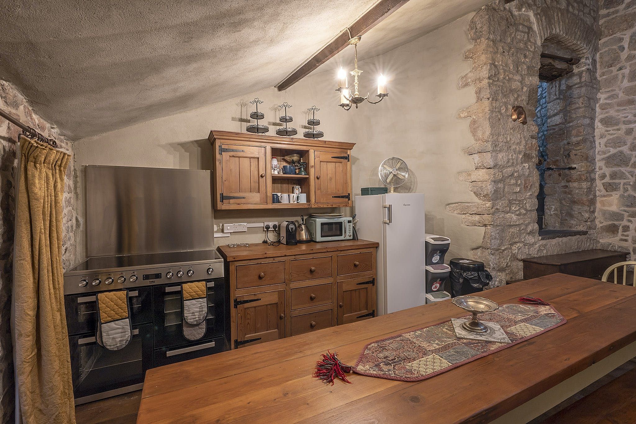 In the kitchen, it's easy to imagine the cooks of yesteryear bustling about the hearth while preparing a banquet for the Lord of the house. Happily, things are a little easier these days – there’s now a beautiful farmhouse kitchen with a range cooker. When you’ve whipped up a feast fit for a king, it can be served at the nine-foot table, where you’ll sit until late sipping wine and catching up.