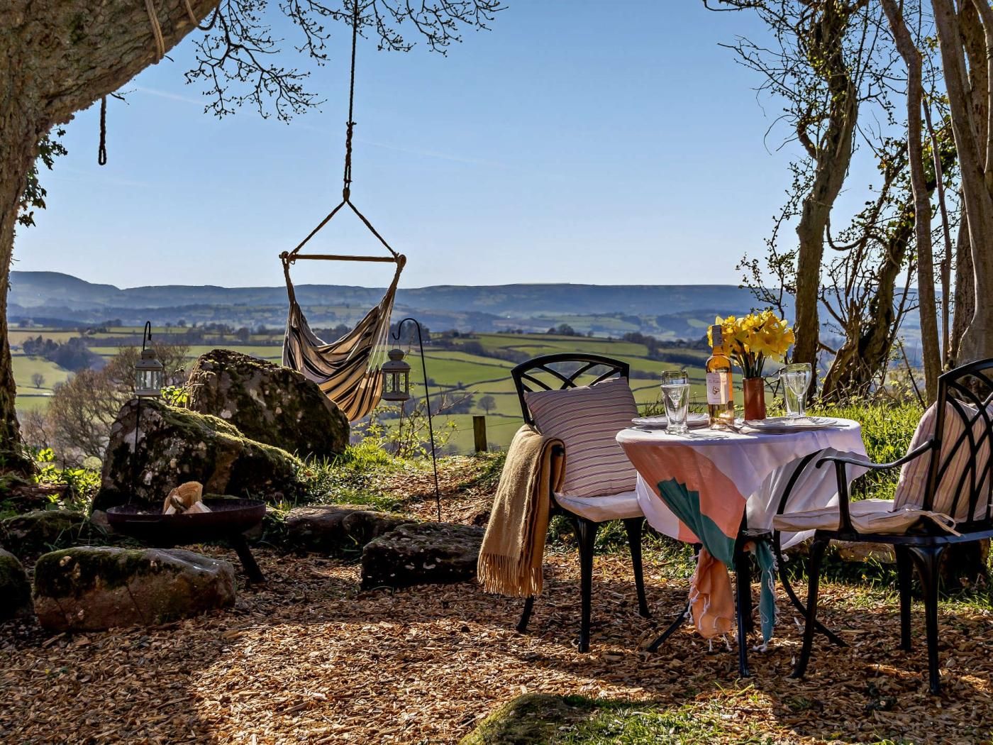 Nestled in ancient woodland, this aptly named hut overlooking the dramatic Usk Valley is wonderfully green and calm with a riot of bluebells carpeting the floor each spring.