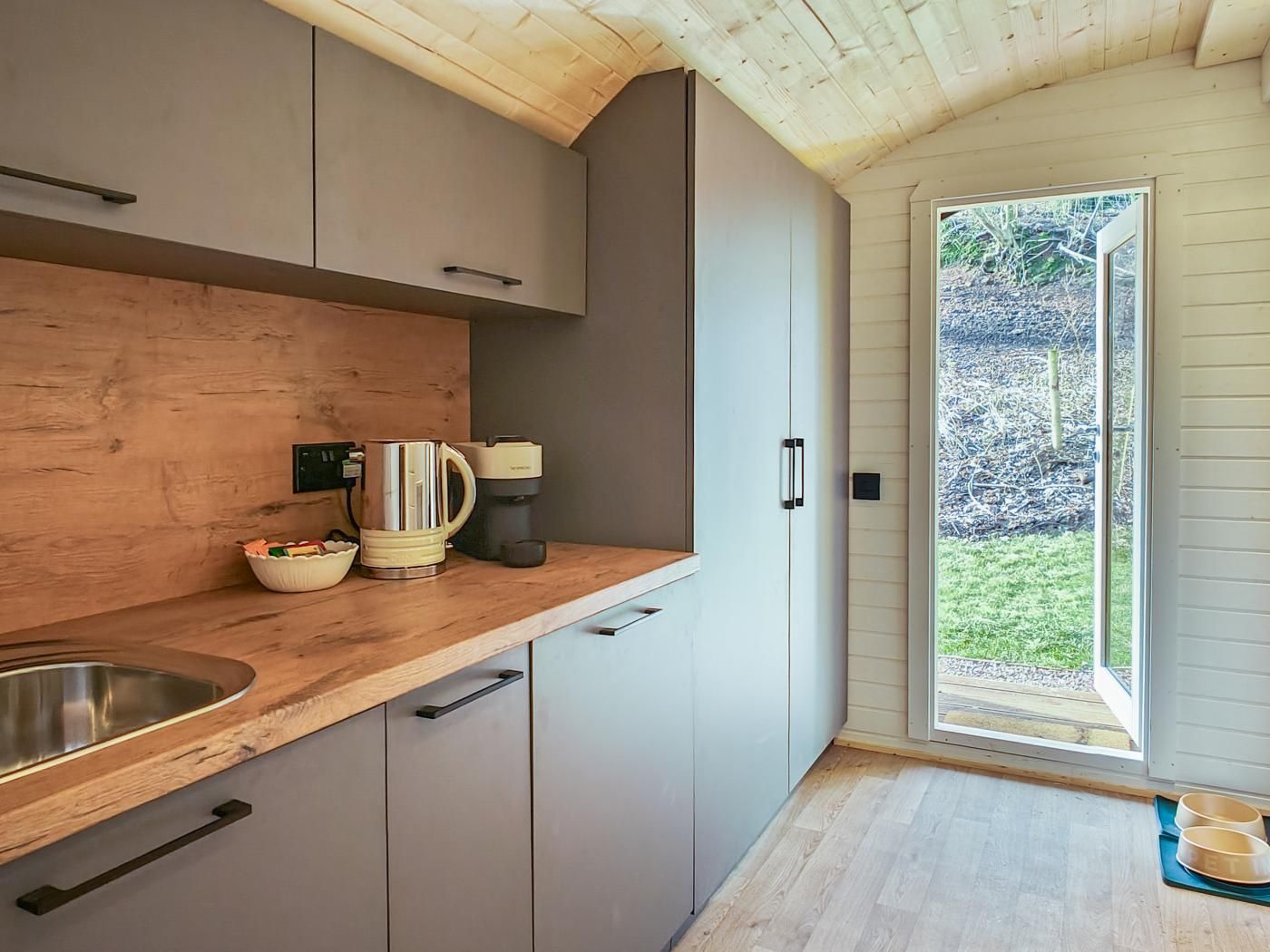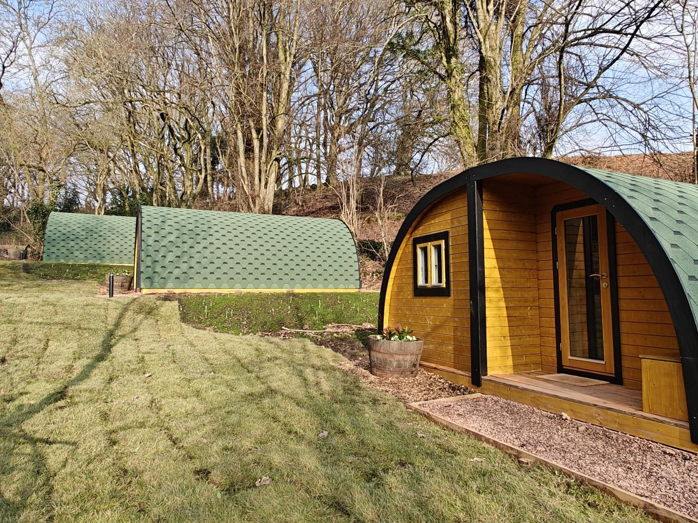 One of a trio of pods in the wooded grounds of a village pub, this rural retreat welcomes two adults and one lucky pup. Located around 2 miles from the market town of Abergavenny, it appeals to walkers and nature lovers with an abundance of walks nearby, including Sugar Loaf Peak and the Offa’s Dyke Pathway.