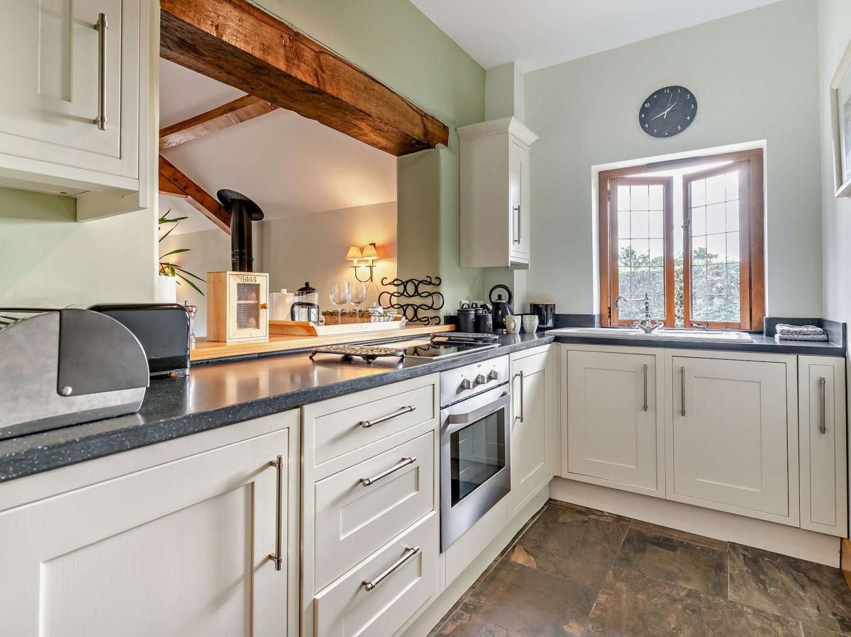 A small, well-behaved dog is welcome too, and there’s a field close by where your pet can run free. The spacious, oak-framed cottage has great character and charm, with exposed beams and leaded-light doors and windows.