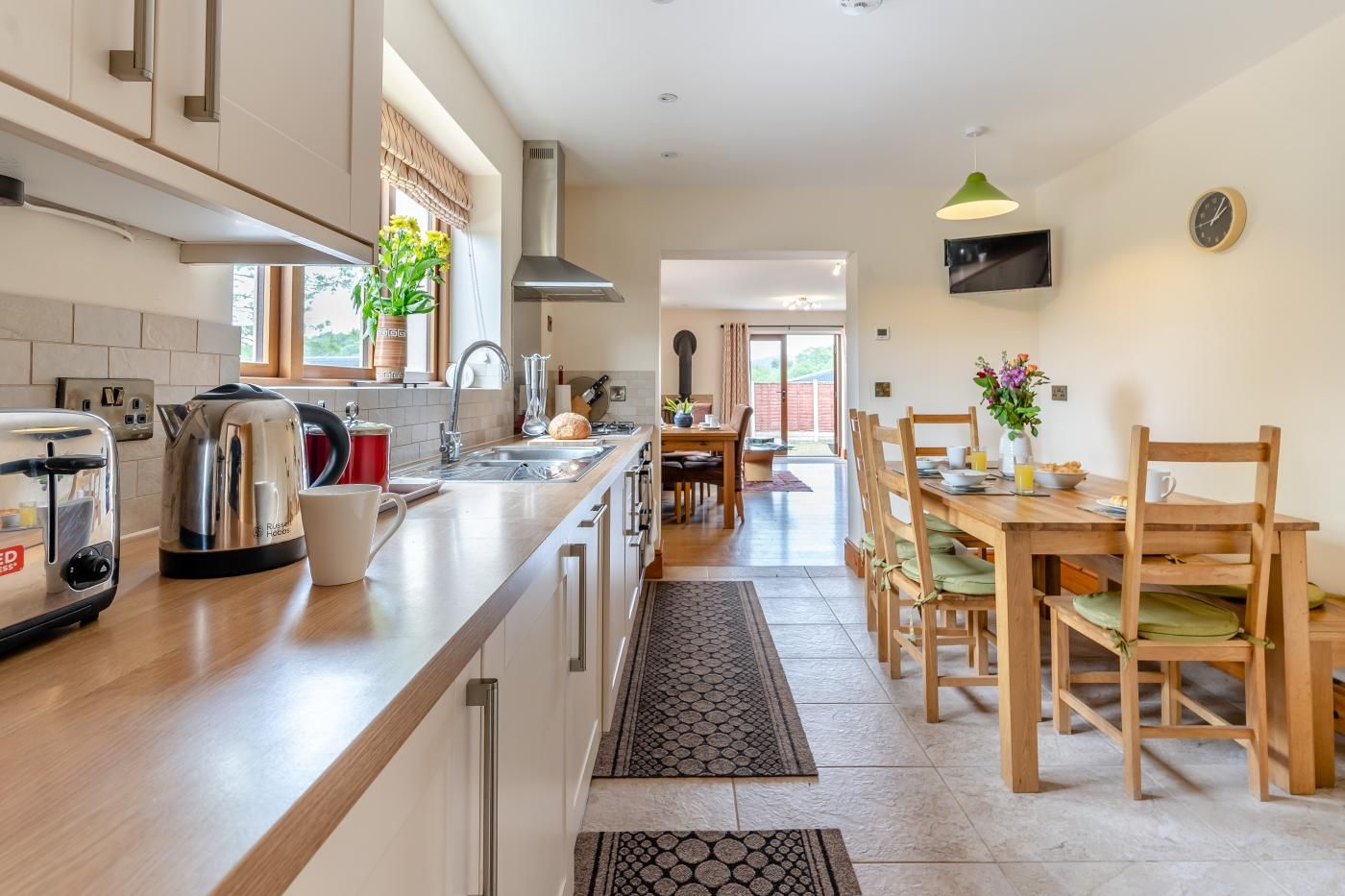 The stylish barn conversion has an enclosed garden, four en-suite bedrooms (one on the ground floor) and a cosy wood burner to enjoy.