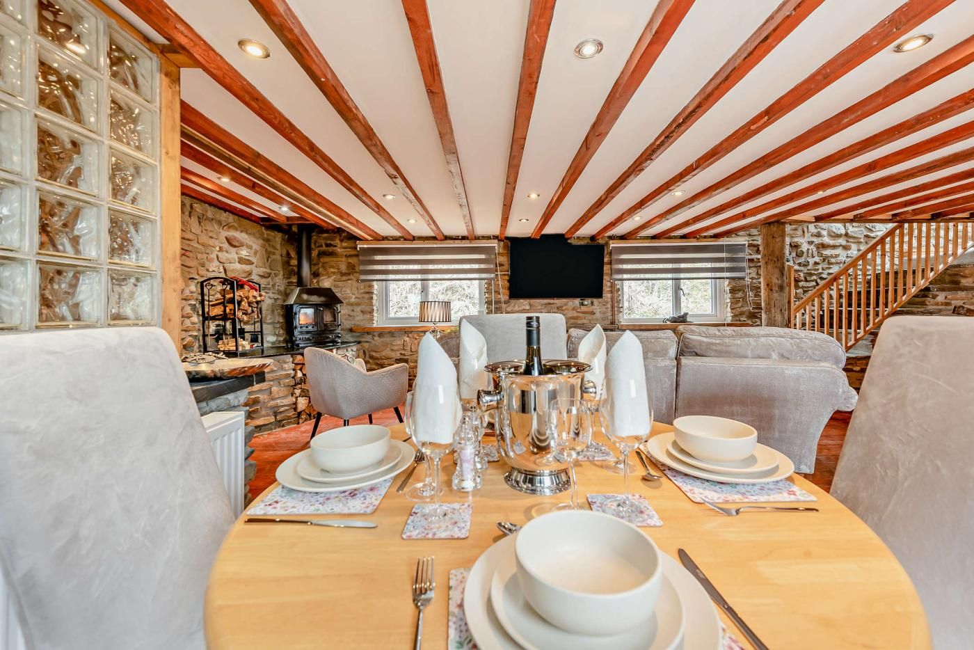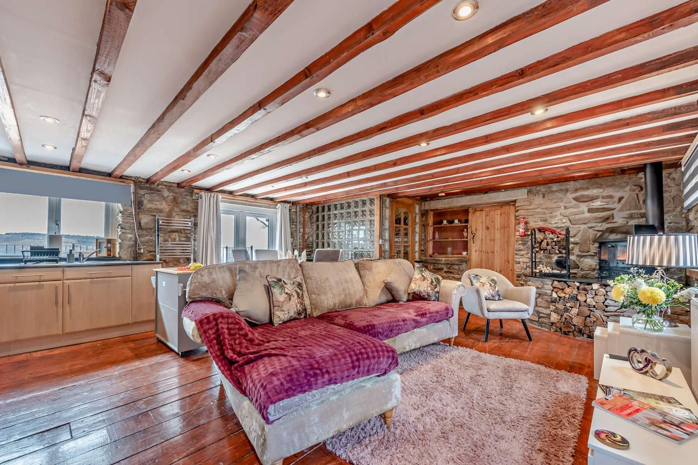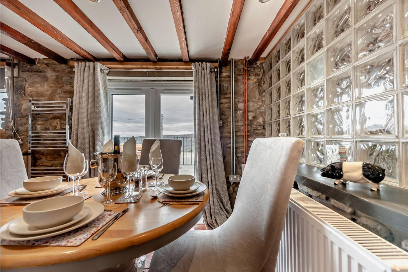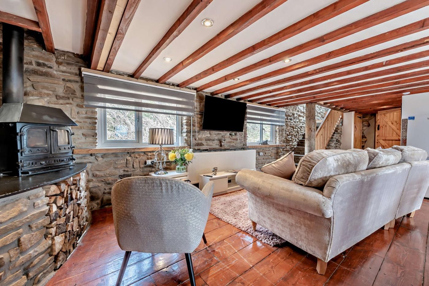 With exposed stone walls, wooden-clad ceilings and a garden looking across the Welsh hills to the sea, this beautiful retreat is full of character and charm.