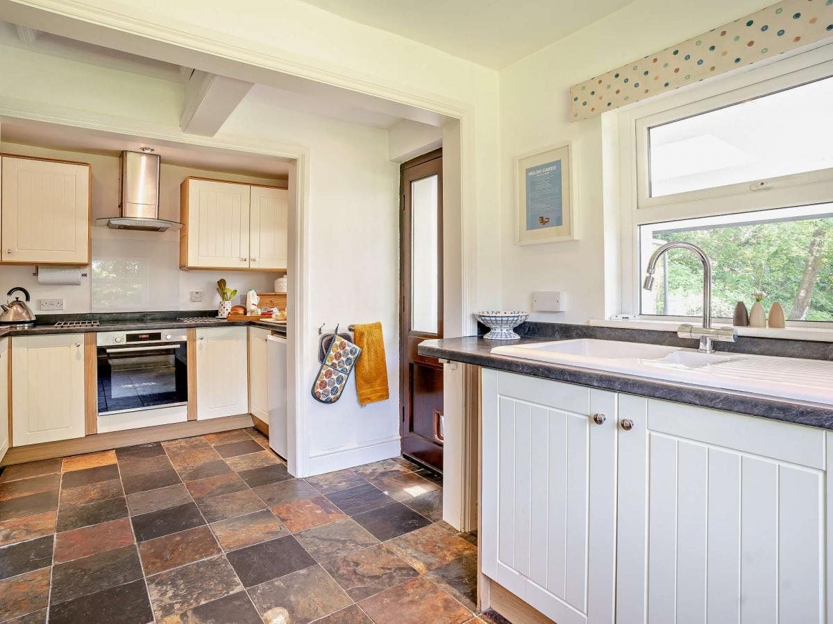 Unwind after a day exploring the mountains, lakes, and steeply wooded gorges of the southern Brecon Beacons, and enjoy the soothing sounds of the crackling wood burner and nearby river for a tranquil stay. Light and spacious, with pops of colour, the kitchen has everything you need to make mealtimes a breeze, and a separate utility room has ample space for boots, coats, and a dog bed.