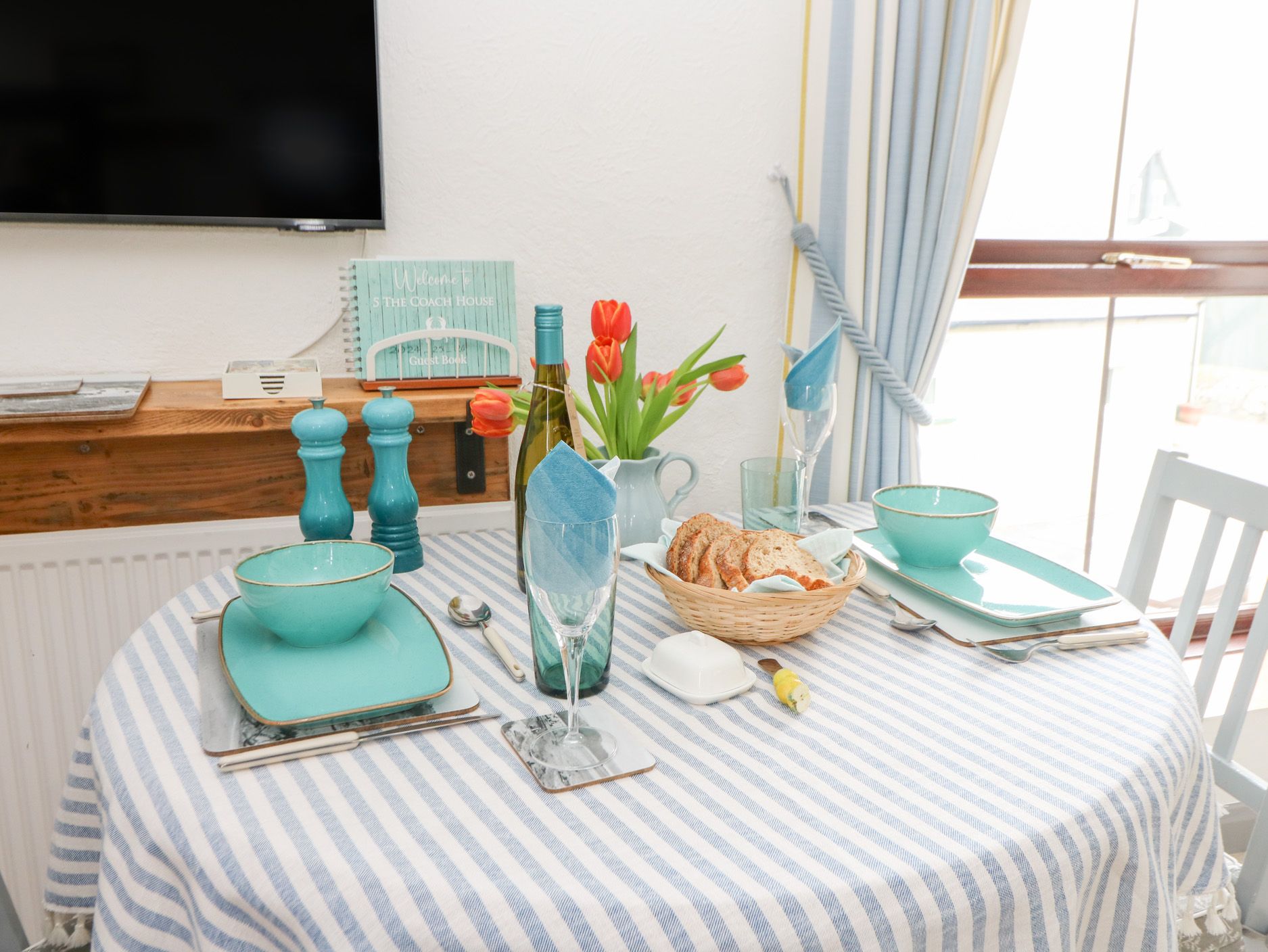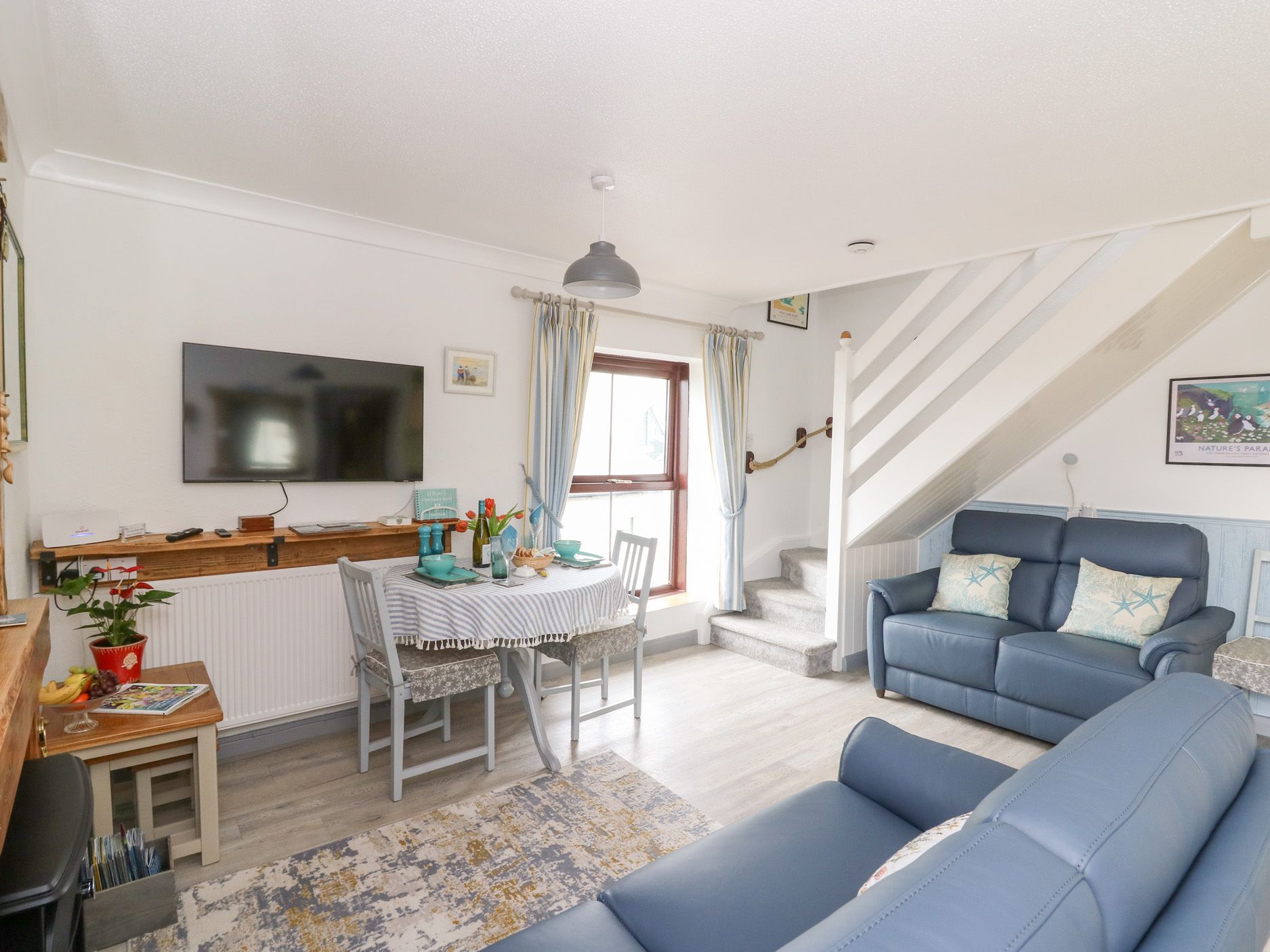 Holiday home 5 The Coach House is a first-floor apartment with an open-plan living space housing a kitchen, dining and sitting area. Appliances include an electric oven and hob, microwave, fridge, washing machine and for entertainment there is Smart TV and WiFi. The bedrooms include a king with en-suite shower, a double and a twin, served by a shower room. To the outside is off-road parking. Within 0.1 miles there is a shop, pub and beach and please note, this is a non-smoking property. Fuel, power, bed linen and towels are included in rent. There is also a travel cot, stairgate and highchair available. Escape to 5 The Coach House and explore the best of this coastal location. Note: No more than 4 adults and 2 children.