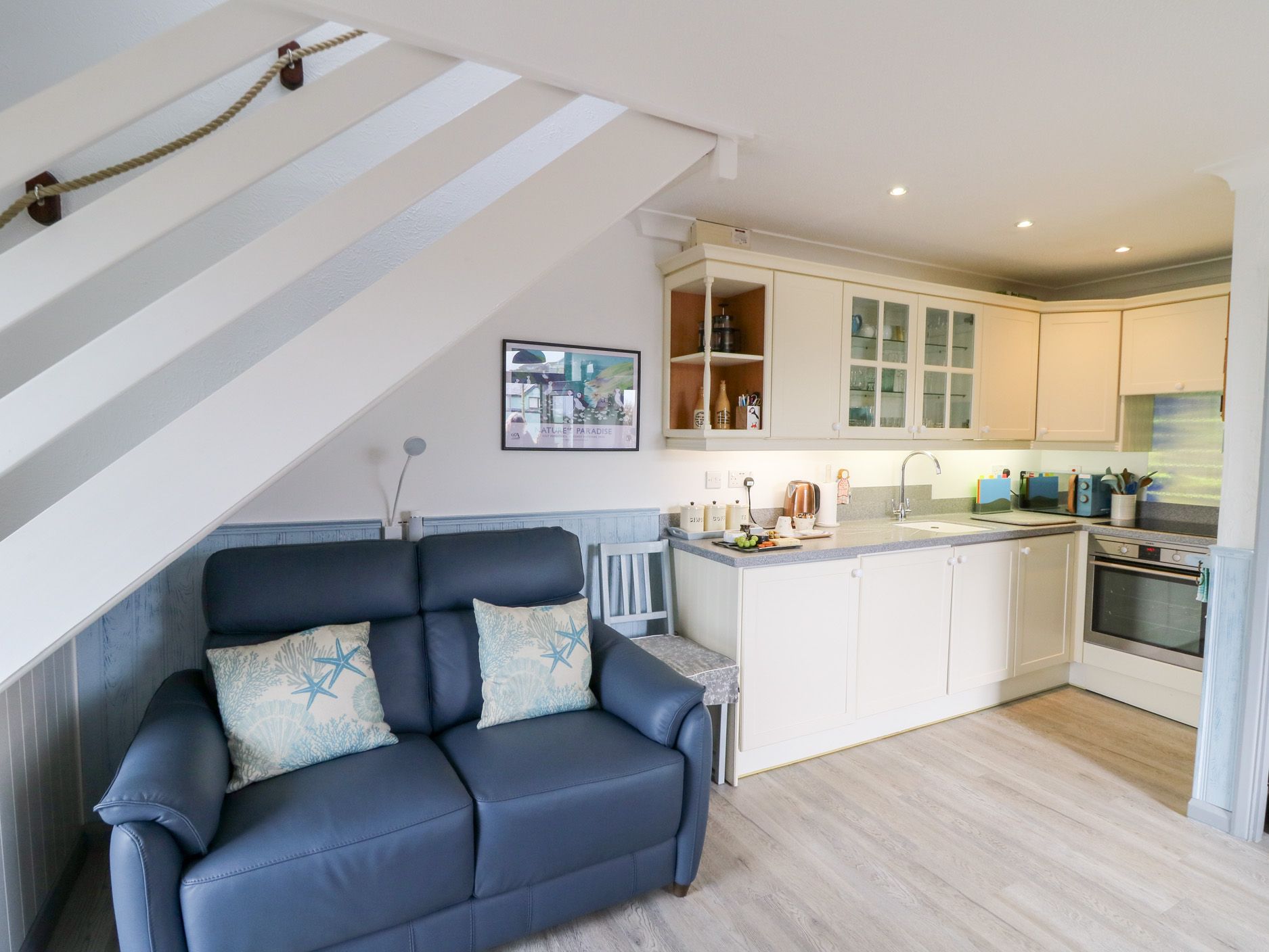Accomodation Details Over two floors via external wooden staircase. Three bedrooms. 1 x First floor king with en-suite separate shower, basin WC. 1 x Second floor double. 1 x Second floor twin. Second floor shower room with a separate shower, basin WC. Open plan living area with kitchen, dining and sitting area.