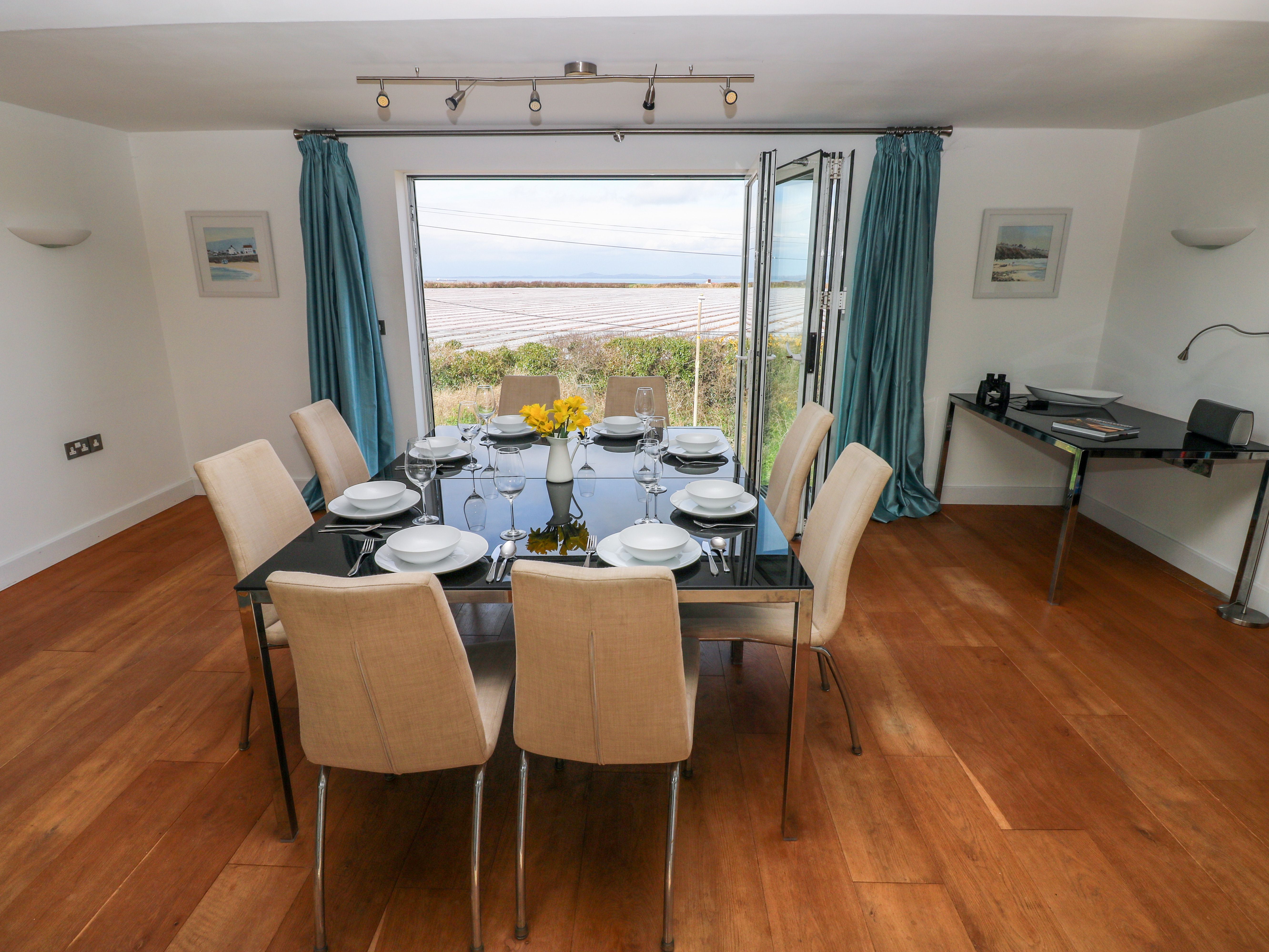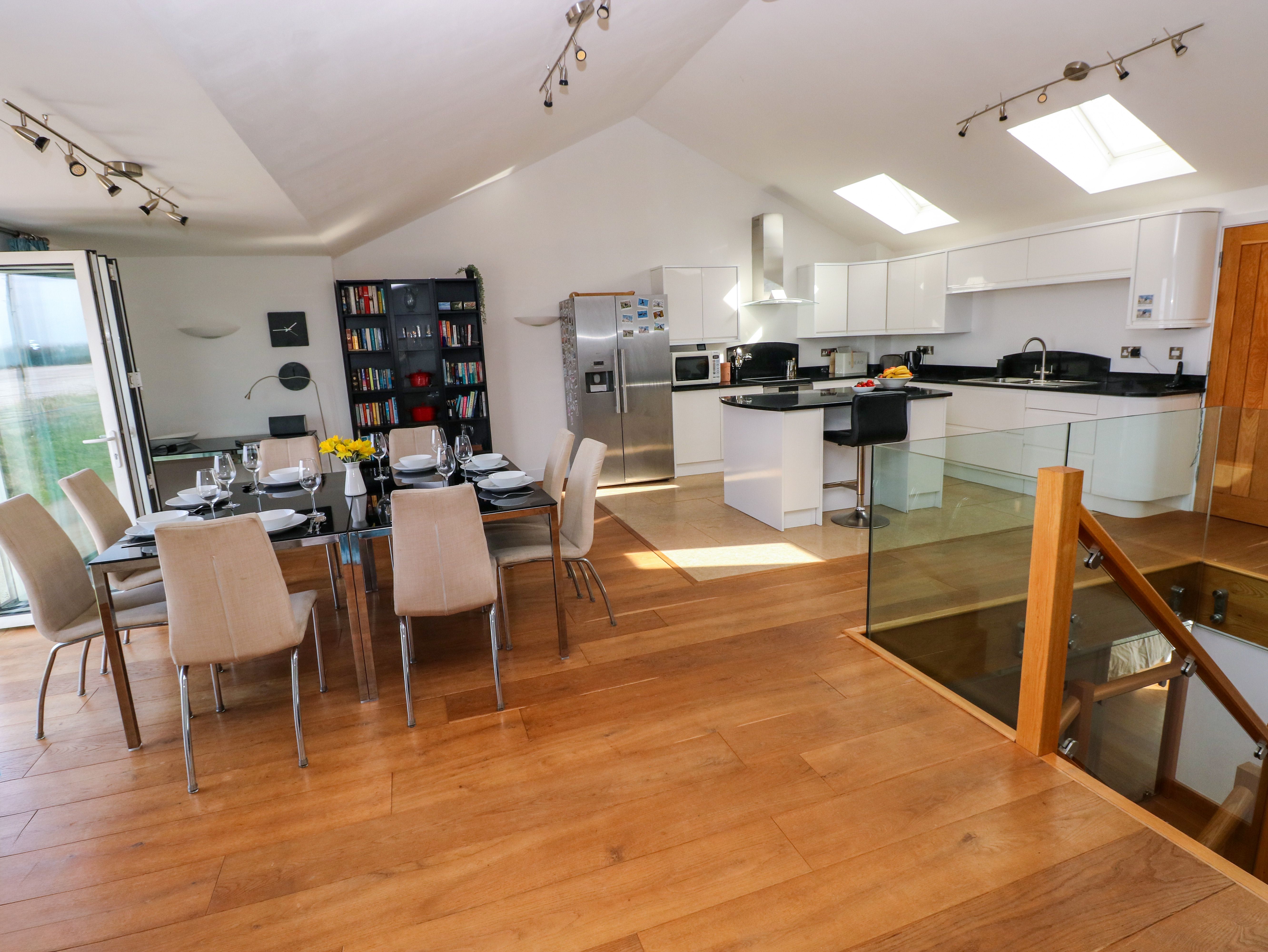 Holiday home Gwelfor, Marloes is a reverse-level home with an open-plan kitchen, dining area and sitting area, a utility and a garage, a double with en-suite, a further double, and two twins, serviced by a bathroom. Appliances consist of a double oven, induction hob, microwave, American style fridge/freezer, washer/dryer, dishwasher, TV, DVD, iPod dock, telephone use on honesty basis, and a selection of books, games and DVDs. Outside there is off-road parking for three cars, storage for bikes and surfboards in garage, and drying space for washing, and patio with decking and furniture. One well-behaved pet welcome (additional charges apply). Sorry, no smoking. WiFi, fuel, power, bed linen and towels are all included. You'll find a shop in 0.4 miles, a pub in 0.3 miles, and beach in 0.1 miles. Enjoy the best of Pembrokeshire from Gwelfor, Marloes. Note: Property not suitable for children under 6 or those with limited mobility, due to the oak and glass staircase. Note: EV charging is prohibited. Please Note: Not suitable for more than 4 adults as twin rooms are small.